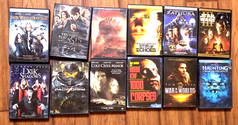 Dive into a chilling collection with this set of 12 horror DVDs, featuring a mix of classic and contemporary spine-tinglers. From the eerie "Haunting" to the campy thrill-ride of "Zathura," and the chilling "Cold Creek Manor," each film promises to deliver suspense and excitement. Also included are classic monsters with "Godzilla" and "Dark Shadows," offering a variety of horror aficionados something to sink their teeth into. Perfect for movie nights or expanding your horror collection, these DVDs span a range of sub-genres and are sure to provide an adrenaline rush.