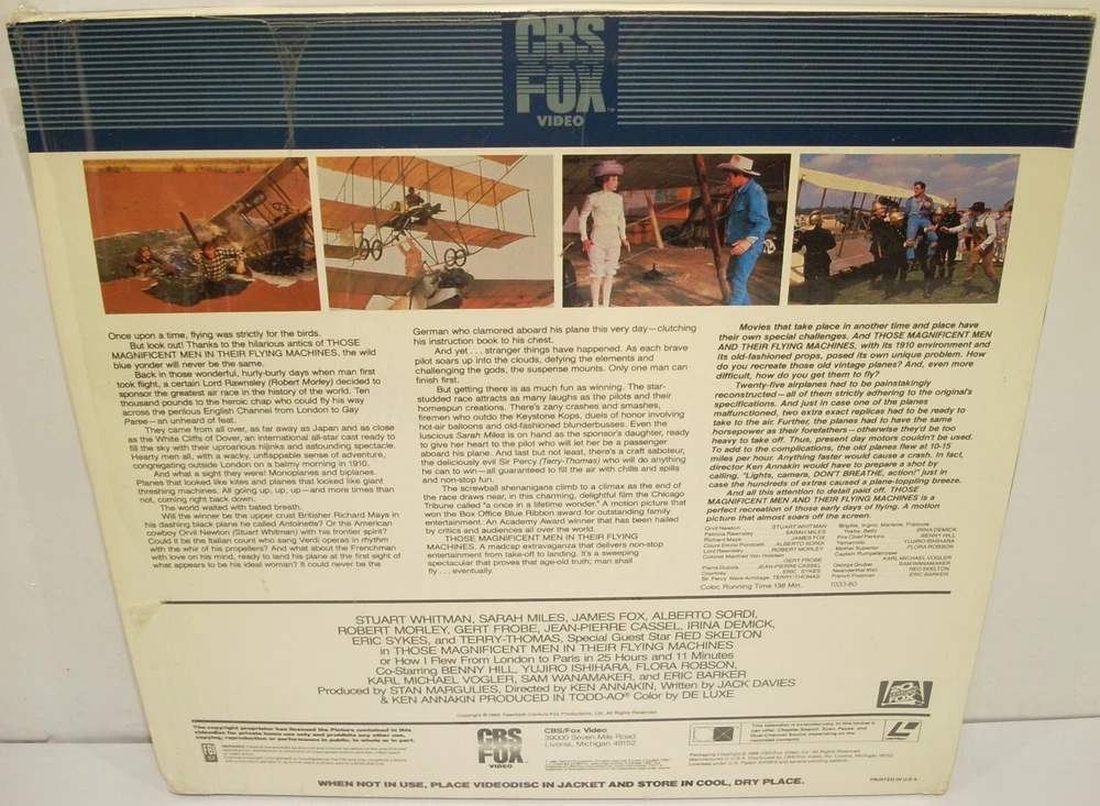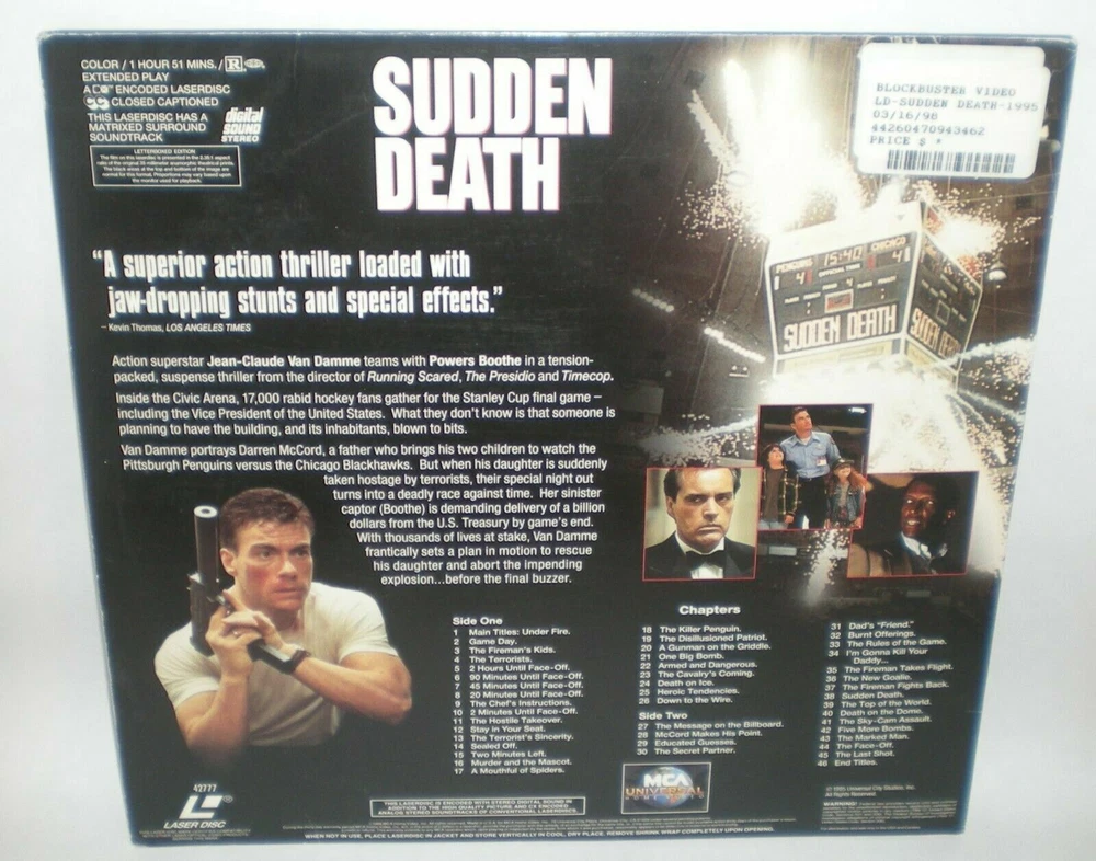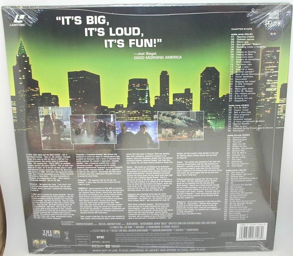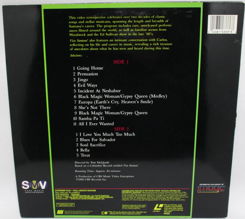 USED LASERDISC(S) MULTI-LISTING PLEASE NOTE THAT THESE ARE NOT DVD OR BLU-RAYS. THESE ARE USED 12 INCH (30 CM) LASERDISCS AND NTSC FORMAT. *** Jackets may have some shelf wear, edge wear, corner wear, light scuffing and creasing. The majority of the discs have no visual marks. Some discs may have some insignificant, light visual marks that do not affect play (unless specifically mentioned below). We do try our best to accurately describe each item we sell and most importantly, we do not sell trashed media. Any suspect looking marks on discs have been play tested. Any discs that needed to be play tested were tested on a Pioneer CLD-V2600 Laserdisc player .*** PLEASE REFER TO PHOTOS AND FEEL FREE TO MESSAGE US WITH ANY QUESTIONS YOU MAY HAVE ABOUT A PARTICULAR TITLE. Abbott and Costello Meet the Killer, Boris Karloff: very small circle of discoloration near top right of jacket. small sticker on one side of disc label. American Ninja 3: Blood Hunt: opened but still in shrink - tears to shrink. Angels With Dirty Faces: moderate/heavy crease to lower and upper left corner, moderate edge wear.The Birdcage: opened but jacket is still in shrink. The Bodyguard: moderate scuffing to jacket, small seam split to lower edge. Body Parts: some ring wear and edge wear to bottom of jacket. Brainstorm: spots of slight color loss, creasing and wear to jacket. Braveheart: sticker pull to upper right corner of jacket, discs have a few light marks on each side Breakfast At Tiffany's: ring wear, light crease to top left on jacket and bottom edge wear. Burglar: crease to bottom left corner of jacket, sticker on side of disc label. Cartoonies Featuring Gabby: discoloration to top right area on jacket and small sticker on one side of disc label. The Celluloid Closet: sticker on one side of label. Chippendale's Tall Dark & Handsome: has surface abrasions towards the end of each side- has been played tested . Coma: small spot of discoloration at top right of jacket that is barely noticeable. Deceptions: crease to cover, right side. Diabolical Dr. Cyclops: sticker near top right of jacket, beginning stage of seam split to bottom edge. Dragonslayer: scuffing to jacket and crease near opening of jacket, disc has a few light marks Dumbo: opened but still in shrink. Eraser: some scuffing to jacket. Executive Decision: crease to lower left corner, minor blunting to lower right corner, a few light marks to disc Fantasia: creasing around edges of jacket. Father of the Bride Part II: crease to upper left corner and spine, a few light marks to disc Godzilla 1998 Size Does Matter: Brand new, factory sealed Inside Daisy Clover: various small creases and scuffs to the jacket, disc has some marks but looks good The Hunt For Red October: small tear to bottom seam on jacket and scratch to front that is only noticeable at a certain angle. The Jazz Life- Mike Mainieri: in shrink, a few smudges on the disc- looks rarely played. Moonstruck: some creasing to lower left corner of jacket. Muscle Motion Featuring the Men of Chippendales: spine splits to bottom and side of jacket. sticker on front of jacket, ring wear, price sticker in top right corner. Night Patrol: wear to bottom of jacket and corner blunting. small barcode sticker on one side of disc label. Once Upon A Time In America: some spots of color loss to bottom left corner on front of jacket. Paradise Alley: STILL SEALED IN SHRINK, small tear in shrink along right edge. The Piano: Brand New, factory sealed- blunting to upper left corner and creasing to the lower right corner Pinocchio: sticker residue and slight spot of lamination loss to upper right corner of jacket. Predator 2: moderate crease along spine. The Quest: added tape and significant creasing to top of jacket, scuffing and multiple stickers on jacket. disc has writing on one side of label. The Road Warrior: Brand New, factory sealed- tearing to shrink along upper spine The Rose: blunting to top right corner of jacket and seam split to bottom near the right side (can be re-glued, it is not torn). Sade - Life Promise Pride Love - jacket has various creases, a corner blunt, disc was tested and has some marks that do not affect play whatsoever, as well as some minor haze from the inner sleeve (this can just be wiped off) Santana - Sacred Fire: opened but jacket is still in shrink however the shrink is mostly torn. Santana - Viva Santana! - disc looks great, jacket has a 1 inch seam split on side spine edge, corner wear, a corner blunt, a few creases, couple indentations Saturday Night Special: some lamination loss to right side of jacket. The Sea Wolf: scuffing to jacket. Shattered: heavy scratch towards the end of the first side- has been played tested. Sister Act: small area of blunt to spine of jacket. Sliver: sticker on one side of label. Snow White and the Seven Dwarfs: Brand New, factory sealed Space Jam: Brand New, factory sealed- some edge wear along bottom The Specialist: small tear to jacket opening. Star Wars The Empire Strikes Back: a few light marks on disc Staying Alive: open but jacket still in shrink. St. Elmo's Fire: very small tear to jacket near spine and creasing to upper corners. Stick: creasing to upper right corner of jacket and around edges, edge wear to bottom. Striking Distance: some spots of color loss to upper right corner of jacket. Sudden Death: multiple rental stickers on jacket, added tape to front of jacket, moderate/heavy crease to upper right corner and general shelf wear. Tango & Cash: price sticker residue/scratches to upper right corner. Those Magnificent Men in Their Flying Machines: in shrink, jacket is wavy, disc has a few light marks and smudges Tom and Huck: Brand new- factory sealed- some blunting to the upper left corner The Truth About Cats & Dogs: Brand New, factory sealed- blunting to upper left corner and some light creasing to the upper right Toy Story: opened but jacket is still in shrink. U2 The Unforgettable Fire Collection: a few light marks, light edge wear and crea