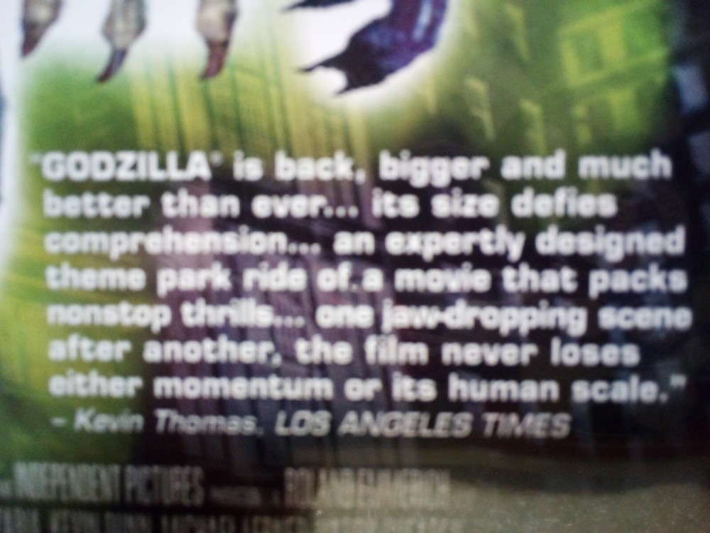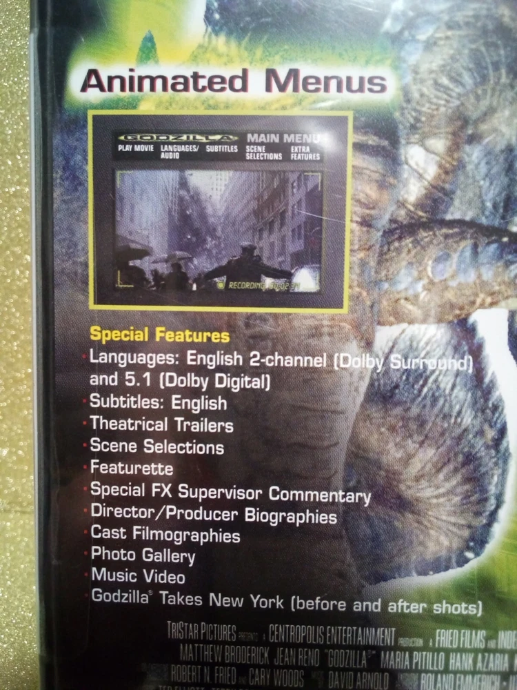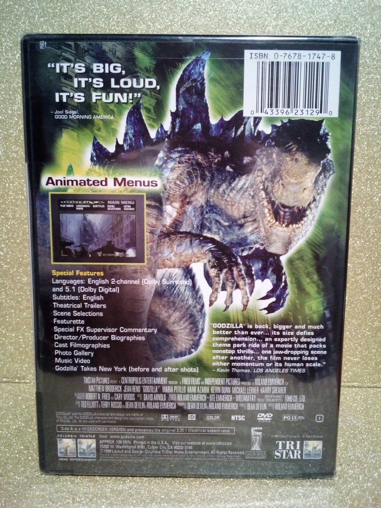 Buyer will receive: The exact item as is pictured above, that item being: One DVD movie titled: "GODZILLA" Item is new in wrap. In addition to the above, and prior to purchase , please examine the inclusive photos carefully as they are an integral part of the item description . Ships Worldwide . IMPORTANT NOTE: For buyers outside of the Continental U.S., additional shipping charges and associated costs such as import duties, taxes, etc. will be incurred. These charges are in addition to the U.S. shipping cost associated with this item and are the buyer’s responsibility. So please check with your country’s customs office to determine what these additional costs will be prior to purchase. By the by, if you happen to be incredibly bored at the moment, at the upper right of this listing, and for your perusal, you may click on ‘visit store’ or ‘see other items’ to view a veritable smorgasbord of new and used merchandise for money.