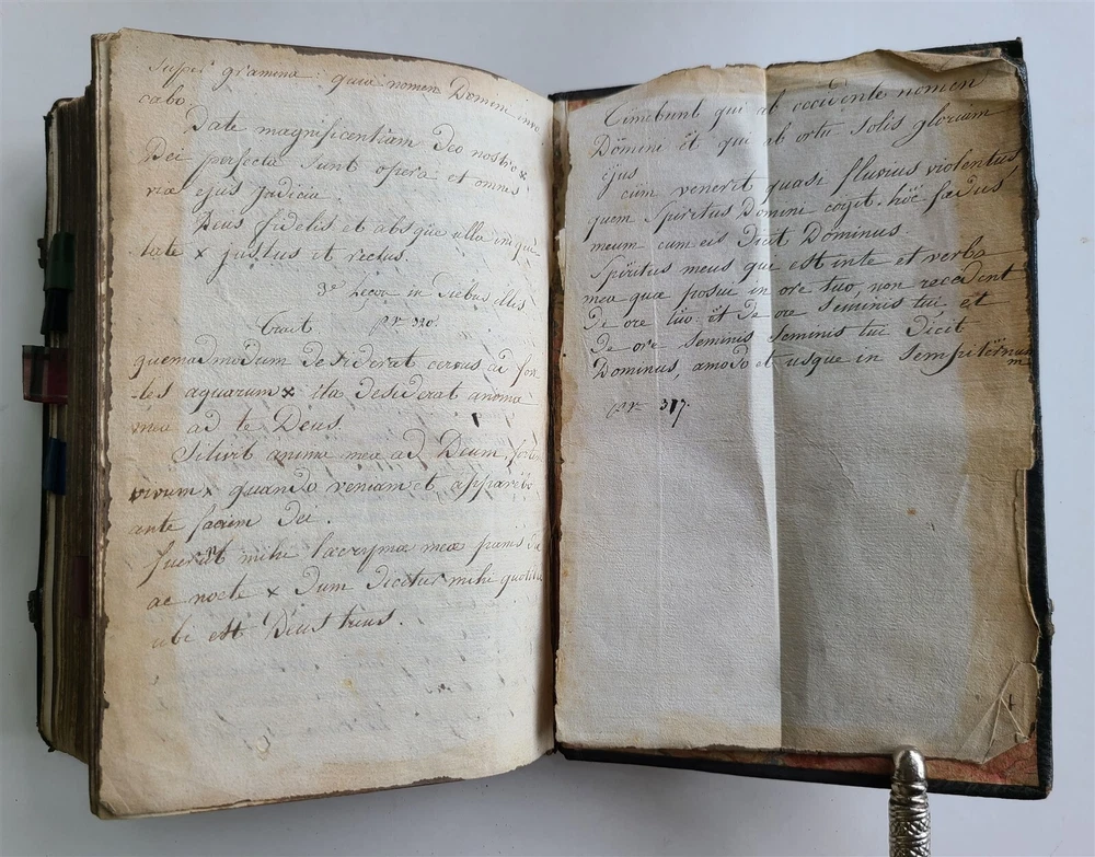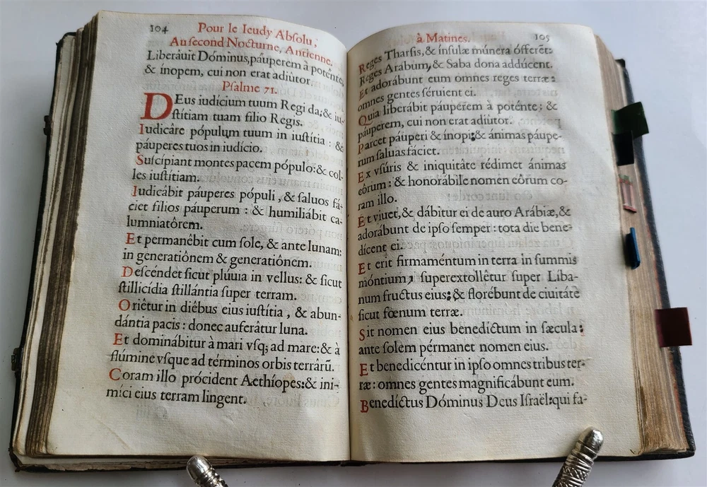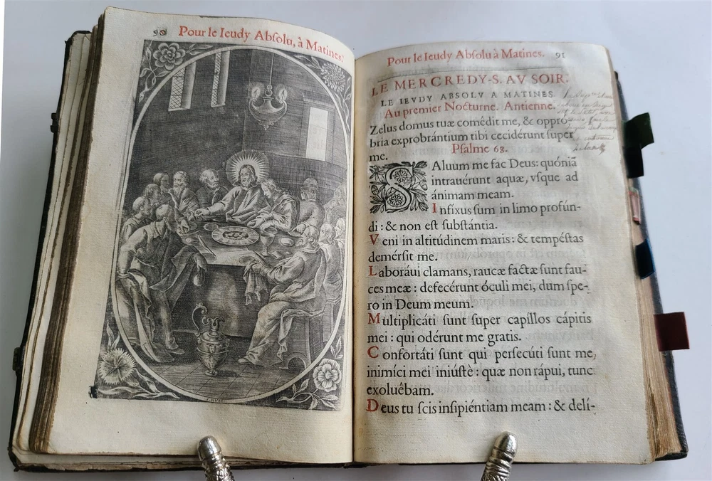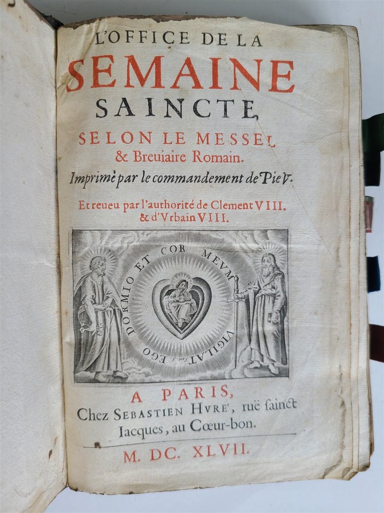 L'OFFICE DE LA SEMAINE SAINCTE rare copy of this precious liturgical guide for Holy Week, the missal and the Roman breviary This book printed in black and red offers an immersion in the practices and prayers dedicated to this sacred period of the Christian year. It constitutes a testimony to the religious fervor and devotion of the time - Paris: Sebastien Hure; 1647 488 pages Size 5 by 7 1/4" Old manuscript notes to the back endpaper Original embossed black morocco Good condition , some wear, lacks clasps Text in Latin (title in French) ==================================== Please see my other auctions Thank You Refund Policy: We will issue a FULL REFUND, 100% money back if you are not satisfied with your purchase. Items must be returned to us within 20 days in order to receive a refund or replacement. Buyer is responsible for shipping costs. Powered by SixBit's eCommerce Solution