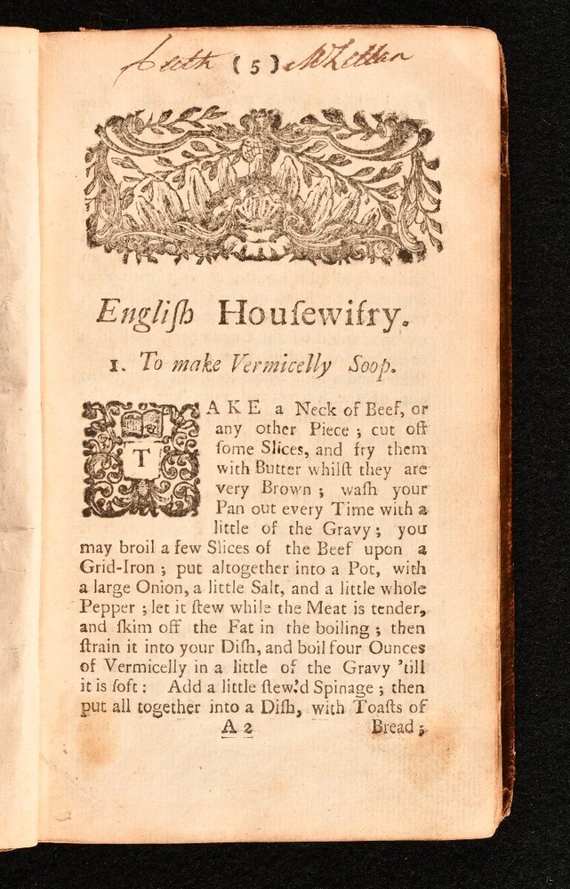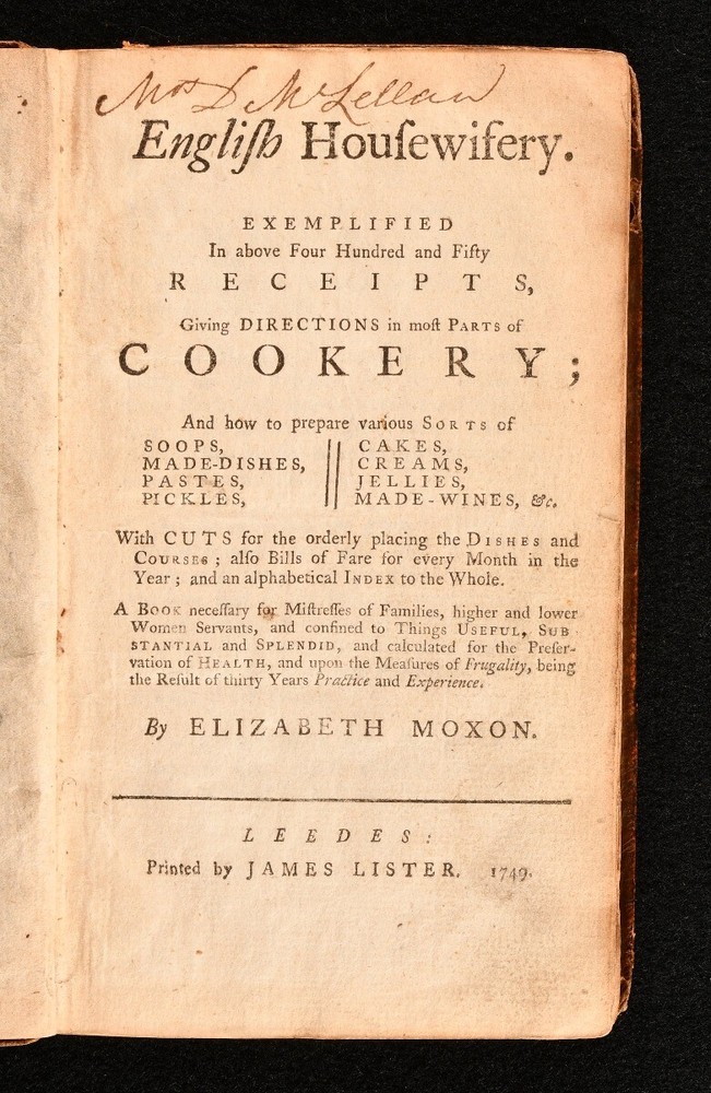 Click here to see our other books! English Housewifery Elizabeth Moxon 1749 James Lister : Leedes 7" by 4" [5], 6-224, [18]pp SUMMARY A very scarce and very early edition of Elizabeth Moxon's popular housekeeping guide. Early Edition,Leather Binding,Uncommon Overall Condition: Good This book weighs 0.75 KG when packed UK Postage: £ 3.99 US Postage: £ 15.99 EU Postage : £ 13.99 European Postage: £ 14.99 Asia Postage: £ 18.99 Worldwide Postage: £ 19.99 DESCRIPTION ESTC records state that this is the fourth edition. ESTC reference number T225436. Collated, lacking final leaf. Illustrated, with seven pages of illustrations regarding dinner settings to the rear. The woodcuts are diagrams of how to set a variety of dishes on the table. Prior owner's inscription to the title page, Mrs L McLellan. This work was first issued in Leeds in 1741 and was so popular that a second edition was published in 1743. It was marketed in London and Yorkshire and is believed to be one of the earliest cookery books with provincial origins to hold popularity in the capital. An important cookery work, which gives insight into recipes for soups, cakes, pastes, pickles, creams, jellies, made wines and much more. The work is presented with month-by-month plans for lunch, supper and more. CONDITION In a contemporary calf binding. Externally, sound, with patches of r ubbing to the joints and extremities. Loss to the spine and extremities. Front hinge is strained but firm. Rear endpaper is lacking the bottom half. Prior owner's inscription to the recto of front endpaper, and to the title page. Internally, firmly bound. Pages are bright, with just the odd spot. Overall Condition: Good GLOSSARY OF TERMS Overall Condition (Dustwrapper condition rating is shown after that for the book itself, where a dustwrapper is present) Fine - Very well preserved copy showing very little wear Very Good Indeed - Only one or two minor faults, really a very attractive copy Very Good - Quite a wide term meaning no major faults but probably several smaller ones often expected given the age of the book, but still a respectable copy Good - Meaning not very good. Some more serious faults as will be described in the condition report under 'condition' Good Only - Meaning one or more faults that could really do with repair Fair - As with good only above but with other faults leaving a compromised copy even after repair Poor - Really bad and possibly seriously incomplete. We only sell books in this condition where their rarity or value makes them attractive none the less. Major defects will be described. GUARANTEE We offer a full money back guarantee on our descriptions. Please ask for details and conditions. We prefer PAYPAL. If you pay via PAYPAL we will post the item off the same or the next working day with the postage you have selected. Please note we cannot accept USD cheques