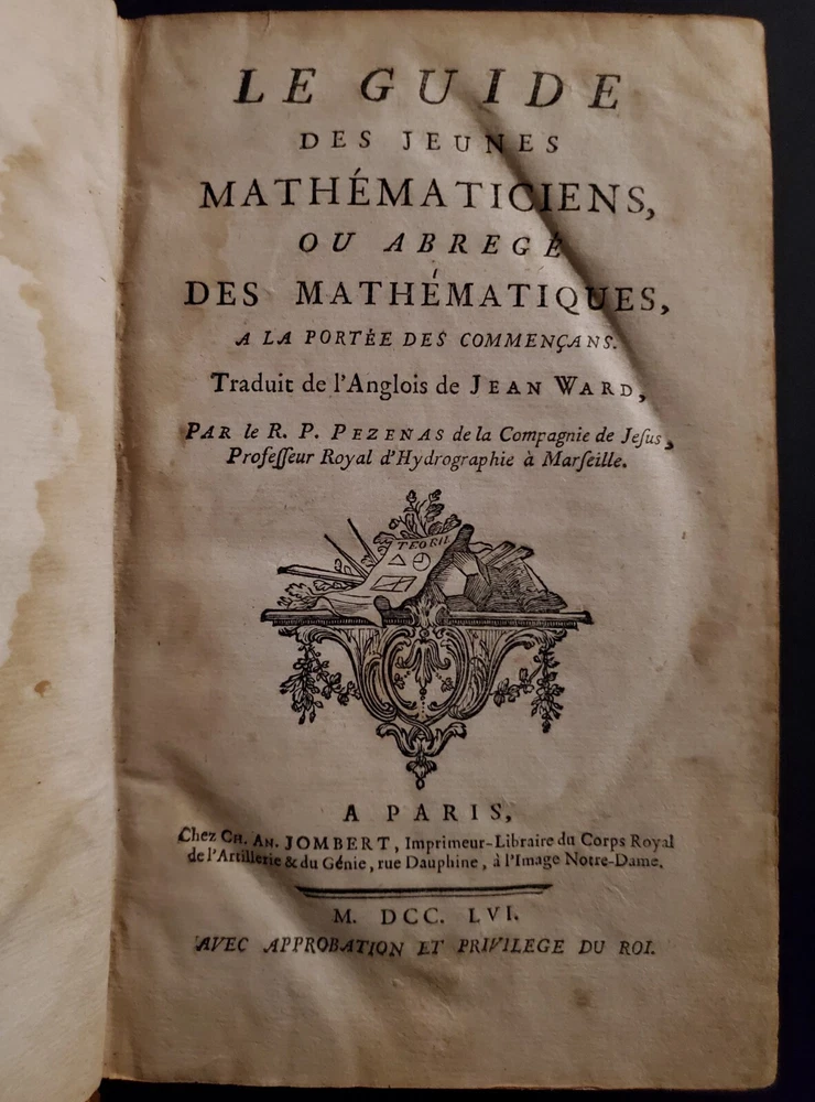 Scarce early edition printed in 1756 in the original French langauge. One of the most popular mathematic works of the Gregorian period. Nicely preserved previous collectors copy. Some light shelf wear and rubbing to extremities as shown. Chipping to head and heel of spine as shown. NO missing pages. Interior pages clean, but foxed and toned. Binding and hinges are still in good shape. Please see all of our listed photos. Sunrise Rare Books - We ship items world-wide, daily. - Each item is carefully stored and protected in our temperature controlled library. We securely pack each item tightly in cardboard boxes to ensure safe delivery. - Returns accepted within 30 days.