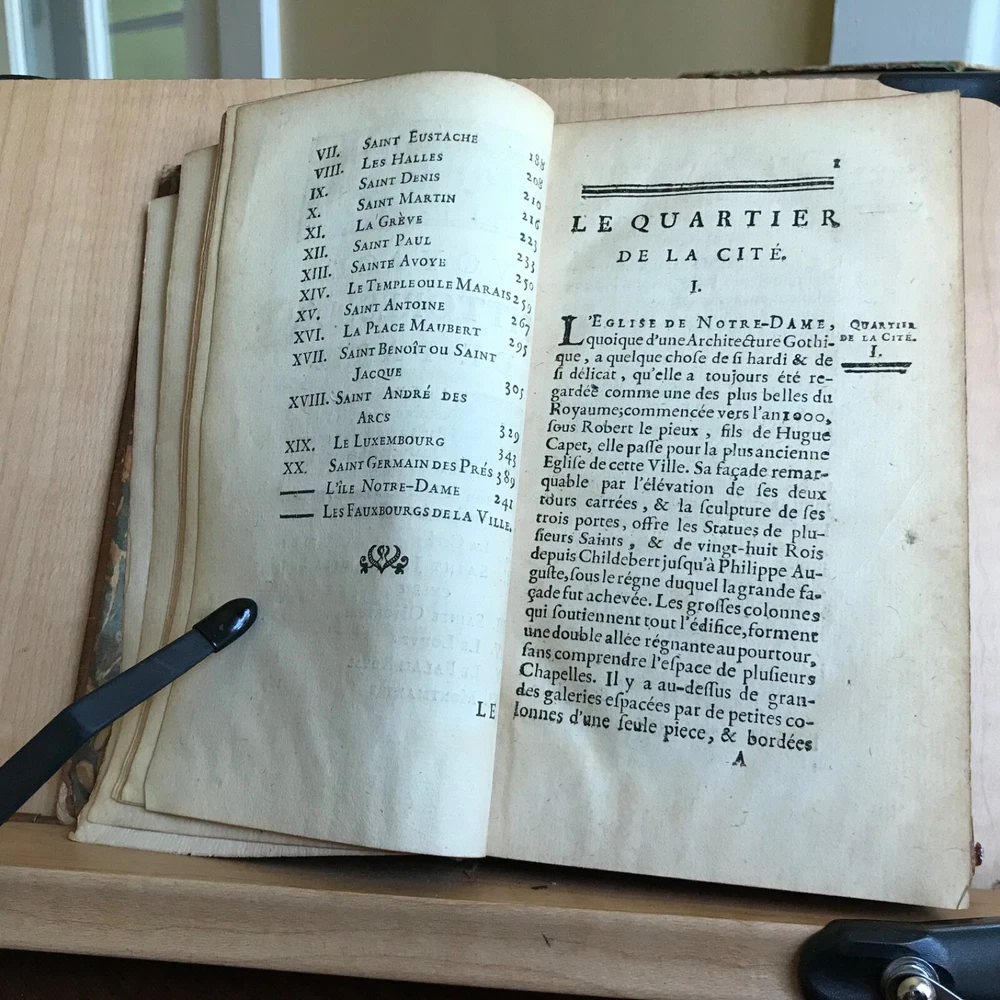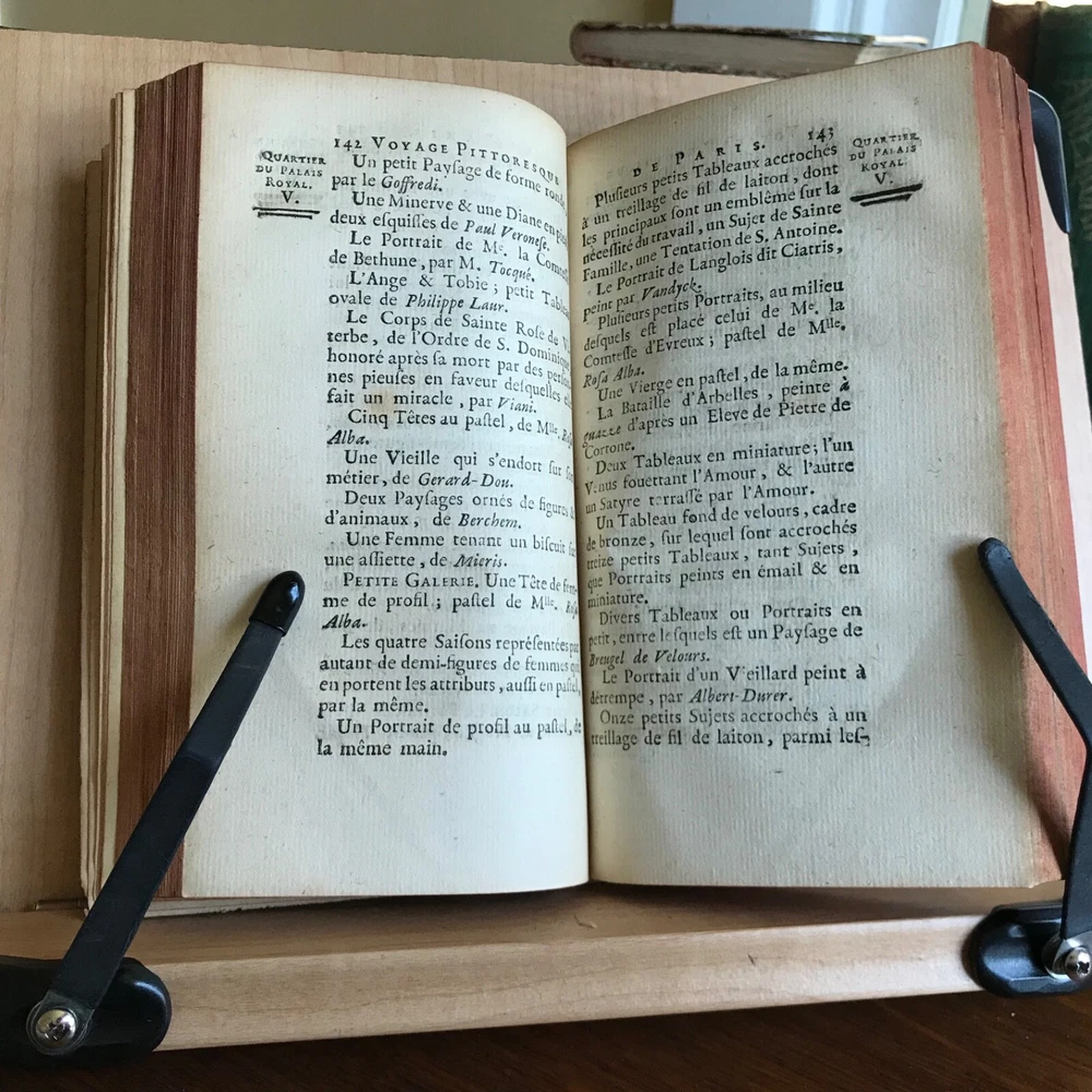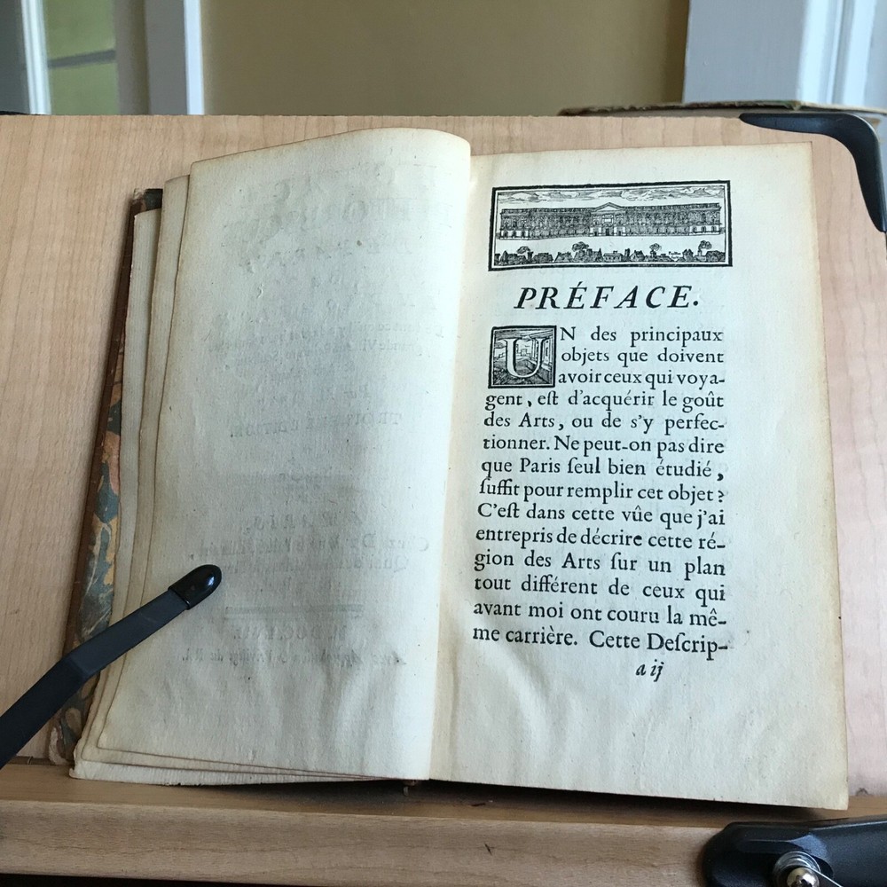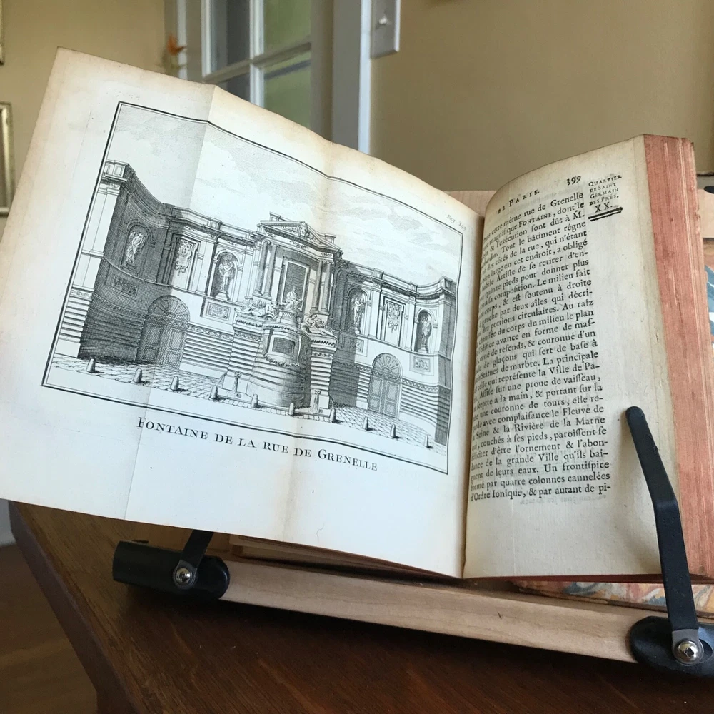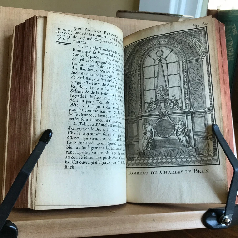 Voyage Pittoresque de Paris de tout ce qu'il y a de plus beau dans cette grande Ville en Peinture, Sculpture, & Architecture: Par M.D.*** Troisieme Edition, A Paris, CHez De Burel’aine, 1757, hand-colored illustrated title, two black and white full-page engravings and one folding illustrated engraving, 496 pp, full original leather, 7 x 4”, 12mo. In as-is condition. Binding copy. Both boards are detached. A great candidate for restoration. Original binding quite worn with heavy rubbing to extremities with peeling. Leather quite desiccated and cracking. A non-archival epoxy has likely been painted over the spine remnants. Heavy loss to spine. Marbled end papers free of markings, remain bright for their age. All edges red. First fly and end papers are nearly detached from the front of the text block. Internally good with light toning and minor instances of foxing. Free of known markings. Binding remains intact. An important work worth restoring. Please see photos. A guide to Paris’ art and monuments by Antoine-Nicholas Dezallier d’Argenville (1723-1796). Anonymously wrote under M.D.***. This work first appeared in Paris in 1749, and was a connoisseur’s guide to the chief artistic and architectural monuments of Paris, with accounts of the leading academic and scientific organizations of the city. At least six further editions appeared before the Revolution. COLH1757AJKW-FORN-TUB0004(HK)