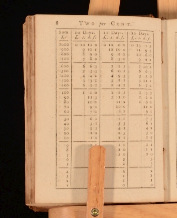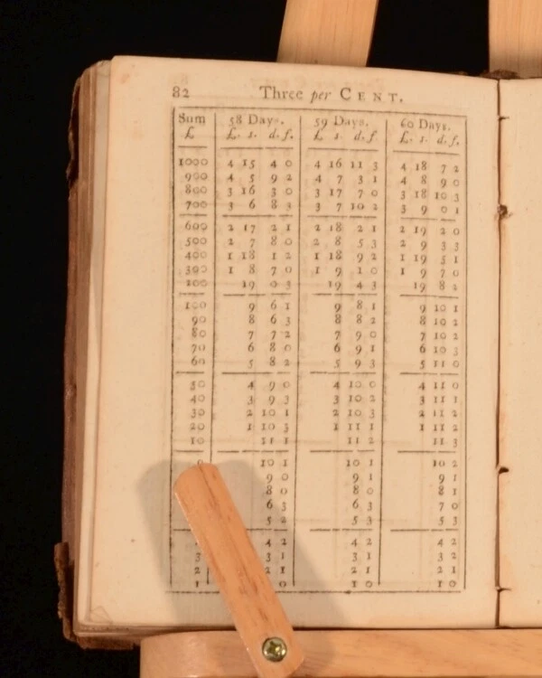 Click here to see our other books! The Banker's Sure Guide: or, Monied Man's Assistant. In Three Parts. S. Thomas 1782 G. Robinson : London 4.5" by 3.5" (xxviii) 328pp. SUMMARY A copy of a compact but important reference work concerning interests, annuities, brokerage commissions, etc. Leather Binding Overall Condition: Good This book weighs 0.5 KG when packed UK Postage: £ 3.99 US Postage: £ 15.99 EU Postage : £ 13.99 European Postage: £ 14.99 Asia Postage: £ 18.99 Worldwide Postage: £ 19.99 DESCRIPTION Written by 'S Thomas' a pseudonym for 'Thomas Slack'. In three parts. Part I consists of Tables of Interest, Part II of Sundry Tables and Part III of A large and accurate Table of Commission or Brokerage. The fifth edition, enlarged and corrected. Collated complete. Thomas Slack [pseud. S. Thomas] was a printer and newspaper proprietor. He was the eldest son of Joseph Slack (1701–1752), of Wreay, near Carlisle, and his wife Mary (nee Stephenson); he was baptised on 18 December 1723 at Hesket in the Forest, Cumberland. Nothing is known of Slack's education and early years. On 15 December 1751 he married Ann (or Anne) Fisher (1719–1778), daughter of Henry Fisher, a yeoman of Oldscale, in the parish of Lorton, Cumberland. In 1763 Slack started his own printing business. His shop which he named the Printing Press, was at the head of Middle Street, Newcastle upon Tyne. Slack, ably assisted by his wife, sold prints, lottery tickets, and spectacles, in addition to books and stationery. The printing of books formed a large part of their flourishing business. Between 1755 and 1784 his name appeared, as printer, publisher, or bookseller in the imprints of some 150 books. Thomas Slack was also an author, writing under the pseudonym S. Thomas, complementing his wife's work with a series of books on business practice: The British Negociator (1759), The Banker's Sure Guide (1762), Britannicus estimator (1764), which became The Ready Calculator (1771), and The Commercial Palladium (1775). He also edited W. Webster's Essays on Book-Keeping (1779). CONDITION In a calf leather binding. Externally, rather worn with some chips and closed tears. Internally, binding is loosening in places. Hinges are starting but firm. Pages are generally bright and clean with some age-toning. There are some annotations to the margins in pencil and an old ink inscription to the verso of front free-end paper. Overall Condition: Good GLOSSARY OF TERMS Overall Condition (Dustwrapper condition rating is shown after that for the book itself, where a dustwrapper is present) Fine - Very well preserved copy showing very little wear Very Good Indeed - Only one or two minor faults, really a very attractive copy Very Good - Quite a wide term meaning no major faults but probably several smaller ones often expected given the age of the book, but still a respectable copy Good - Meaning not very good. Some more serious faults as will be described in the condition report under 'condition' Good Only - Meaning one or more faults that could really do with repair Fair - As with good only above but with other faults leaving a compromised copy even after repair Poor - Really bad and possibly seriously incomplete. We only sell books in this condition where their rarity or value makes them attractive none the less. Major defects will be described. GUARANTEE We offer a full money back guarantee on our descriptions. Please ask for details and conditions. We prefer PAYPAL. If you pay via PAYPAL we will post the item off the same or the next working day with the postage you have selected. Please note we cannot accept USD cheques