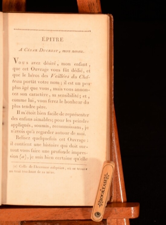 Click here to see our other books! Les Veillees Du Chateau l'Auteur d'Adele et Theodore 1812 Chez Maradan : Paris 7" by 4" (xxxix) 364pp; 418pp; 459pp SUMMARY A very scarce three volume set of this educational and instructional work by Stephanie Felicite, in attractive tree-calf binding. The works are written in French Leather Binding,Very Scarce Overall Condition: Good This book weighs 1.5 KG when packed UK Postage: £ 3.99 US Postage: £ 23.99 EU Postage : £ 18.99 European Postage: £ 19.99 Asia Postage: £ 31.99 Worldwide Postage: £ 32.99 DESCRIPTION By l'Auteur d'Adele et Theodore (Stephanie Felicite, comtesse de Genlis). Felicite, a noted writer and educator of Eighteenth Century France, was best known for her works Adele et Theodore (1782), Theatre d'education (1779-1782), as well as several historical novels and romances, particularly Mademoiselle de Clermont (1802). Well known in France during the late Eighteenth Century, and largely supportive of the French Revolution, she would fall out of favour with the Girondin political faction prominent at the time, leading to her exile to Switzerland and, subsequently, Berlin with her pupil Mademoiselle d'Orleans. Her husband, left behind, would shortly after face the guillotine. Her legacy remains a nonetheless enduring one, noted by the likes of Jane Austen, and appearing as a character in such works as Les Miserables and War and Peace. CONDITION In decorative tree-calf binding with gilt detailing. Externally quite smart, there is some wear to extremities, joints, boards and backstrip, as well as some staining to the front board of volume three. The hinges of two volumes are tender. Internally, the pages are generally firmly bound, though there is some strain in places, and are largely bright and clean, although there are instances of spotting, age-toning and foxing throughout, particularly to endpages. The pastedown sheets of volumes two and three have significant loss. Overall Condition: Good GLOSSARY OF TERMS Overall Condition (Dustwrapper condition rating is shown after that for the book itself, where a dustwrapper is present) Fine - Very well preserved copy showing very little wear Very Good Indeed - Only one or two minor faults, really a very attractive copy Very Good - Quite a wide term meaning no major faults but probably several smaller ones often expected given the age of the book, but still a respectable copy Good - Meaning not very good. Some more serious faults as will be described in the condition report under 'condition' Good Only - Meaning one or more faults that could really do with repair Fair - As with good only above but with other faults leaving a compromised copy even after repair Poor - Really bad and possibly seriously incomplete. We only sell books in this condition where their rarity or value makes them attractive none the less. Major defects will be described. GUARANTEE We offer a full money back guarantee on our descriptions. Please ask for details and conditions. We prefer PAYPAL. If you pay via PAYPAL we will post the item off the same or the next working day with the postage you have selected. Please note we cannot accept USD cheques