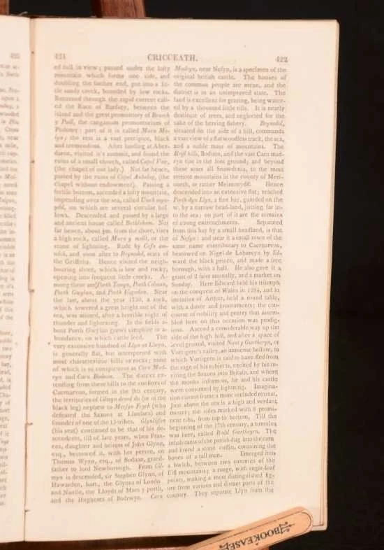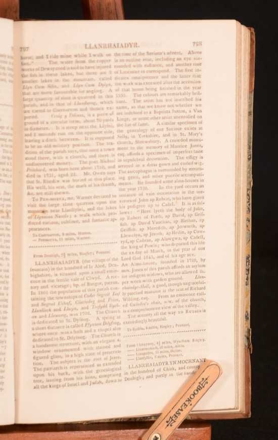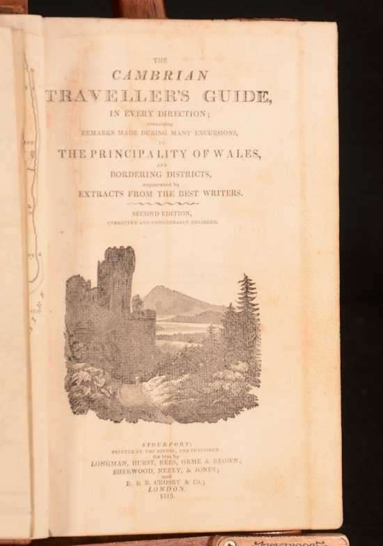 Click here to see our other books! The Cambrian Traveller's Guide, In Every Direction Containing Remarks Made During Many Excursions In the Principality of Wales and Bordering Districts George Nicholson 1813 Longman, Hurst, Rees, Orme, and Brown : London 8.5" by 5.5" xiii, 1468pp SUMMARY A comprehensive guide to Wales and its surrounding districts. Leather Binding Overall Condition: Good This book weighs 1.5 KG when packed UK Postage: £ 3.99 US Postage: £ 23.99 EU Postage : £ 18.99 European Postage: £ 19.99 Asia Postage: £ 31.99 Worldwide Postage: £ 32.99 DESCRIPTION The Second Edition. Direct from the Regency library of Elizabeth Greenly, later Lady Elizabeth Coffin Greenly. Elizabeth Greenly, born at Titley Court, Herefordshire, was a noted and varied collector. She kept prolific diaries from 1784 until her death in 1839 which included her responses to current events and occasions in her daily life. Among the diaries many names and anecdotes of celebrities of the time appear, including Lord Byron, Marie Antoinette, Mary Wollstonecraft and Hannah More. She was known to comment on customs of foreign countries to which she and her friends had travelled, and had a keen interest in scientific discoveries and advancements including medicine and archaeology. The Greenly library contents show Elizabeth Greenly's numerous interests including: Welsh causes, Science, topography, travel, Bibliana and literature, particularly female poets. The library contains many first editions of contemporary works, and many are signed or contain her bookplate. The library contained over 1000 volumes which show the diversity and depth of her interests and give an insight into the life of this fascinating collector. These works come directly from the library of the Titley Court estate. With an illustrated folding map. Each area and district are listed alphabetically with a short history of the location, including its name, historical inhabitants and plant-life as well as interesting sights. To the rear is an index of plants and the pages they are mentioned as well as an index of the place names and a further miscellaneous index. CONDITION In a half calf binding. Externally, generally smart with rubbing to spine. Backstrip is lifting slightly at the front. Front joint is tender but still reasonably firm. Front hinge is tender with the cords showing. Rear hinge is slightly strained but firm. Prior owner's ink inscription to front pastedown, Emily Mason. Internally, generally firmly bound though strained in places. The odd spot throughout. Overall Condition: Good GLOSSARY OF TERMS Overall Condition (Dustwrapper condition rating is shown after that for the book itself, where a dustwrapper is present) Fine - Very well preserved copy showing very little wear Very Good Indeed - Only one or two minor faults, really a very attractive copy Very Good - Quite a wide term meaning no major faults but probably several smaller ones often expected given the age of the book, but still a respectable copy Good - Meaning not very good. Some more serious faults as will be described in the condition report under 'condition' Good Only - Meaning one or more faults that could really do with repair Fair - As with good only above but with other faults leaving a compromised copy even after repair Poor - Really bad and possibly seriously incomplete. We only sell books in this condition where their rarity or value makes them attractive none the less. Major defects will be described. GUARANTEE We offer a full money back guarantee on our descriptions. Please ask for details and conditions. We prefer PAYPAL. If you pay via PAYPAL we will post the item off the same or the next working day with the postage you have selected. Please note we cannot accept USD cheques