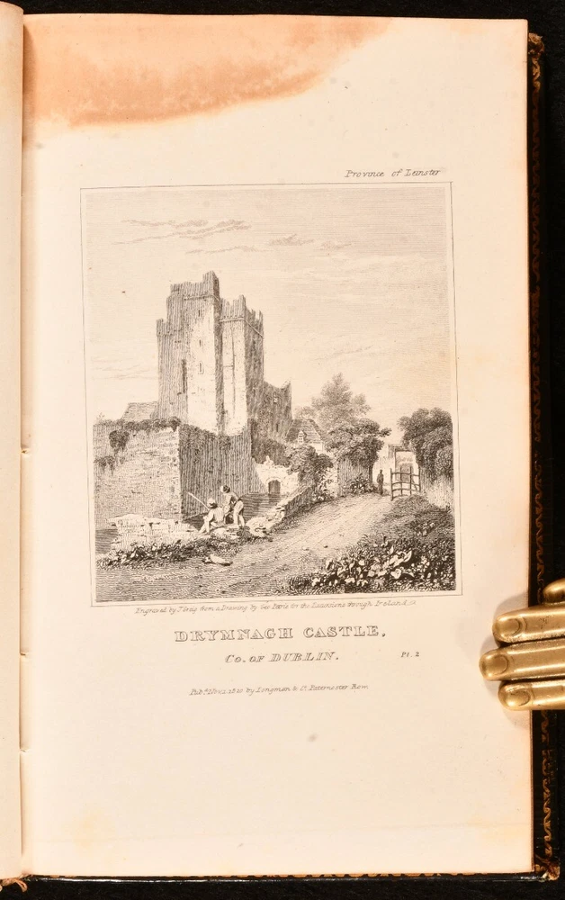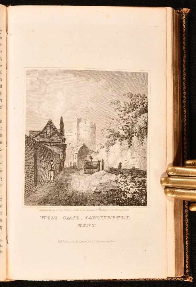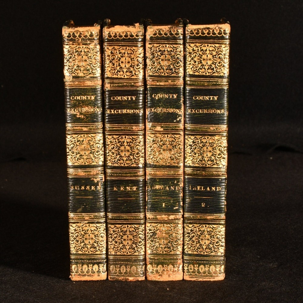 Click here to see our other books! Excursions Through Ireland, Kent and Sussex: Comprising Brief Historical and Topographical Delineations; Together with Descriptions of the Residences of the Nobility and Gentry, Remains of Antiquity, and Other Interesting Subjects of Curiosity Forming a Complete Guide for the Traveller & Tourist. [Thomas Cromwell] [1820]-22 Longman, Hurst, Rees, Orme, and Brown : London 6.5" by 4" 216; 201; 216; 216pp. SUMMARY Four volumes from Thomas Cromwell's 'Excursions' series, including Kent, Sussex and two volumes in Ireland, illustrated throughout and bound in full straight grain morocco. First Edition,Folding Maps,Illustrated,Leather Binding Overall Condition: Good This book weighs 1 KG when packed UK Postage: £ 3.99 US Postage: £ 22.99 EU Postage : £ 16.99 European Postage: £ 17.99 Asia Postage: £ 22.99 Worldwide Postage: £ 28.99 DESCRIPTION Four volumes. Bound in full straight grain morocco. Illustrated with frontispieces, engraved title pages and folding plates included in forty-eight plates to 'Sussex', forty-eight plates to 'Kent', forty-seven to 'Ireland Volume One' and sixty four to 'Ireland Volume Two'. Collated, lacking two plates to 'Sussex' and 'Kent' and lacking a number of plates to both volumes of 'Ireland', with no collation available for those volumes due to lack of title page. This four volume set features works from Thomas Cromwell's series of 'Excursions' through various counties, with this set being on Kent, Sussex and Ireland. 'Excursions in Ireland' undated, dated by copies held on Jisc. CONDITION Bound in full straight grain morocco. Lacking title pages to both volumes of 'Ireland' and the Externally very smart with fading to the spines, bumping and rubbing to the extremities, slight rubbing to the joints and raised bands and the odd slight mark. Very minor offsetting to the extremities of the endpapers with a past owner's name to the free endpaper. Internally generally firmly bound with plate facing pp.13 tender and lacking plates to all volumes. Pages age lightly toned to the extremities with occasional spotting, heavier to the front and rear. Overall Condition: Good GLOSSARY OF TERMS Overall Condition (Dustwrapper condition rating is shown after that for the book itself, where a dustwrapper is present) Fine - Very well preserved copy showing very little wear Very Good Indeed - Only one or two minor faults, really a very attractive copy Very Good - Quite a wide term meaning no major faults but probably several smaller ones often expected given the age of the book, but still a respectable copy Good - Meaning not very good. Some more serious faults as will be described in the condition report under 'condition' Good Only - Meaning one or more faults that could really do with repair Fair - As with good only above but with other faults leaving a compromised copy even after repair Poor - Really bad and possibly seriously incomplete. We only sell books in this condition where their rarity or value makes them attractive none the less. Major defects will be described. GUARANTEE We offer a full money back guarantee on our descriptions. Please ask for details and conditions. We prefer PAYPAL. If you pay via PAYPAL we will post the item off the same or the next working day with the postage you have selected. Please note we cannot accept USD cheques