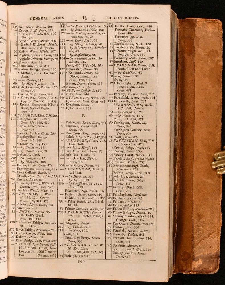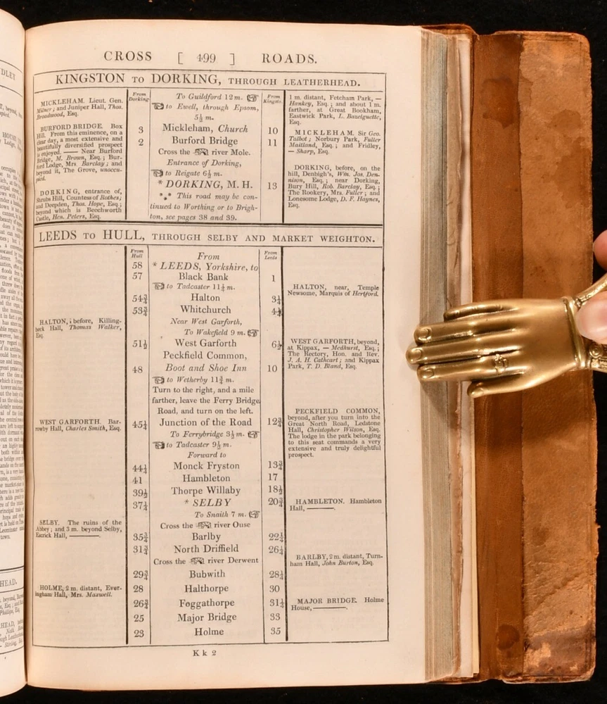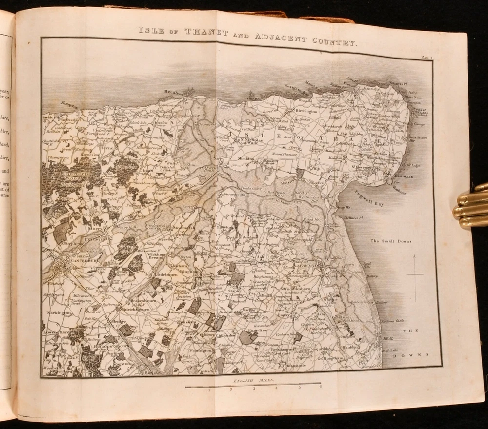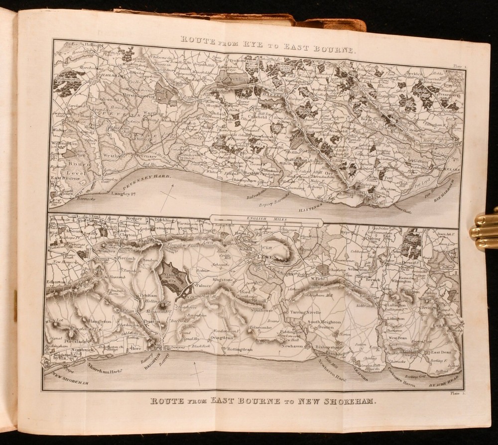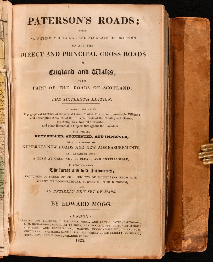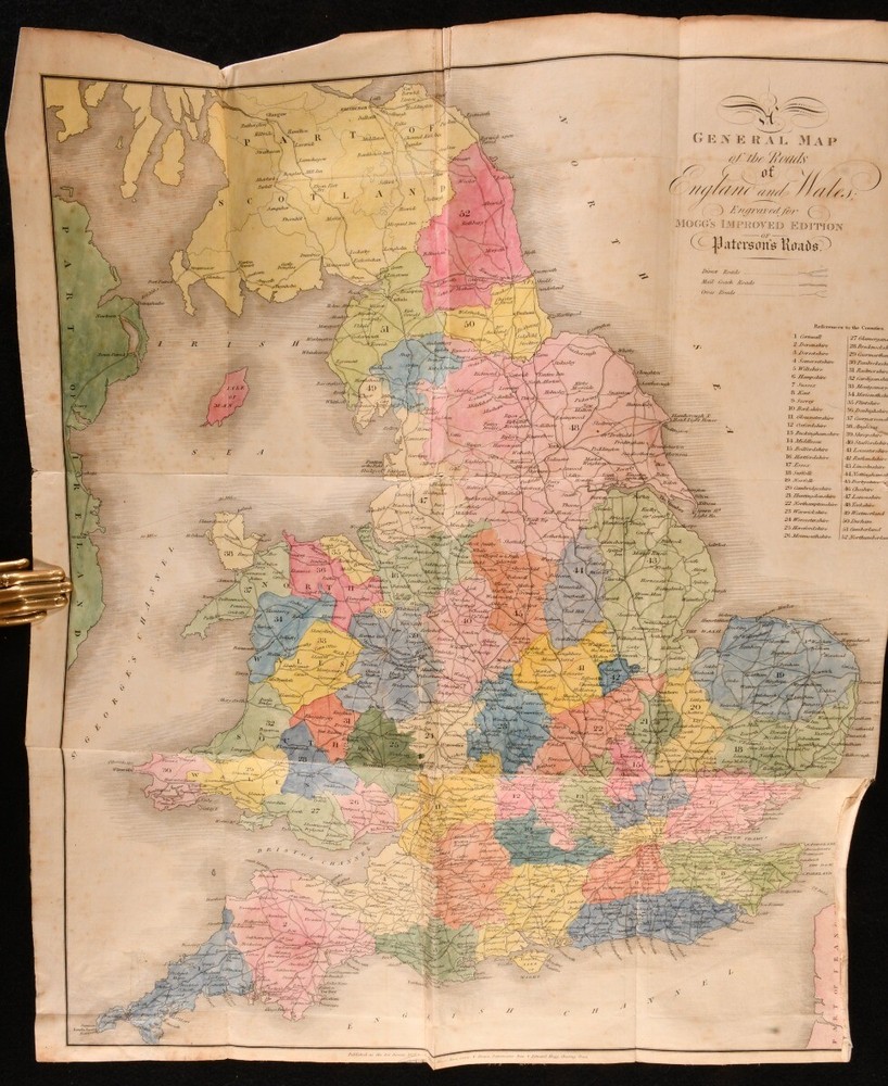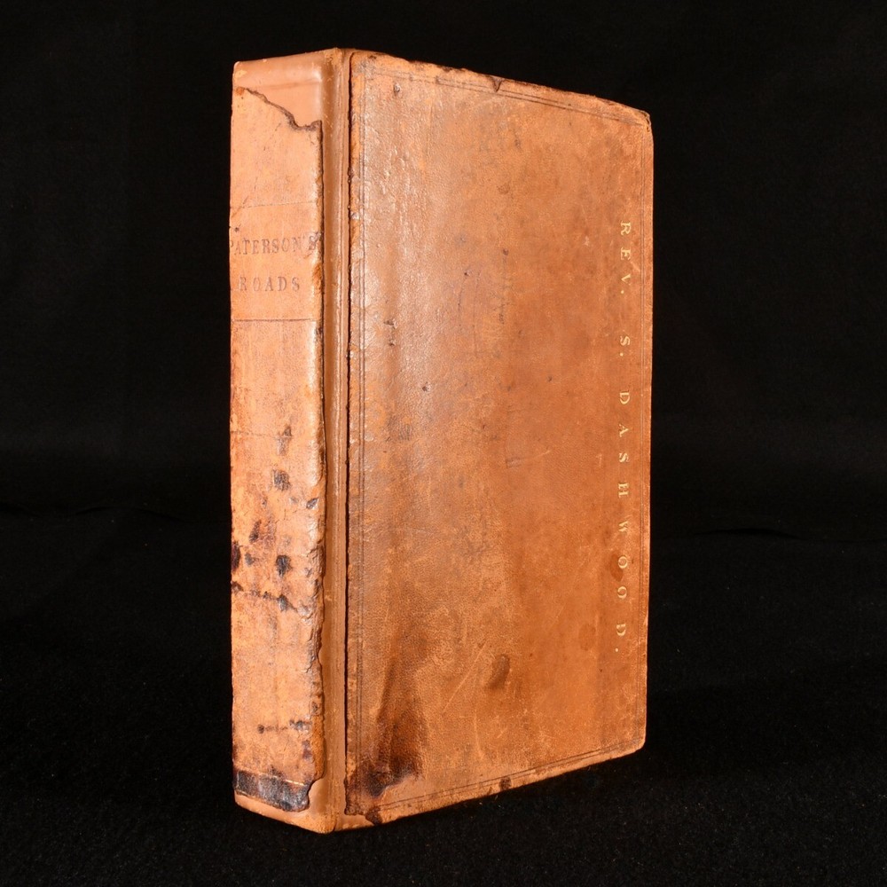 Click here to see our other books! Paterson's Roads, Being an Entirely Original and Accurate Description of All the Direct and Principal Cross Roads in England and Wales Edward Mogg 1822 Longman, Hurst, Rees, Orme and Brown : London 9" by 6" xvi [3], 2-670pp SUMMARY A fascinating account of the roads of Britain in the 1820's, in a smart full calf binding and illustrated with a number of folding maps. Colour Plates,Folding Maps,Leather Binding Overall Condition: Very Good This book weighs 1.5 KG when packed UK Postage: £ 3.99 US Postage: £ 23.99 EU Postage : £ 18.99 European Postage: £ 19.99 Asia Postage: £ 31.99 Worldwide Postage: £ 32.99 DESCRIPTION The 1822 sixteenth edition of 'Paterson's Roads', the work of Edward Mogg, a publisher and cartographer known for his maps and travel guides to London and other localities in England, Scotland and Wales. In a full calf binding, with the contemporary owner's name 'Rev. S. Dashwood' in gilt to the front board. With 'an entirely new set of maps', this edition features a folding colour map frontispiece, and eight further folding maps. Collated, complete. Mogg's publications were so widely used in the nineteenth century that they appeared in works of fiction including Robert Smith Surtees' 'Mr. Sponge's Sporting Tour', and Shirley Brooks' 'The Naggletons'. CONDITION Rebacked, in a full calf binding, with original boards restored, endpapers renewed and back strip laid down. Wide yapp edge covers fore edge of text block, with contemporary owner's name in gilt to front board. Discolouration to rear board tail and back strip tail. Internally, firmly bound. Pages bright and generally clean, with areas of light spotting, most apparent to plates. Overall Condition: Very Good GLOSSARY OF TERMS Overall Condition (Dustwrapper condition rating is shown after that for the book itself, where a dustwrapper is present) Fine - Very well preserved copy showing very little wear Very Good Indeed - Only one or two minor faults, really a very attractive copy Very Good - Quite a wide term meaning no major faults but probably several smaller ones often expected given the age of the book, but still a respectable copy Good - Meaning not very good. Some more serious faults as will be described in the condition report under 'condition' Good Only - Meaning one or more faults that could really do with repair Fair - As with good only above but with other faults leaving a compromised copy even after repair Poor - Really bad and possibly seriously incomplete. We only sell books in this condition where their rarity or value makes them attractive none the less. Major defects will be described. GUARANTEE We offer a full money back guarantee on our descriptions. Please ask for details and conditions. We prefer PAYPAL. If you pay via PAYPAL we will post the item off the same or the next working day with the postage you have selected. Please note we cannot accept USD cheques