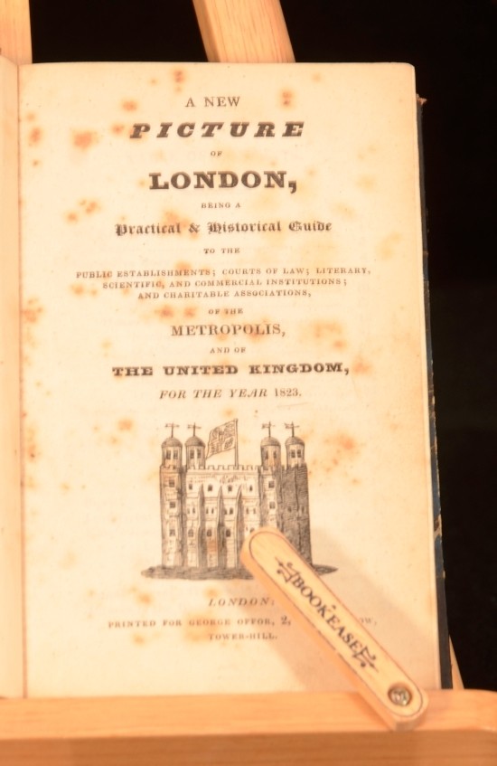 Click here to see our other books! A New Picture of London, Being a Practical and Historical Guide to the Public Establisments; Courts of Law; Literary, Scientific, and Commerical Institutions; and Charitable Associations, of the Metropolis, and of the United Kingdom for the year 1823 Various 1823 George Offor : London 7" by 4.5" xii, 456pp SUMMARY A topographical guide to London for the year 1823. Leather Binding Overall Condition: Good This book weighs 0.5 KG when packed UK Postage: £ 3.99 US Postage: £ 15.99 EU Postage : £ 13.99 European Postage: £ 14.99 Asia Postage: £ 18.99 Worldwide Postage: £ 19.99 DESCRIPTION Including details of the naval department, the law department, commercial establishments, schools, and more. Bookplate of one Charles Edward H. Chadwuyck Healey to front pastedown. CONDITION In a half-morocco binding with marbled boards. Externally, smart, though with some light rubbing. Internally, firmly bound. Pages have some foxing throughout. Overall Condition: Good GLOSSARY OF TERMS Overall Condition (Dustwrapper condition rating is shown after that for the book itself, where a dustwrapper is present) Fine - Very well preserved copy showing very little wear Very Good Indeed - Only one or two minor faults, really a very attractive copy Very Good - Quite a wide term meaning no major faults but probably several smaller ones often expected given the age of the book, but still a respectable copy Good - Meaning not very good. Some more serious faults as will be described in the condition report under 'condition' Good Only - Meaning one or more faults that could really do with repair Fair - As with good only above but with other faults leaving a compromised copy even after repair Poor - Really bad and possibly seriously incomplete. We only sell books in this condition where their rarity or value makes them attractive none the less. Major defects will be described. GUARANTEE We offer a full money back guarantee on our descriptions. Please ask for details and conditions. We prefer PAYPAL. If you pay via PAYPAL we will post the item off the same or the next working day with the postage you have selected. Please note we cannot accept USD cheques