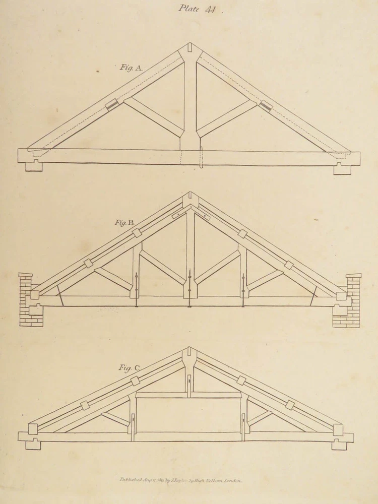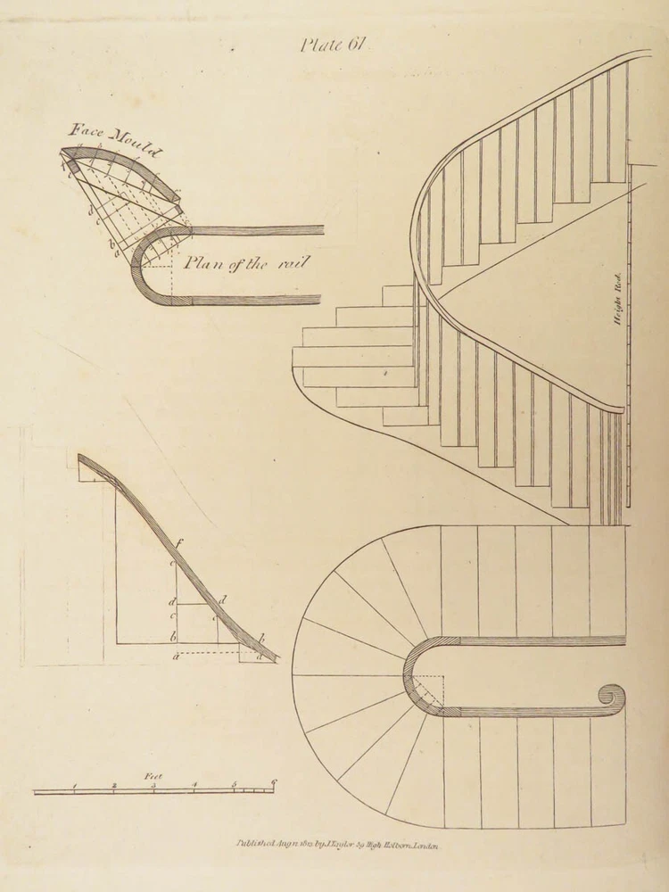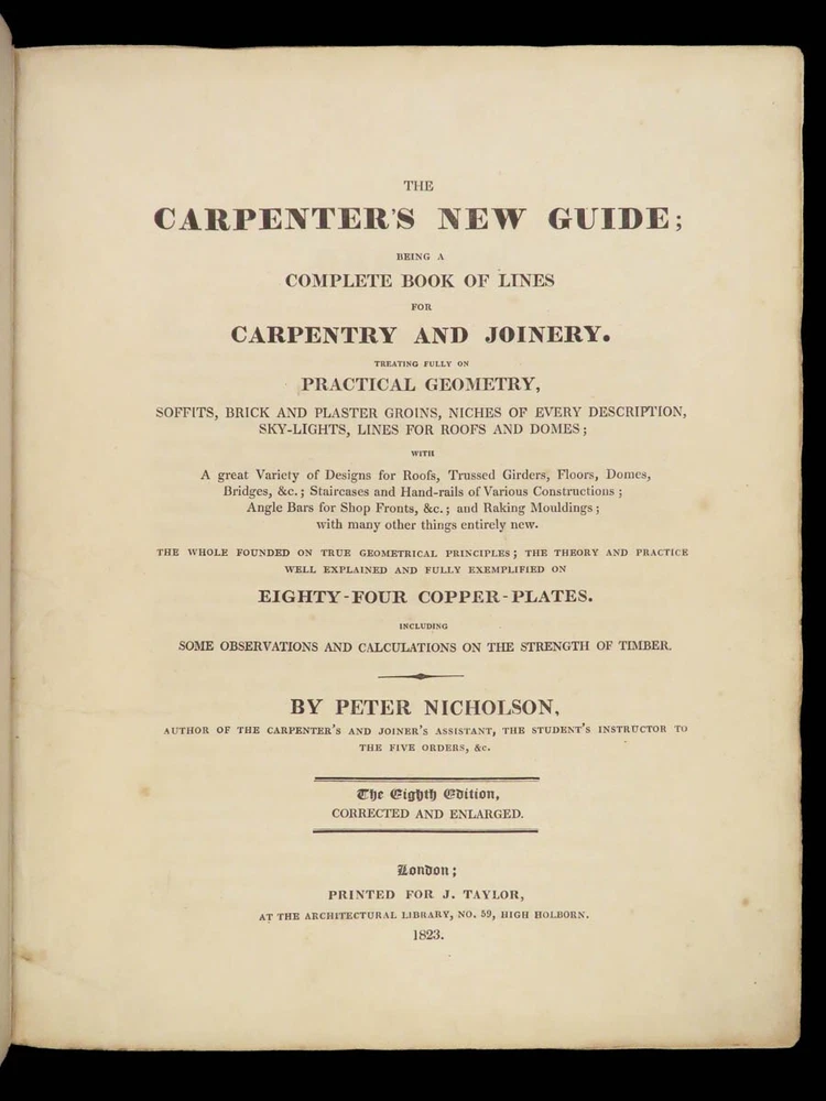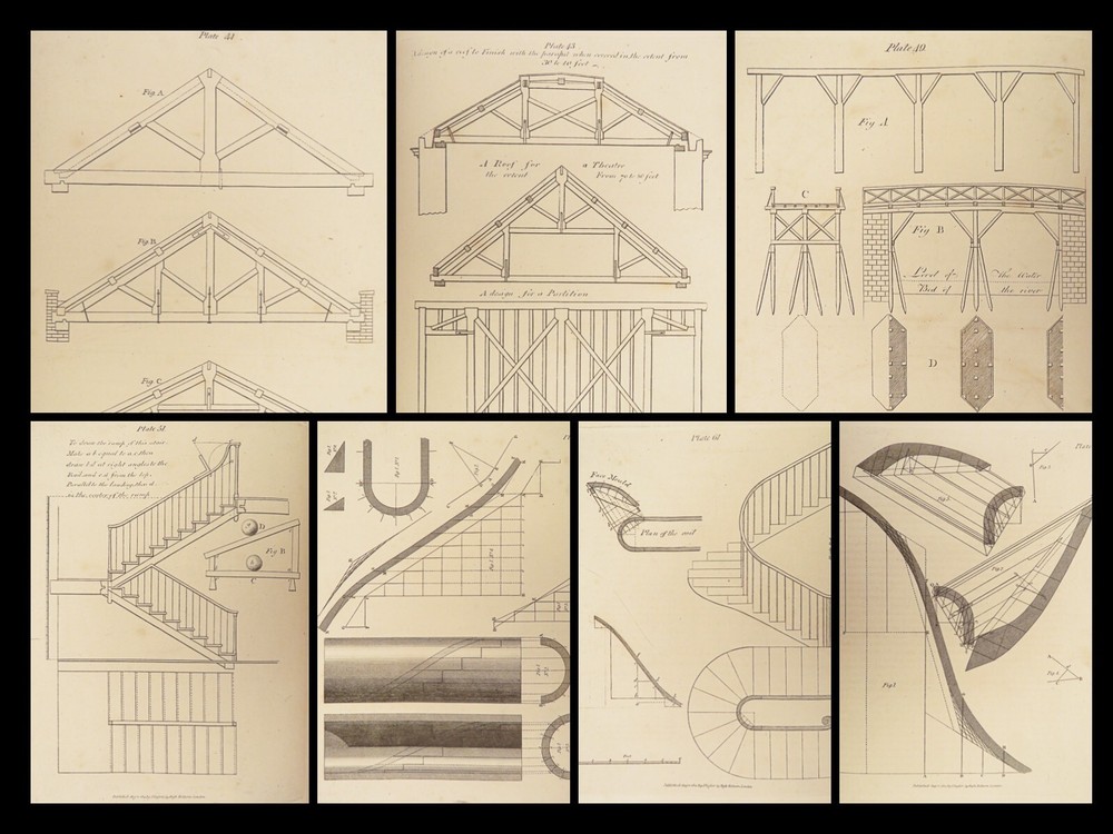 1823 Architecture Carpenters Guide Construction Wood Working Illustrated RARE Peter Nicholson’s “ Carpenter’s New Guide ” is a fascinating early 19 th -century treatise for builders and carpenters. Illustrated with 84 plates, this book offers designs and building plans for roofs, trusses, domes, flooring, bridges, staircases, railings, and much more. Each of the plates is accompanied by a detailed explanation of building methods. Item number: #26651 Price: $599 NICHOLSON, Peter The carpenter's new guide : being a complete book of lines for carpentry and joinery ; treating fully on practical geometry, soffits, brick and plaster groins London: printed for J. Taylor, 1823. Details : · Collation: o vii, [1], 92 § Wanting p. 39-40 o 83 copper engraved plates (of 84) § Wanting plate 36 · Language: English · Binding: Leather; tight and secure · Size : ~10.75in X 8.75in (27cm x 22.5cm) · Rare and desirable Our Guarantee: Very Fast. Very Safe. Free Shipping Worldwide. Customer satisfaction is our priority! Notify us with 7 days of receiving, and we will offer a full refund without reservation! 26651