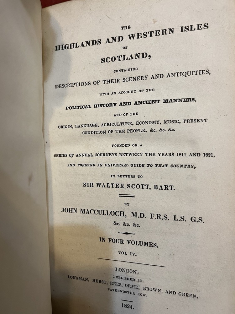 1824 The Highlands and Western Isles of Scotland Vol 4 John MacCulloch GC. Shipped with USPS Media Mail....