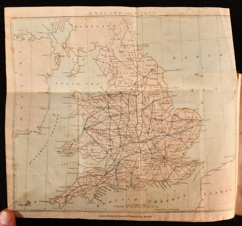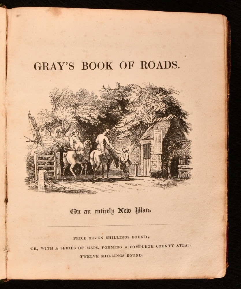 Click here to see our other books! Tourist and Traveller's Guide to the Roads of England and Wales, and Part of Scotland George Carrington Gray 1824 Sherwood, Jones, and Co : London 6" by 5" [4], v, [3], 86pp, unpaginated SUMMARY The first edition of George Carrington Gray's uncommon guide to Britain through it's roads, illustrated with many plates. Colour Plates,First Edition,Folding Maps,Illustrated,Leather Binding,Uncommon Overall Condition: Good This book weighs 0.5 KG when packed UK Postage: £ 3.99 US Postage: £ 15.99 EU Postage : £ 13.99 European Postage: £ 14.99 Asia Postage: £ 18.99 Worldwide Postage: £ 19.99 DESCRIPTION The first edition of this uncommon work. A comprehensive guide to the roads through England, Wales, and part of Scotland, providing an exhaustive study of the countries through their great roads, cross roads, and routes. Illustrated with a colour folding map to the frontispiece, two folding maps, and forty-six maps. By George Carrington Gray. Two pages of adverts to the front. Collated, bound without one map, being map number vi. CONDITION In a rebacked half calf binding with marbled paper to the boards. Externally, rubbed. Minor bumping to the head and tail of the spine and to the extremities. Rubbing has resulted in some loss of paper to the boards, and loss to the leather to the extremities. Boards are discoloured. Spine is faded. Hinges have been reinforced. Ink inscription to the front paste down. Internally, firmly bound. Pages are lightly age-toned and generally clean with scattered spots. Small closed tears to the folding maps. Overall Condition: Good GLOSSARY OF TERMS Overall Condition (Dustwrapper condition rating is shown after that for the book itself, where a dustwrapper is present) Fine - Very well preserved copy showing very little wear Very Good Indeed - Only one or two minor faults, really a very attractive copy Very Good - Quite a wide term meaning no major faults but probably several smaller ones often expected given the age of the book, but still a respectable copy Good - Meaning not very good. Some more serious faults as will be described in the condition report under 'condition' Good Only - Meaning one or more faults that could really do with repair Fair - As with good only above but with other faults leaving a compromised copy even after repair Poor - Really bad and possibly seriously incomplete. We only sell books in this condition where their rarity or value makes them attractive none the less. Major defects will be described. GUARANTEE We offer a full money back guarantee on our descriptions. Please ask for details and conditions. We prefer PAYPAL. If you pay via PAYPAL we will post the item off the same or the next working day with the postage you have selected. Please note we cannot accept USD cheques