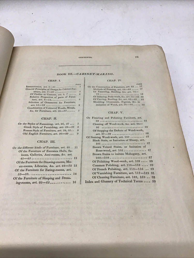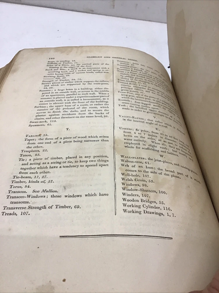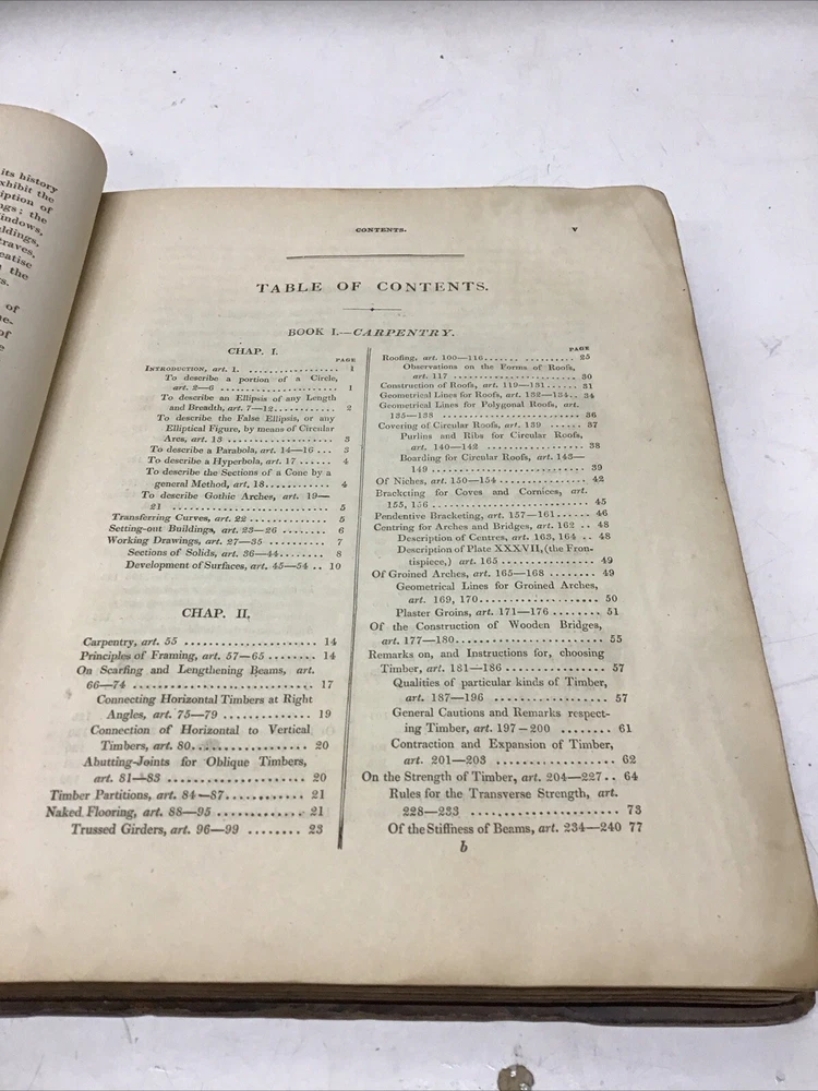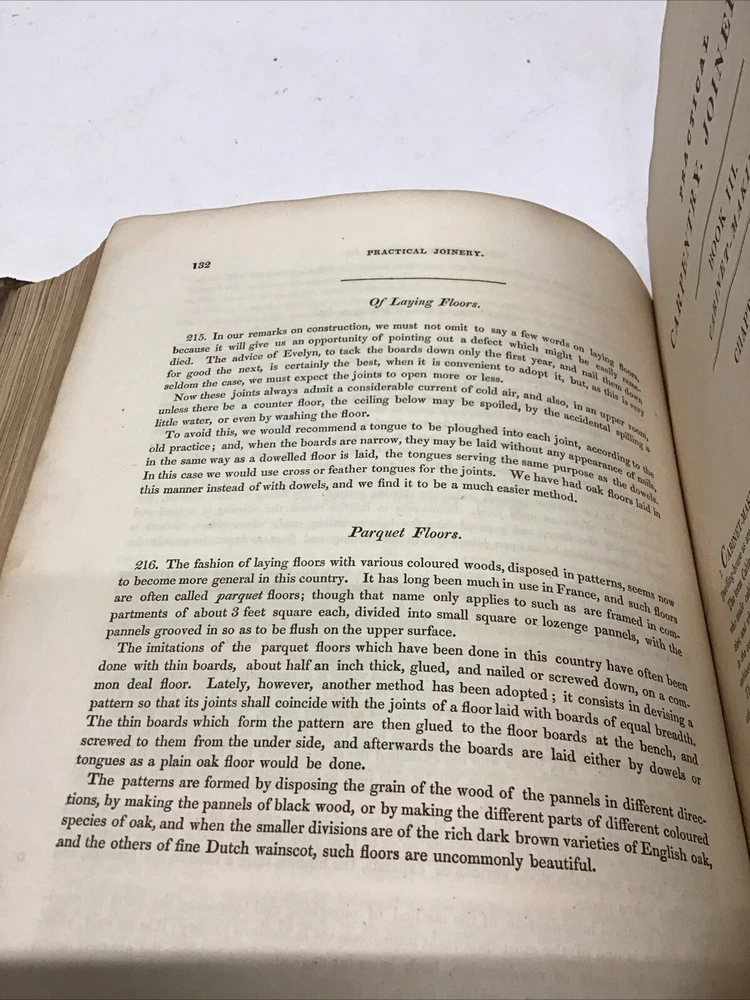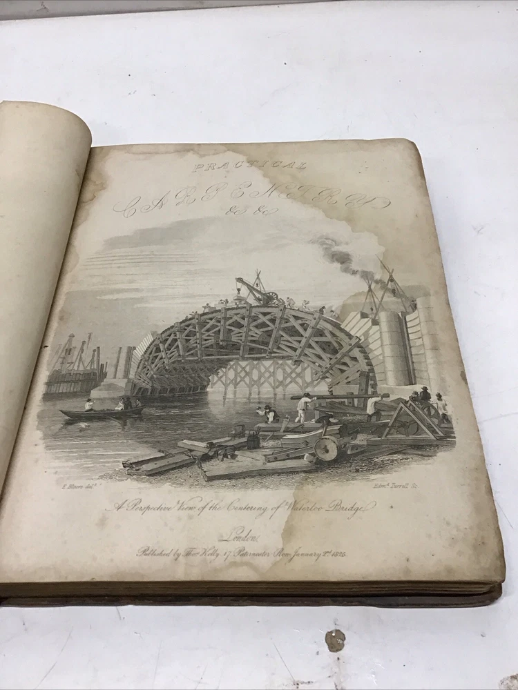 This 1835 publication titled "Practical Carpentry, Joinery, and Cabinet Making Explained & Illustrated" is a valuable addition to any collection of antique woodworking books. The book is bound in leather and features illustrations of the procedures described in the text. The author, NICHOLSON, provides a comprehensive guide to the subject of woodworking, including topics such as carpentry, joinery, and cabinet-making. The book was printed for Thomas Kelly by J.Rider in London and is an original copy from 1835. It is a non-fiction subject and falls under the category of engineering and technology. The book is written in English and has special attributes such as being illustrated. It is a valuable item for collectors and enthusiasts of antique woodworking books. Practical Carpentry, Joinery, And Cabinet-Making; Being A New And Complete System Of Lines, For the Use Of Workmen; Founded on accurate Geometrical and Mechanical Principles, With Their Application In Carpentry, - To Roofs, Domes, Centring, &c.; In Joinery, - To Stairs, Hand-Rails, Soffits, Niches, &c.; And In Cabinet-Making To Furniture, Both Plain And Ornamental; Fully and Clearly Explained. [NICHOLSON, Peter] [1765-1844]. Published by London: Printed For Thomas Kelly By J.Rider, 1835 1835 Practical Carpentry, Joinery, and Cabinet Making Explained & Illustrated Size 9” x 11” Nice Leather Front, interior has discoloration as can be seen in pictures. Contains 90 plates. For list see picture 15. Has previous owner Robert Howard 1837 Keep in mind the shipping price also covers handling fees, packaging materials & time, not just postage. See our eBay store for 1000’s of other items. B12F