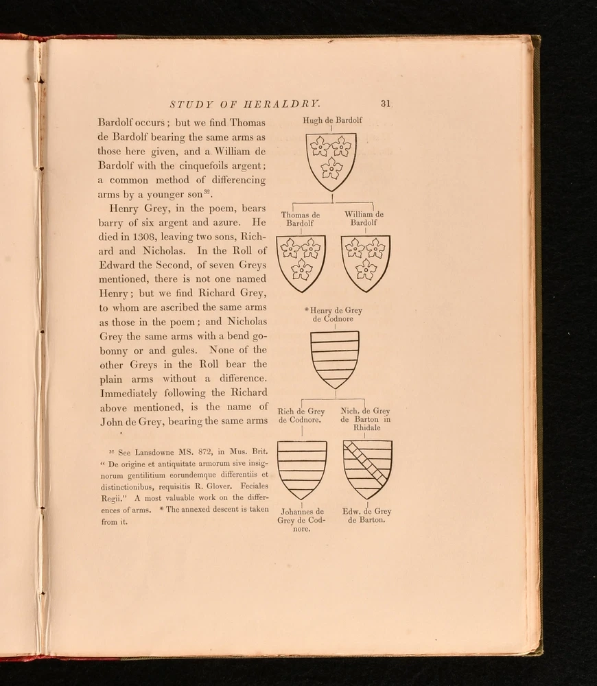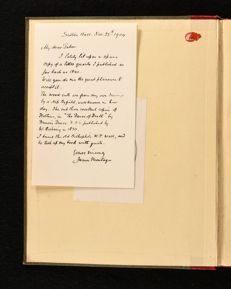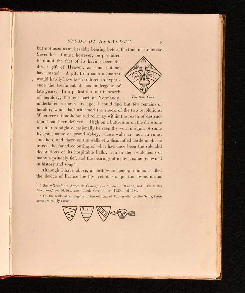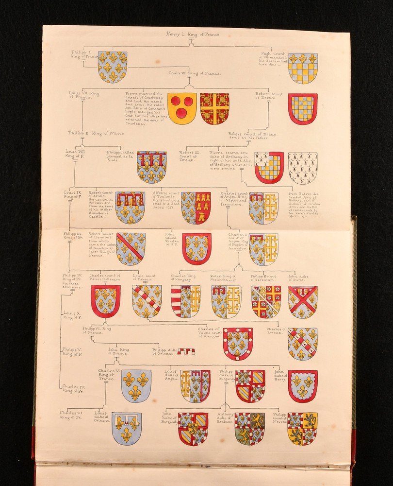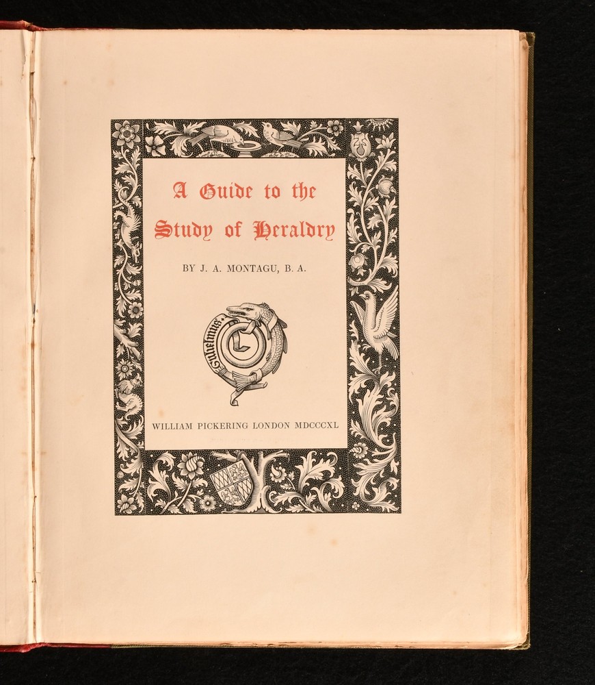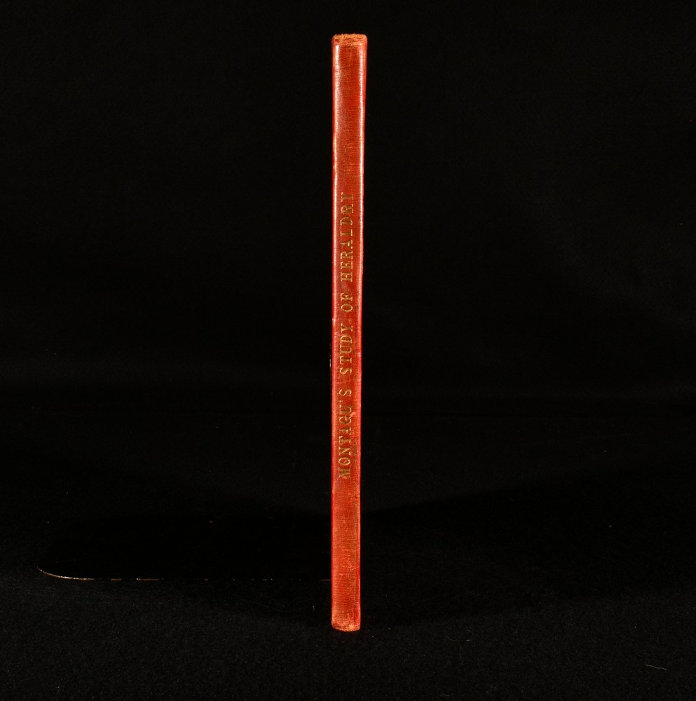 Click here to see our other books! A Guide to the Study of Heraldry J A Montagu 1840 William Pickering : London 11" by 8.5" 75, [1]pp SUMMARY A first edition copy of James Montagu's heraldic reference work. With a folding illustrated frontispiece. Signed, with a letter by the author. Author's Presentation Copy,Colour Plates,First Edition,Folding Plates,Illustrated,Pleasing Copy,Publishers' Original Binding,Signed,Uncommon,With Letter Overall Condition: Very Good This book weighs 0.75 KG when packed UK Postage: £ 3.99 US Postage: £ 19.99 EU Postage : £ 15.99 European Postage: £ 16.99 Asia Postage: £ 21.99 Worldwide Postage: £ 25.99 DESCRIPTION With an inscription from the author, tipped in to the front pastedown, dated 1904 and addressed from Sutton Hall. His presentation copy is addressed to his friend Jacob Tabor and states 'I lately lit upon a spare copy of a little quarto I published as far back as 1840. Will you do me the great pleasure to accept it'. The wood cuts are from my own drawings by a Miss Byfield, well known in her day. She cut those excellent copies of Holbein, in 'The Dance of Death' by Francis Douce published by W Pickering in 1833'. I knew the old Bibliophile W.P well, and he took up my book with gusto.' The first and only edition of this work. With the bookplate of the recipient, Jacob Tabor. Illustrated, with a colour frontispiece, and numerous in-text illustrations by the author. CONDITION In the publisher's quarter straight grained morocco binding, with cloth covered boards. Externally, very smart, with light shelfwear to the head and tail of spine. Fading to the spine, and just the odd marks to the boards. Remnants of a prior owner's wax seal to the pastedowns. Prior owner's bookplate to the front pastedown. Letter from the author to the front pastedown. Internally, firmly bound. Pages are bright, with just the odd spot to pages. Overall Condition: Very Good GLOSSARY OF TERMS Overall Condition (Dustwrapper condition rating is shown after that for the book itself, where a dustwrapper is present) Fine - Very well preserved copy showing very little wear Very Good Indeed - Only one or two minor faults, really a very attractive copy Very Good - Quite a wide term meaning no major faults but probably several smaller ones often expected given the age of the book, but still a respectable copy Good - Meaning not very good. Some more serious faults as will be described in the condition report under 'condition' Good Only - Meaning one or more faults that could really do with repair Fair - As with good only above but with other faults leaving a compromised copy even after repair Poor - Really bad and possibly seriously incomplete. We only sell books in this condition where their rarity or value makes them attractive none the less. Major defects will be described. GUARANTEE We offer a full money back guarantee on our descriptions. Please ask for details and conditions. We prefer PAYPAL. If you pay via PAYPAL we will post the item off the same or the next working day with the postage you have selected. Please note we cannot accept USD cheques