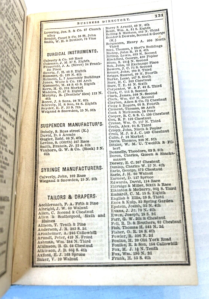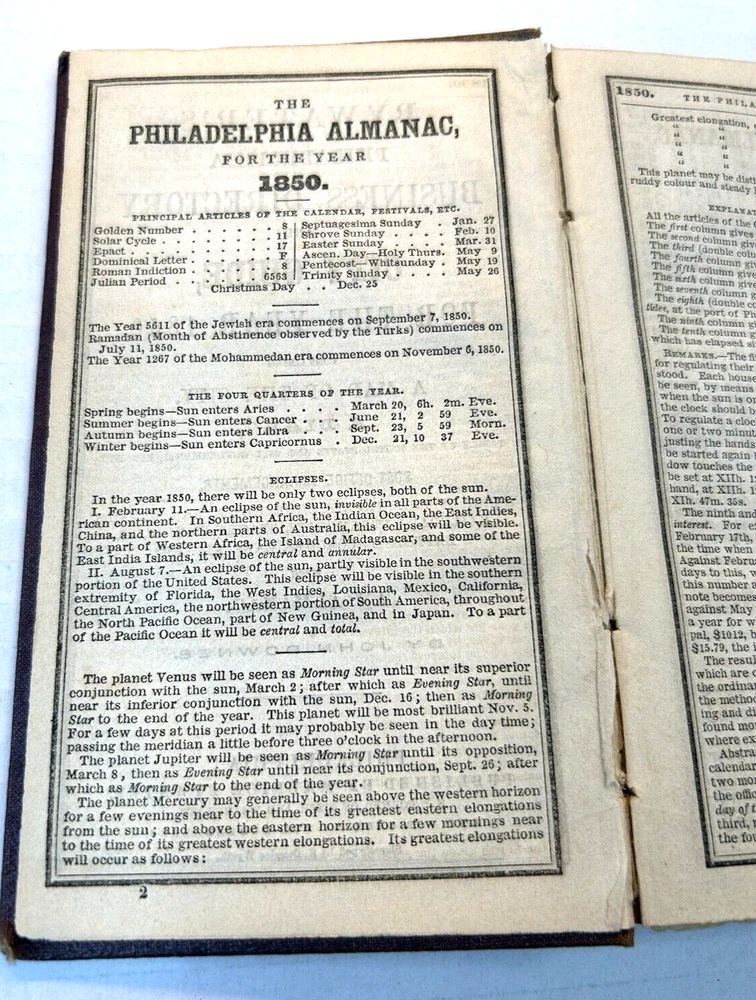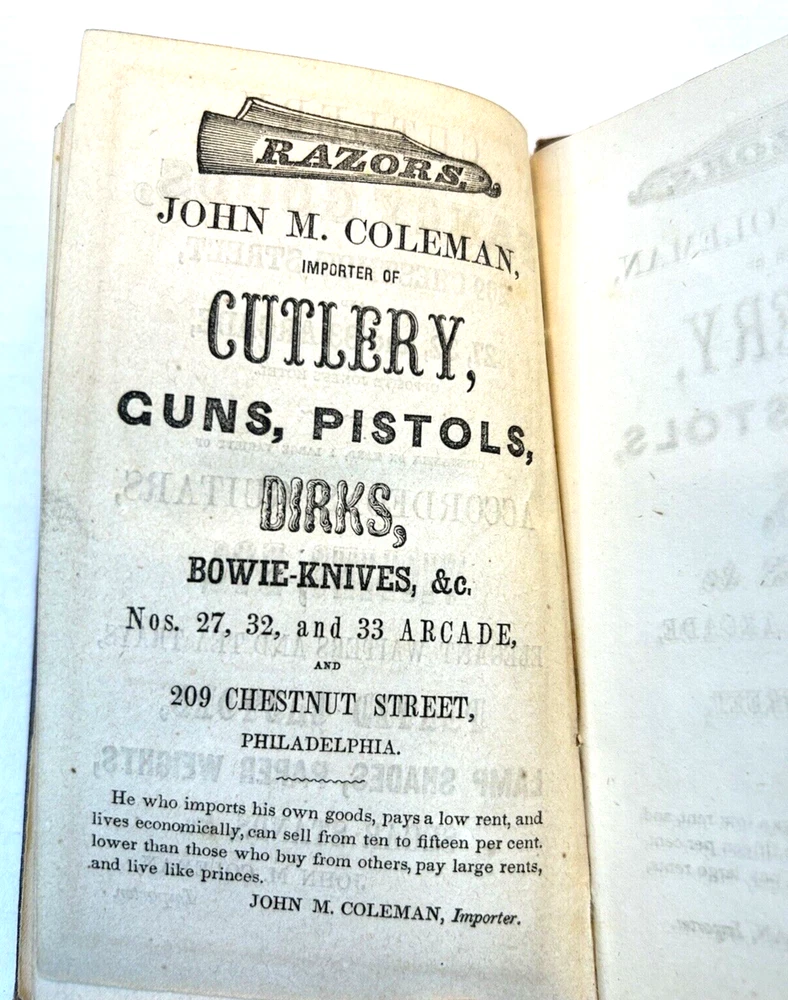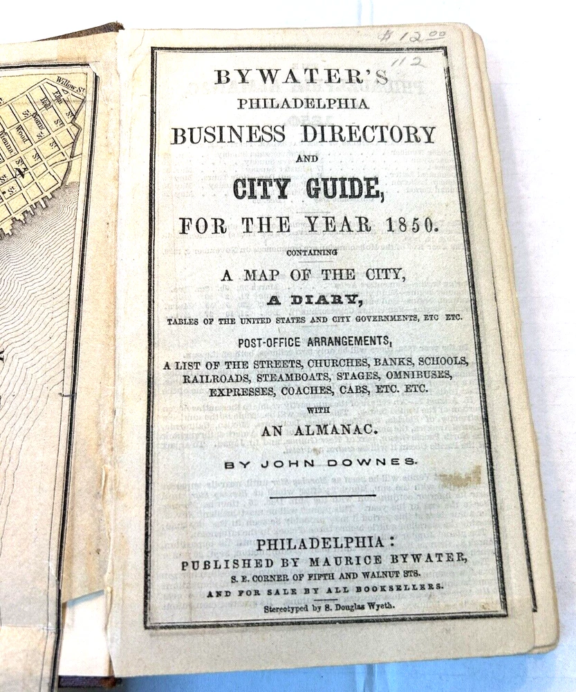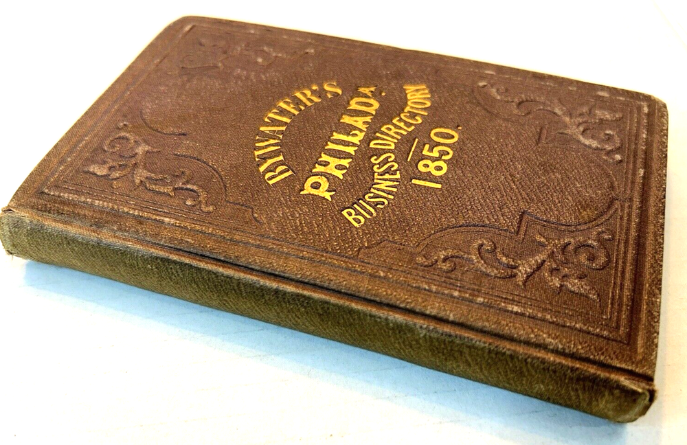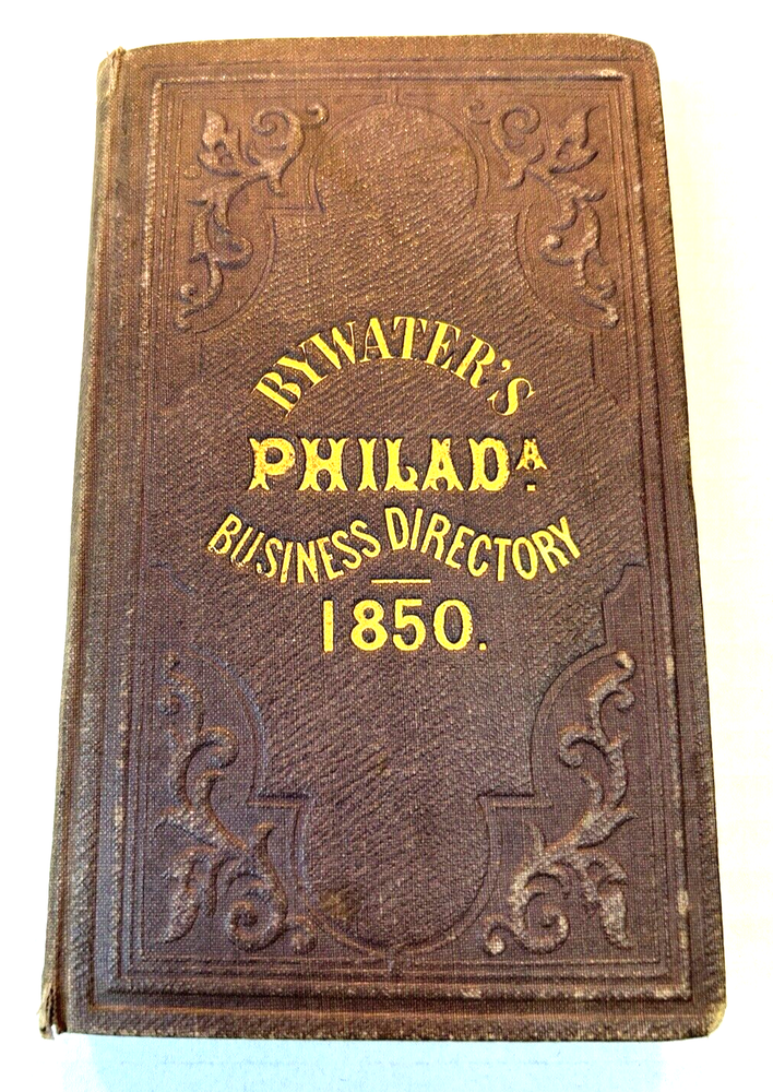 BYWATER'S Philadelphia Business Directory AND City Guide For The Year 1850 Containing a Map of the City. A Diary . With Almanac. Philadelphia: Maurice Bywater, [1850]. 246, folding map, illus., advertisements. In orig. embossed cloth. Map has closed tears at the folds, but is complete. A very good copy. A rare directory. Philadelphia Published by Maurice Bywater 1850 5.5'' by 3.5" 246 Pages I have been an eBay seller since 2000, and a collector/treasure hunter since I was in elementary school. I love being able to rescue items that were destined for the trash heap and find new homes for them with people who will appreciate them. All reasonable offers will be considered! I do my best to describe my items as accurately as possible, but may miss details or make mistakes from time to time. However, if you are unsatisfied for any reason, please reach out to me so I can work to make things right. Thank you for your interest! 100% satisfaction guarantee or receive a quick refund 20% of the sale of this item will be donated to a youth-serving organization EB 92.7