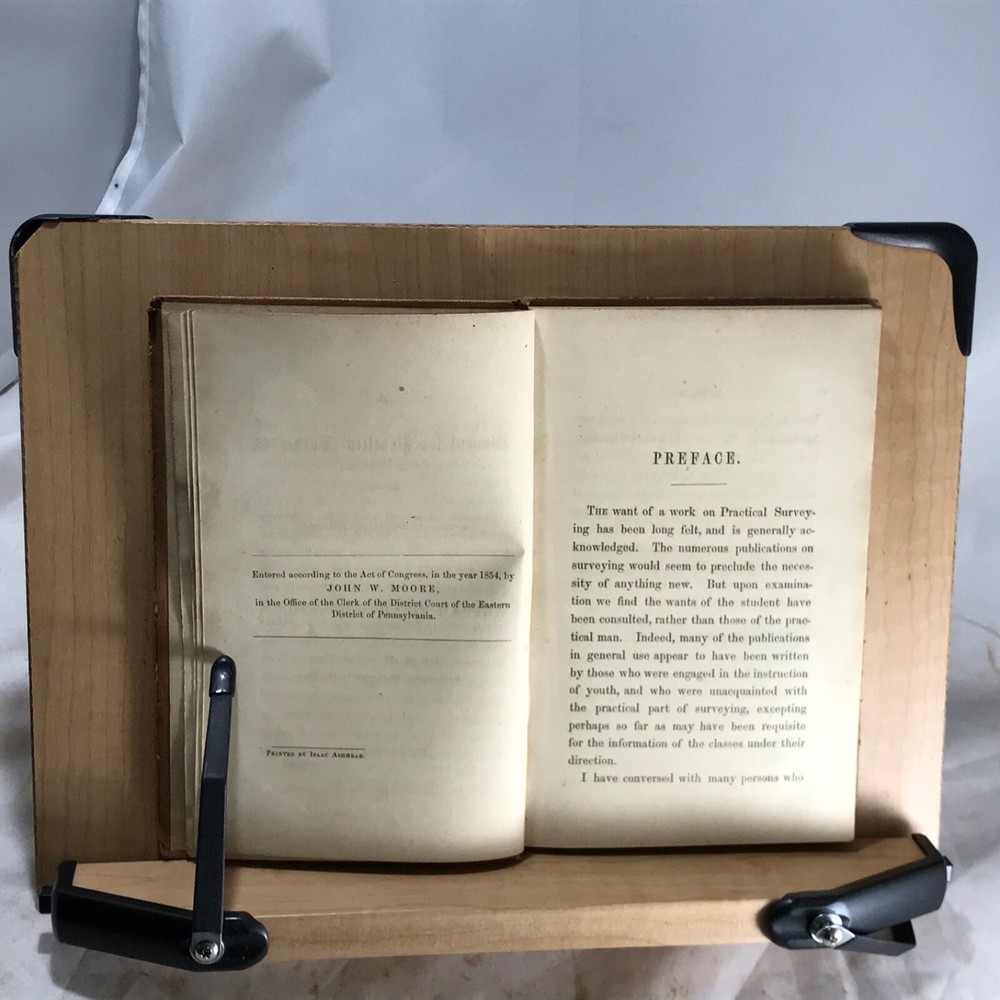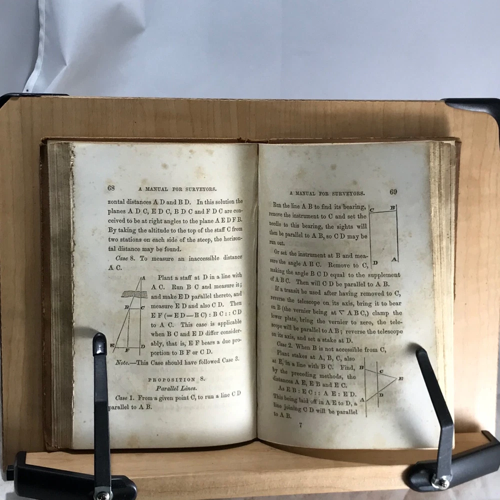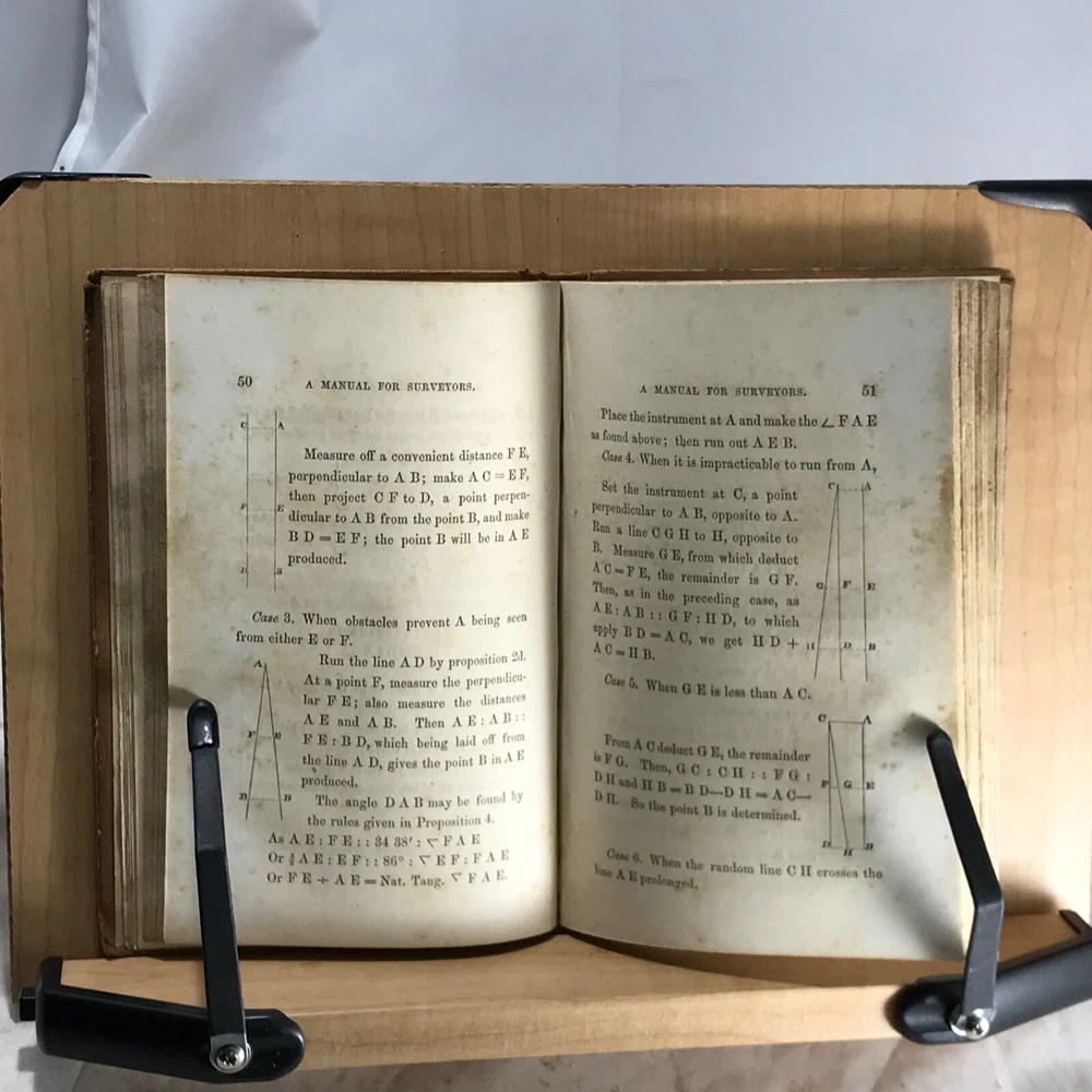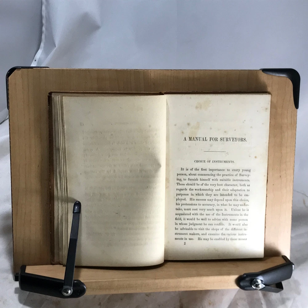 This vintage 1854 surveying manual is a fantastic piece of history! The full leather binding has character with its scuffs and loose hinges, but the pages are clean and unmarked—perfectly readable. Love the original owner’s bookplate and signature, adding to its charm. A must-have for surveyors or history buffs—great condition for its age! Photos show details well.