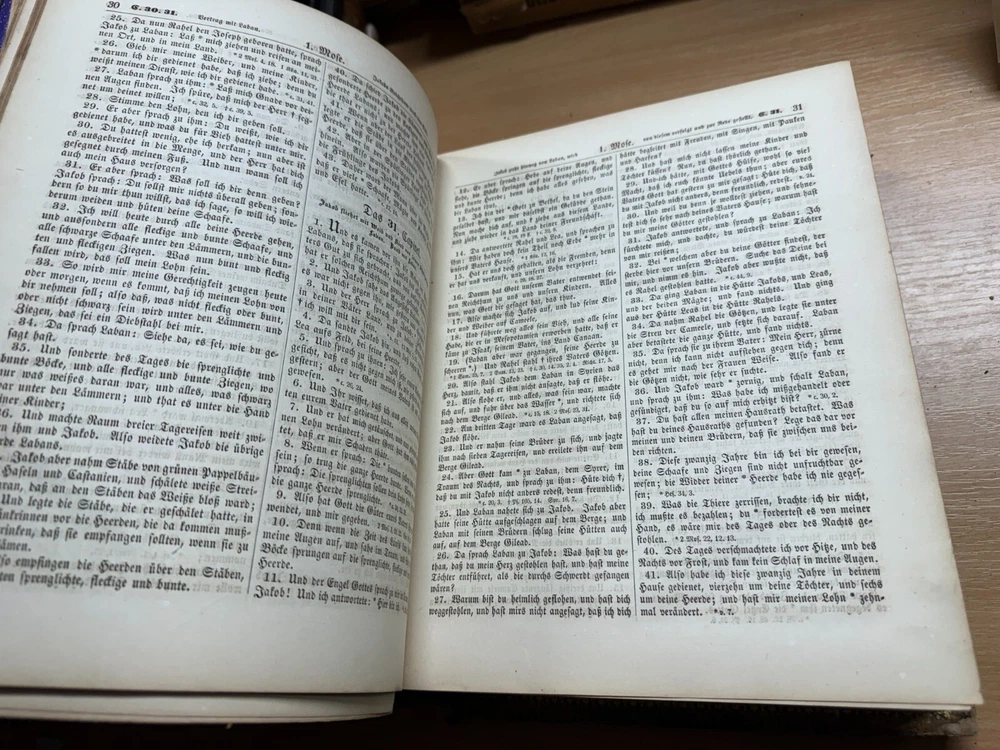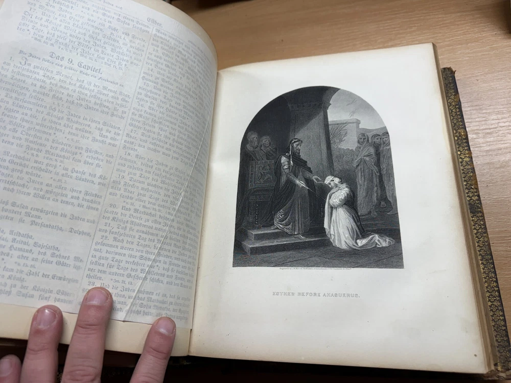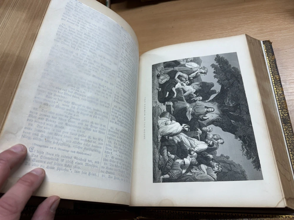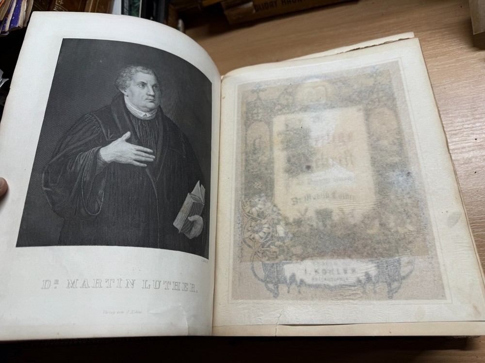 This antique Martin Luther Bible is absolutely stunning! The thick, heavy leather-bound book feels incredibly solid and well-crafted. The German text inside is beautifully preserved, and the ornate detailing on the cover gives it a truly historic feel. It's amazing to hold a piece of religious history like this—the weight alone makes it feel special. The seller shipped it quickly, and the photos accurately showed the exact item I received. A perfect addition for collectors or anyone who appreciates rare religious texts!