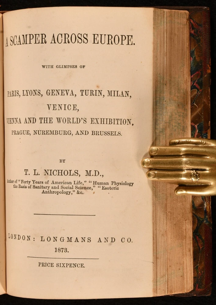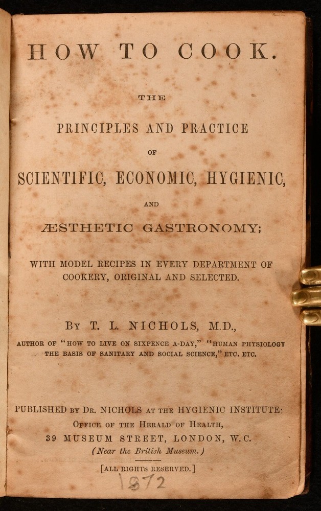 Click here to see our other books! How to Cook, A Woman's Work, Scamper Across Europe, History of the Abbey T. L. Nichols; Mary S. G. Nichols 1872-1874 Dr. Nichols; Longmans, Green, and Co.; Duncan Anderson : London and Edinburgh 6.5" by 4" 136, [2], 154, 64, 94pp SUMMARY Four interesting and uncommon works by Nichols bound together as one in leather binding. Early Edition,Leather Binding,Uncommon Overall Condition: Good This book weighs 0.5 KG when packed UK Postage: £ 3.99 US Postage: £ 15.99 EU Postage : £ 13.99 European Postage: £ 14.99 Asia Postage: £ 18.99 Worldwide Postage: £ 19.99 DESCRIPTION Four works bound as one in half morocco binding from the 1870s. Includes the following works. 'How to Cook. The Principles and Practice of Scientific, Economic, Hygienic, and Aesthetic Gastronomy' by T. L. Nichols (1872). 'A Woman's Work in Water Cure and Sanitary Education' by Mary S. G. Nichols (1874). 'Scamper Across Europe' by T. L. Nichols (1873). 'Historical Guide to The Palace and Abbey of Holyrood', which is undated and has no authorship, assumed to also be T. L Nichols. An interesting collection of works of cookery, medicine, history and travel. With 'Dr Nichols works' to the spine. CONDITION In half morocco binding and marbled boards. Externally, sound. There is some rubbing to the leather on the spine. There is some bumping to the head and tail of the spine and to the extremities. Internally, firmly bound. The pages are bright and clean with some spotting throughout. Overall Condition: Good GLOSSARY OF TERMS Overall Condition (Dustwrapper condition rating is shown after that for the book itself, where a dustwrapper is present) Fine - Very well preserved copy showing very little wear Very Good Indeed - Only one or two minor faults, really a very attractive copy Very Good - Quite a wide term meaning no major faults but probably several smaller ones often expected given the age of the book, but still a respectable copy Good - Meaning not very good. Some more serious faults as will be described in the condition report under 'condition' Good Only - Meaning one or more faults that could really do with repair Fair - As with good only above but with other faults leaving a compromised copy even after repair Poor - Really bad and possibly seriously incomplete. We only sell books in this condition where their rarity or value makes them attractive none the less. Major defects will be described. GUARANTEE We offer a full money back guarantee on our descriptions. Please ask for details and conditions. We prefer PAYPAL. If you pay via PAYPAL we will post the item off the same or the next working day with the postage you have selected. Please note we cannot accept USD cheques