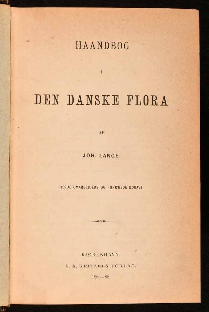 Click here to see our other books! Haandbog den Danske Jon Lange 1886-88 C. A. Reitzels : Copenhagen 8" by 5" clxxxviii, 925pp SUMMARY A fourth revised edition of this extensive guide to Danish flora. Leather Binding Overall Condition: Very Good This book weighs 2 KG when packed UK Postage: £ 3.99 US Postage: £ 29.99 EU Postage : £ 21.99 European Postage: £ 23.99 Asia Postage: £ 37.99 Worldwide Postage: £ 38.99 DESCRIPTION A fourth revised edition copy. This work is a handbook to Danish flora. With details of the different native plants in Denmark. Written by Joh. Lange. In the original Danish. CONDITION In quarter leather with marbled boards. Externally, very smart with some rubbing to the joints and extremities. Some light marks to the boards and spine. Internally, firmly bound with lightly age toned pages which remain clean. Overall Condition: Very Good GLOSSARY OF TERMS Overall Condition (Dustwrapper condition rating is shown after that for the book itself, where a dustwrapper is present) Fine - Very well preserved copy showing very little wear Very Good Indeed - Only one or two minor faults, really a very attractive copy Very Good - Quite a wide term meaning no major faults but probably several smaller ones often expected given the age of the book, but still a respectable copy Good - Meaning not very good. Some more serious faults as will be described in the condition report under 'condition' Good Only - Meaning one or more faults that could really do with repair Fair - As with good only above but with other faults leaving a compromised copy even after repair Poor - Really bad and possibly seriously incomplete. We only sell books in this condition where their rarity or value makes them attractive none the less. Major defects will be described. GUARANTEE We offer a full money back guarantee on our descriptions. Please ask for details and conditions. We prefer PAYPAL. If you pay via PAYPAL we will post the item off the same or the next working day with the postage you have selected. Please note we cannot accept USD cheques