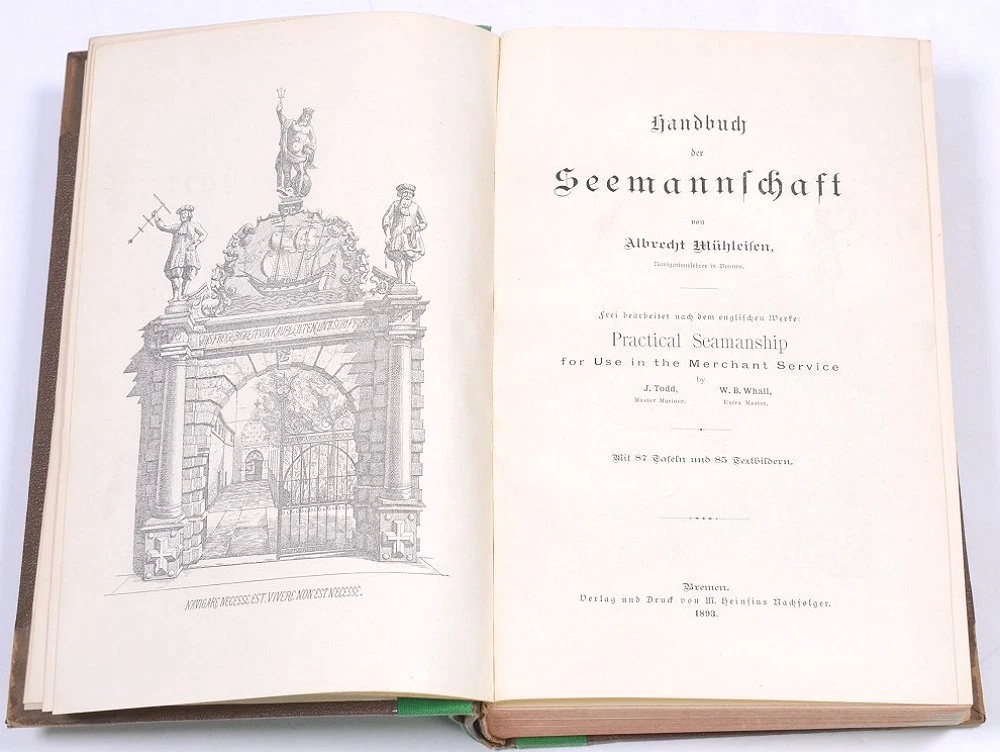 We are offering this 1893 Hard Cover Leather Bound HANDBOOK OF SEAMANSHIP by J. Todd (Master Mariner) & W. B. Whall (Extra Master). Practical Seamanship for Use in the Merchant Service. There are a number of foldout pages in this book Condition: This handbook is in good condition, there is signs of wear on the outside cover with a reinforcement of the spine. The first page has stains, but the remaining pages of the handbook are in good condition with no rips, stains or creases. Please Note: We are selling many Antiquarian Books that we will be presenting from an Estate Sale of a Lifetime Collector comprised of Thousands of Books. There are many scarce and rare books, including 1st Editions, Autographed and Multi-Volume Sets. We are going to do our best to portray the condition of these collectible books and point out the worst of the flaws. We will provide as many photographs as possible for your review, and welcome any questions that you many have. We use an expert packaging company that will double box your items for safe arrival to your destination.