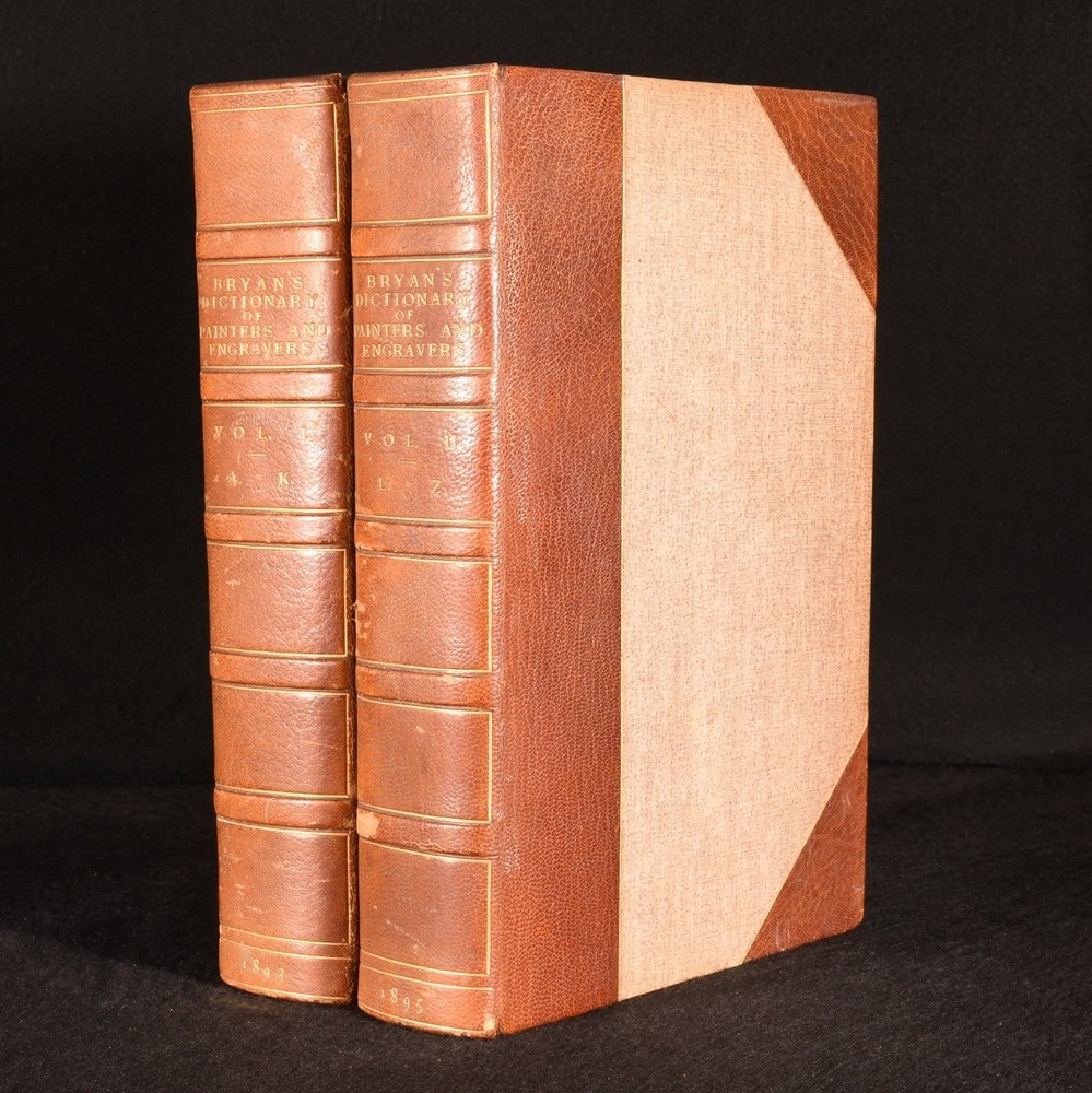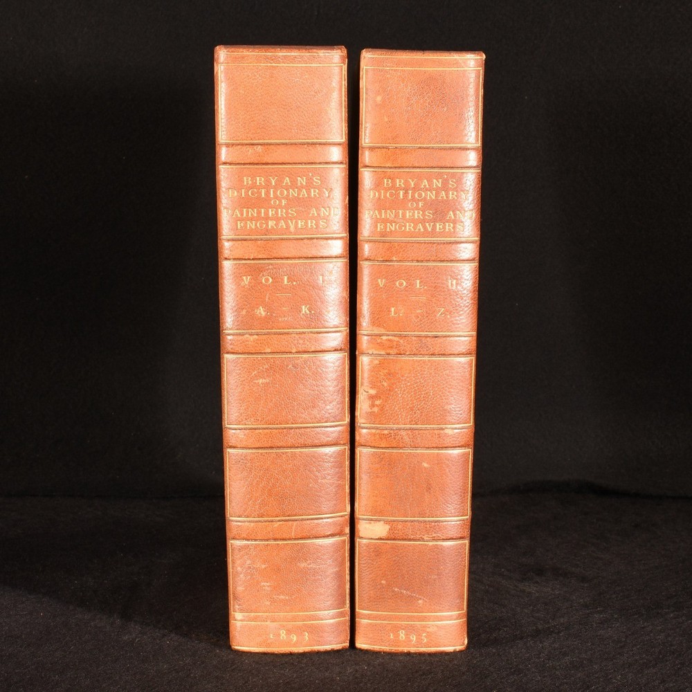 Click here to see our other books! Dictionary of Painters and Engravers, Biographical and Critical Michael Bryan; Robert Edmund Graves; Walter Armstrong 1893-1895 George Bell and Sons : London 10.5" by 7.5" vii, 755; 779pp. SUMMARY An attractive two volume set of this comprehensive art reference work from English art historian Michael Bryan. Leather Binding,Original Binding,Publishers' Original Binding Overall Condition: Very Good Indeed This book weighs 2 KG when packed UK Postage: £ 3.99 US Postage: £ 29.99 EU Postage : £ 21.99 European Postage: £ 23.99 Asia Postage: £ 37.99 Worldwide Postage: £ 38.99 DESCRIPTION Complete in two volumes. The first reprint of the new edition, revised and enlarged. Volume one covers artists from A to K, and volume two covers artists from L to Z. With five pages of the monograms of artists and engravers to the rear of volume two. A detailed and comprehensive reference work for painters and engravers through history that would become a standard reference guide from its initial publication in 1813-1816 until its final printing in 1920. With reference to each individual artist's work, education, biographical history, and critical reception. Written by Michael Bryan, an English art historian, art dealer and connoisseur who owned a fashionable art gallery in Savile Row, London. Edited by Robert Edmund Graves, an English librarian and Sir Walter Armstrong, a British art historian and author. CONDITION Bound in half crushed morocco with cloth covered boards. Externally, smart with light rubbing to the extremities and fading to the spine. The odd small mark with minor loss to the spines. Internally, firmly bound. Pages are very bright with light scattered spotting. Further spotting to the first and last few pages with minor age toning to the extremities. Previous owners' bookplate to the front pastedown. Overall Condition: Very Good Indeed GLOSSARY OF TERMS Overall Condition (Dustwrapper condition rating is shown after that for the book itself, where a dustwrapper is present) Fine - Very well preserved copy showing very little wear Very Good Indeed - Only one or two minor faults, really a very attractive copy Very Good - Quite a wide term meaning no major faults but probably several smaller ones often expected given the age of the book, but still a respectable copy Good - Meaning not very good. Some more serious faults as will be described in the condition report under 'condition' Good Only - Meaning one or more faults that could really do with repair Fair - As with good only above but with other faults leaving a compromised copy even after repair Poor - Really bad and possibly seriously incomplete. We only sell books in this condition where their rarity or value makes them attractive none the less. Major defects will be described. GUARANTEE We offer a full money back guarantee on our descriptions. Please ask for details and conditions. We prefer PAYPAL. If you pay via PAYPAL we will post the item off the same or the next working day with the postage you have selected. Please note we cannot accept USD cheques