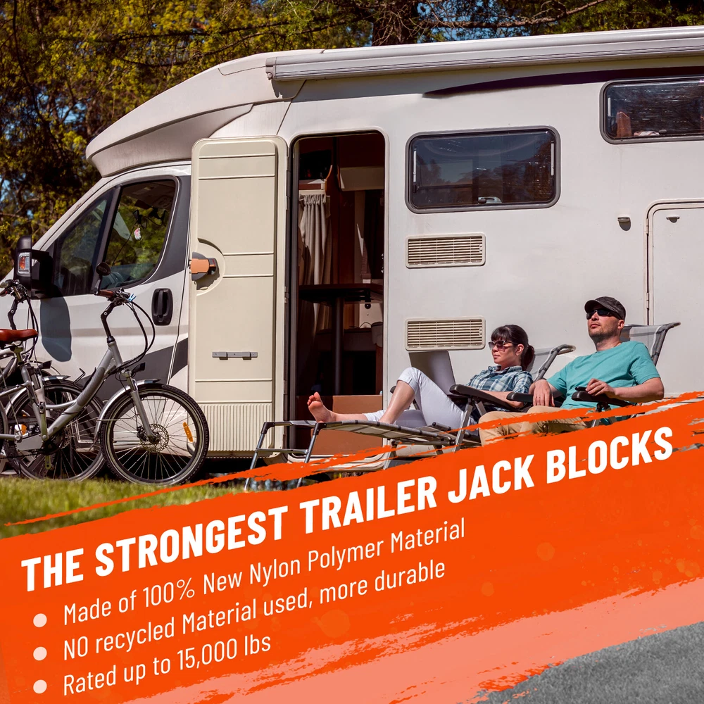 These RV stabilizer blocks are a game-changer! Super sturdy and can handle up to 15,000 lbs each—no wobbling or swaying when parked. The heavy-duty nylon polymer construction feels solid, and stacking them gives extra height if needed. Perfect fit for most jacks, and the wide base keeps everything stable. Super easy to use and store. Highly recommend for any camper or trailer owner!