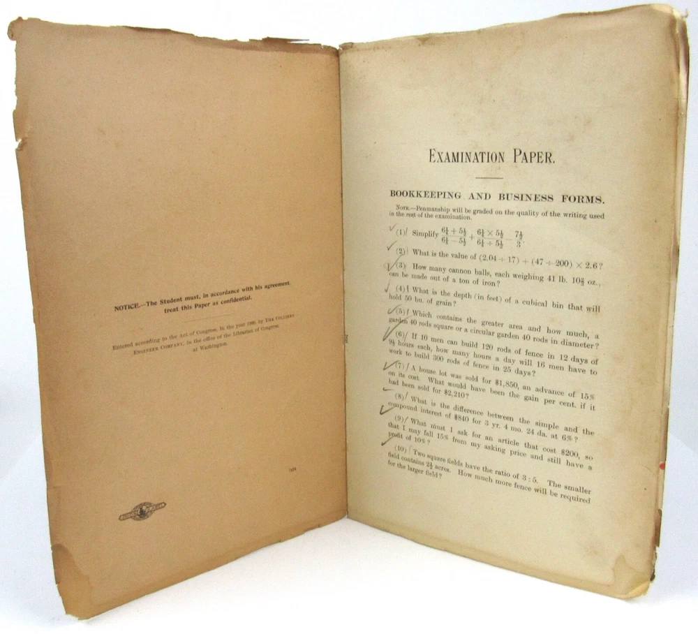This rare 1901 arithmetic and bookkeeping textbook from Scranton PA is a fascinating piece of educational history! The condition is very good with only light staining and some pencil markings, making it a great collectible. The included exam questions add extra value for antique book lovers. Fast shipping and careful packaging ensure it arrives safely. A must-have for vintage schoolbook collectors!