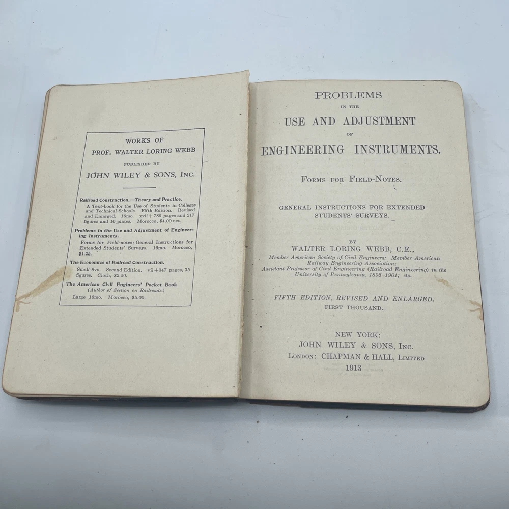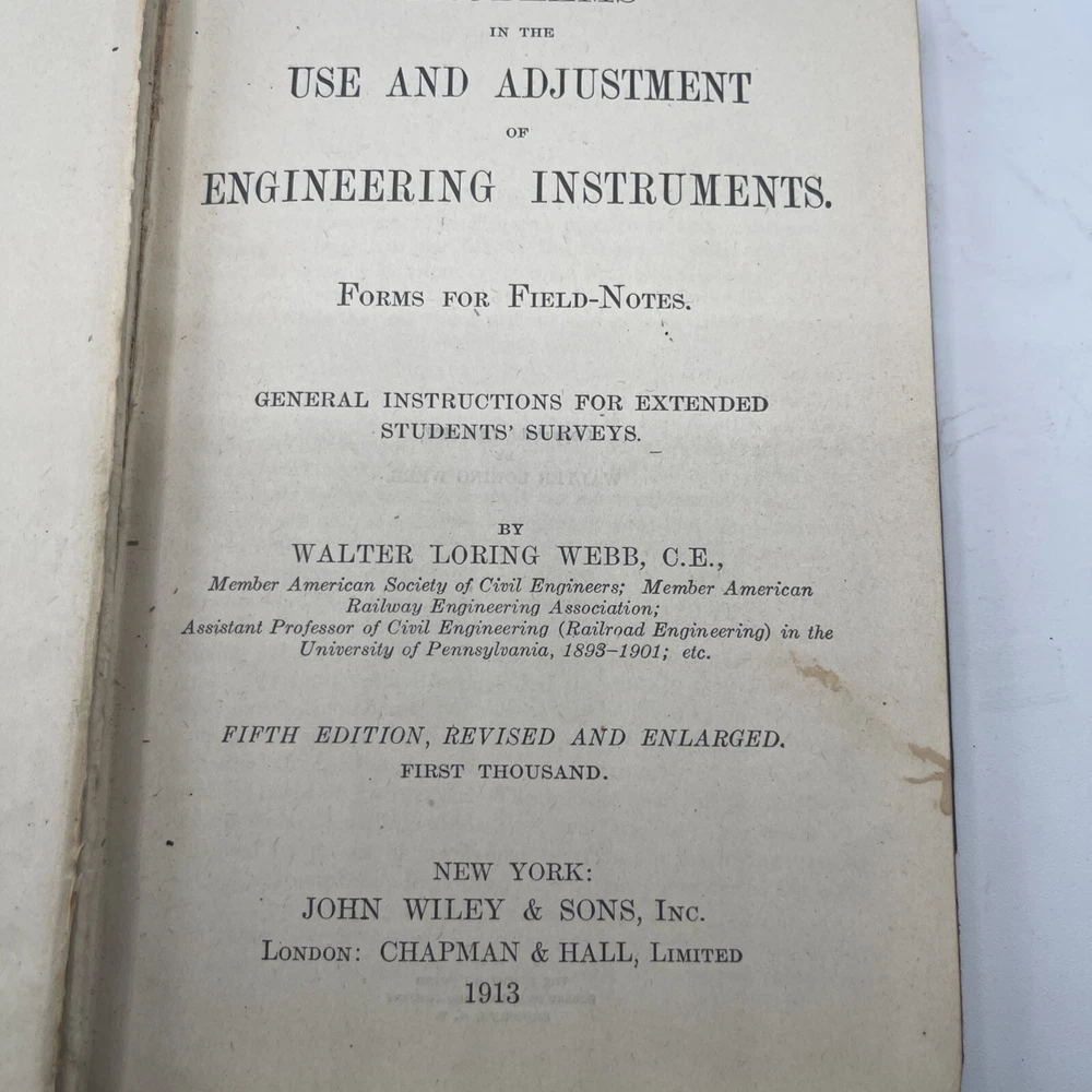 This rare 1913 textbook titled "Problems in the Use and Adjustment of Engineering Instruments" by Walter Loring Webb is a gem for collectors and enthusiasts of technology, engineering, and science. The book is a 5th edition, first thousand printing, and is bound in high-quality faux leather. It has 162 pages filled with valuable insights and practical tips for the use and adjustment of engineering instruments. The book is in excellent shape, with no signs of wear and tear, and is a great addition to any collection. Don't miss the chance to own a piece of history with this rare gem.