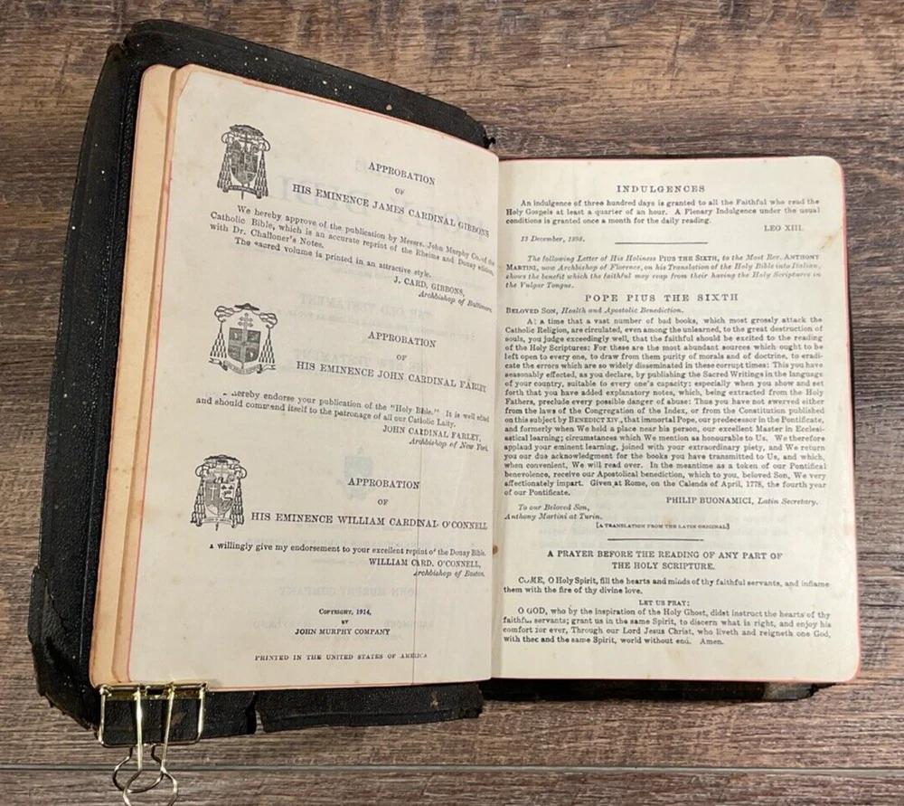 This antique Douay Version Bible is a true treasure! The craftsmanship is stunningβeven with its aged leather cover showing slight wear, the binding remains solid. Published by John Murphy Company, its historical value is unmatched, making it perfect for collectors or as a heartfelt gift. The pages are well-preserved, and the timeless design adds charm. A rare find thatβs both beautiful and meaningfulβany Bible enthusiast would cherish this piece of history. βοΈπβ€οΈ