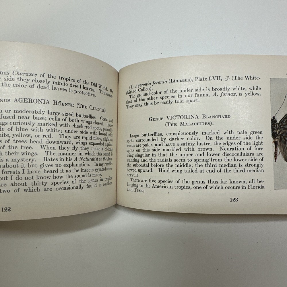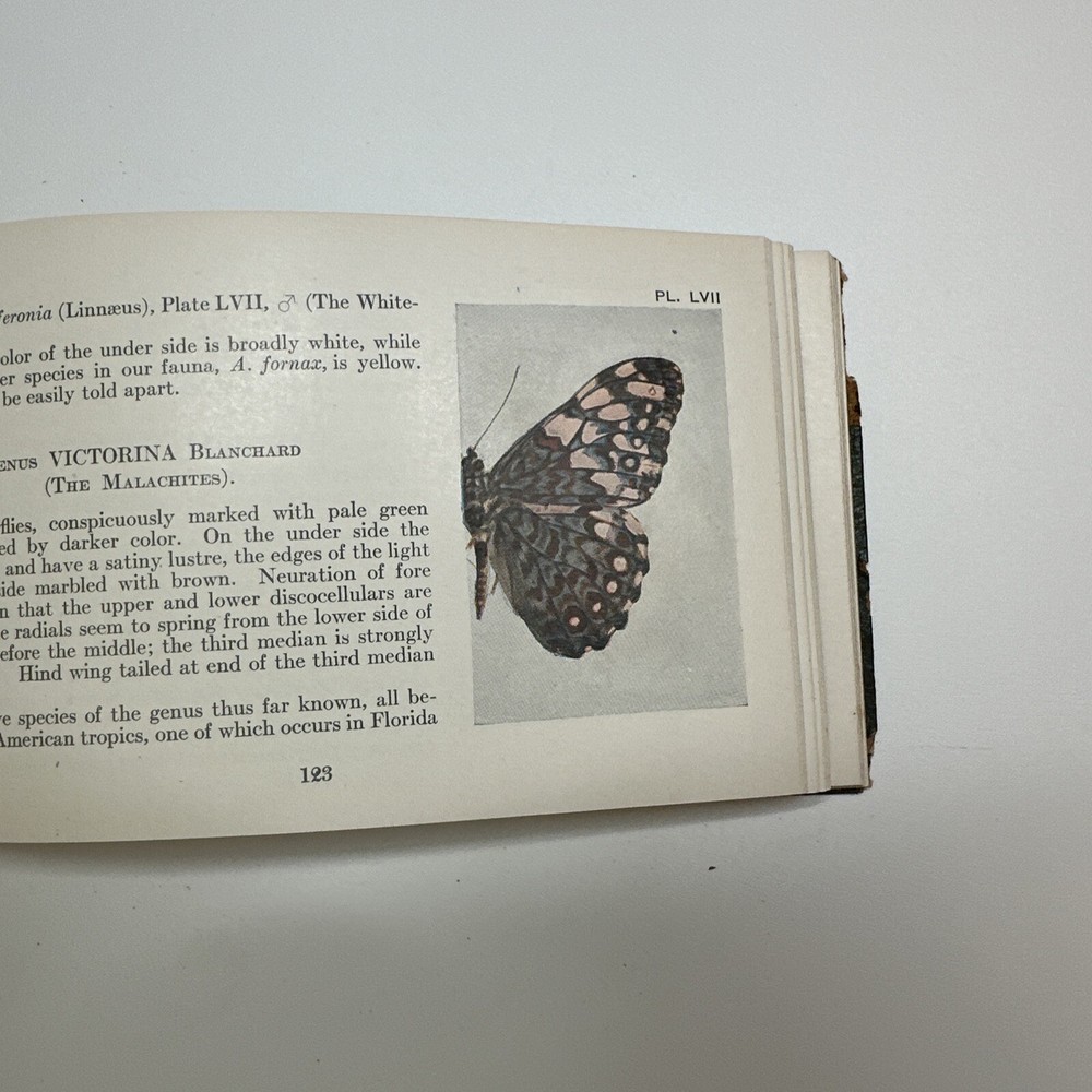 This vintage butterfly guide is a gem for nature lovers! The compact leather-bound book fits easily in a pocket, making it perfect for field trips. Despite some wear on the cover, the pages are clean with beautiful colored illustrations of 255 species. A must-have for butterfly enthusiasts exploring North America's common species. The detailed yet portable design makes identification a breeze!