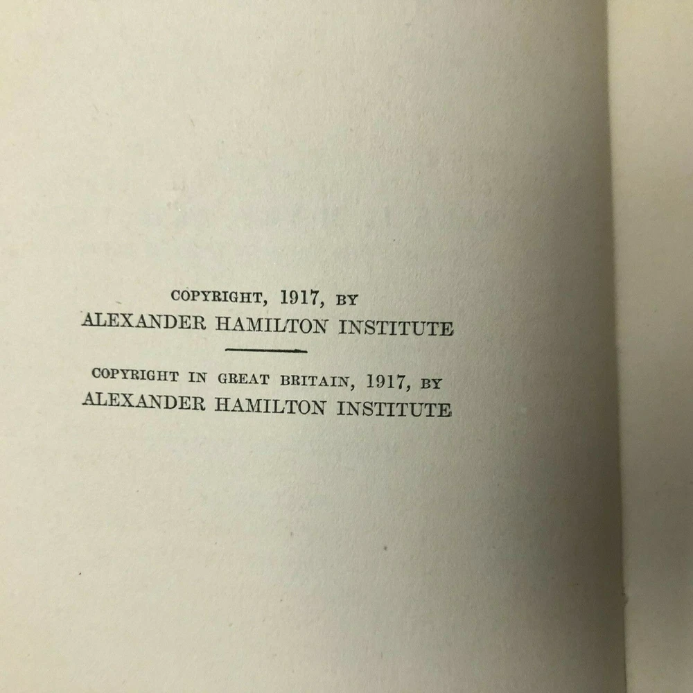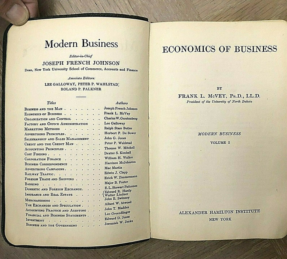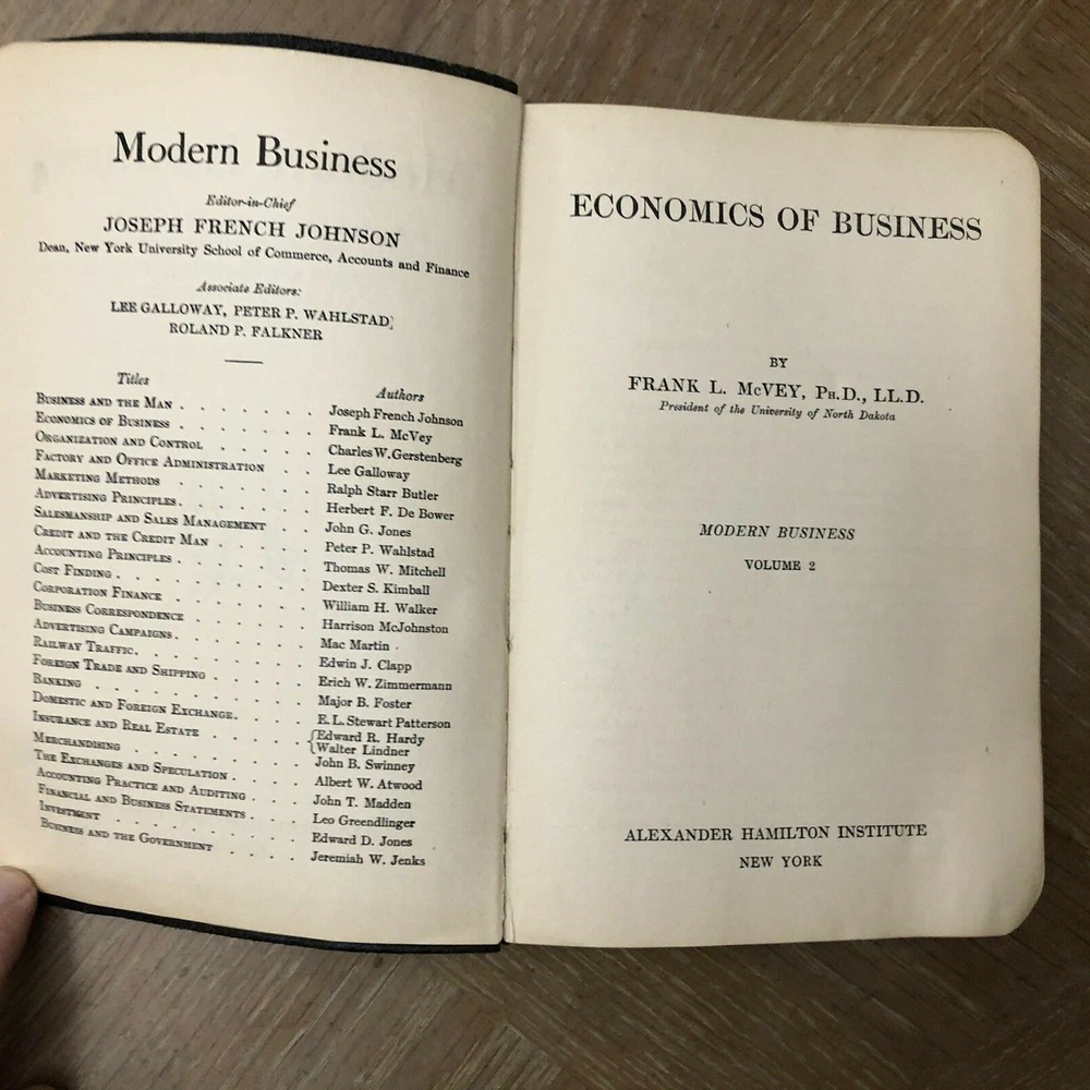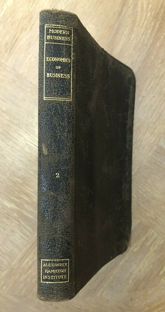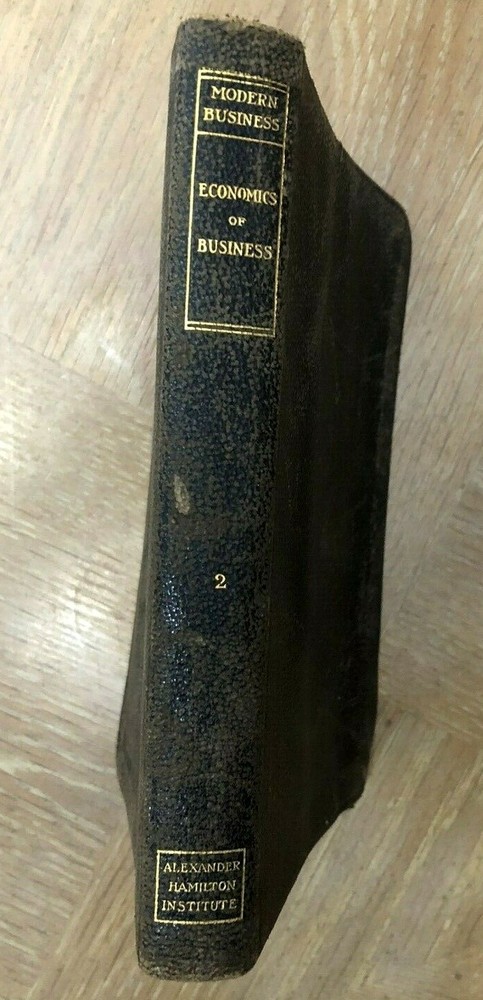 Vintage 1917 Modern Business Book by Alexander Hamilton Institute - Economics Vol. 2 This 'Economics of Business' (Volume 2) leather-bound book is over 100 years old (1917) and has been in my family's library for as long as I can remember (6+ decades). It is part of the Alexander Hamilton Institute of Modern Business literature. The pages and binding are in surprisingly good condition for their age with no rips or tears and all pages seem to be intact. The exterior cover does show its age and the interior back cover has a vertical crease through it with about a 3/4" tear on the back cover paper lining at the bottom, but the rear leather cover is not torn. Please keep in mind that this item has had a previous life, and may tell its story through minor imperfections. Your purchase makes a lasting impact on our planet! We ship Monday - Friday and do not typically ship over the weekend. If you need the item sooner, do not hesitate to contact us and we will do our best to work out a faster shipping date to accommodate you. These items come from a smoke free / pet free home. For the items that are pre-owned, I will do my best to describe the wear. It is likely there is cosmetic wear throughout the item. Or that the item is used, but not abused. There may be a slight color difference in my photos compared to the actual item. Shipping is based on package weight and your zip code. Thank you for purchasing from our store, HeartsandPrayers!