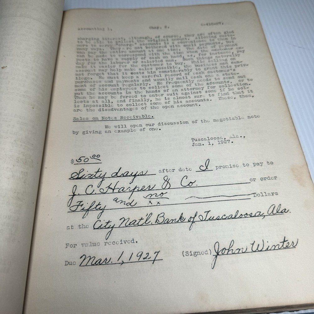 1920’s Accounting Text Book Loose Leaf Leather Tied Cover With Examples In Text. Shipped with USPS Priority Mail.