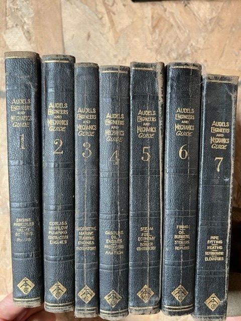 1920s Audels Engineers and Mechanics Guide books #1-7. RARE FIND Questions, Answers & Illustrations. Original copies. Some have soft pencil markings inside.
