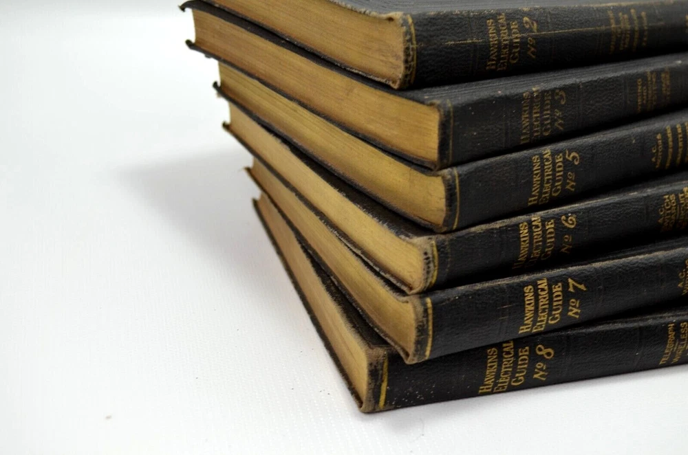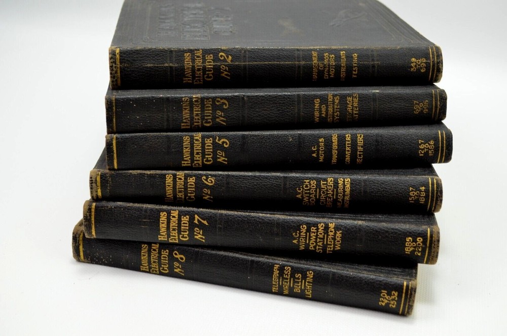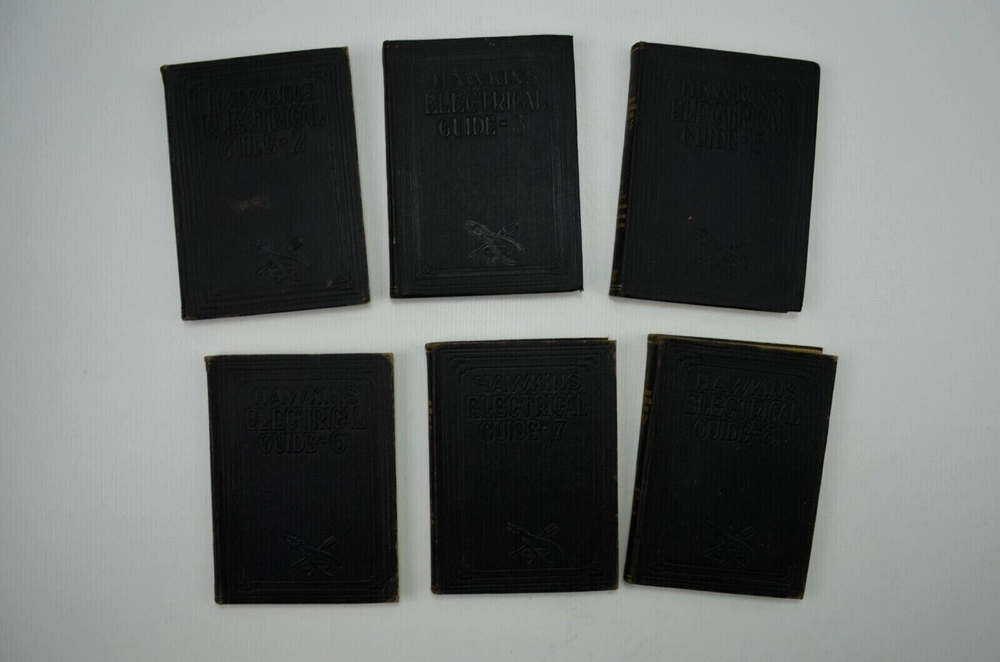 Vintage 1927 Theo Audel & Co Hawkins Electrical Guide, volumes 2, 3, 5, 6, 7, and 8. A progressive course of study for engineers, electrician, students, and those desiring to acquire a working knowledge of electricity and it's applications. Very good condition Thank you for looking We ship Monday through Saturday, except for United States postal holidays. All of our items are securely packed, to ensure the best chance of delivery without damage from the elements, (US Orders only). If your order has not arrived within a week of purchase, please contact us before opening a case and we will do our best to find out what the problem is.