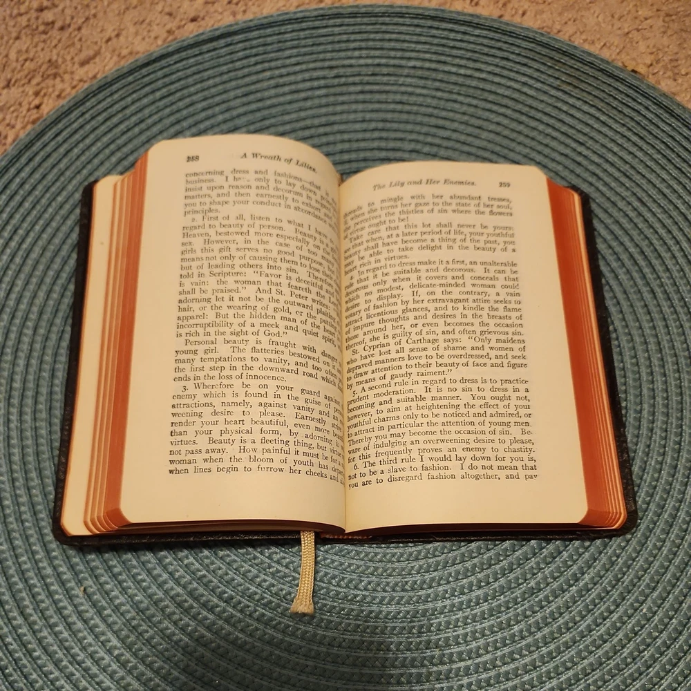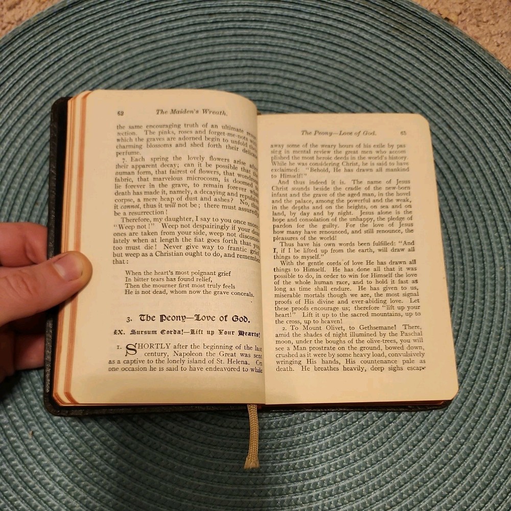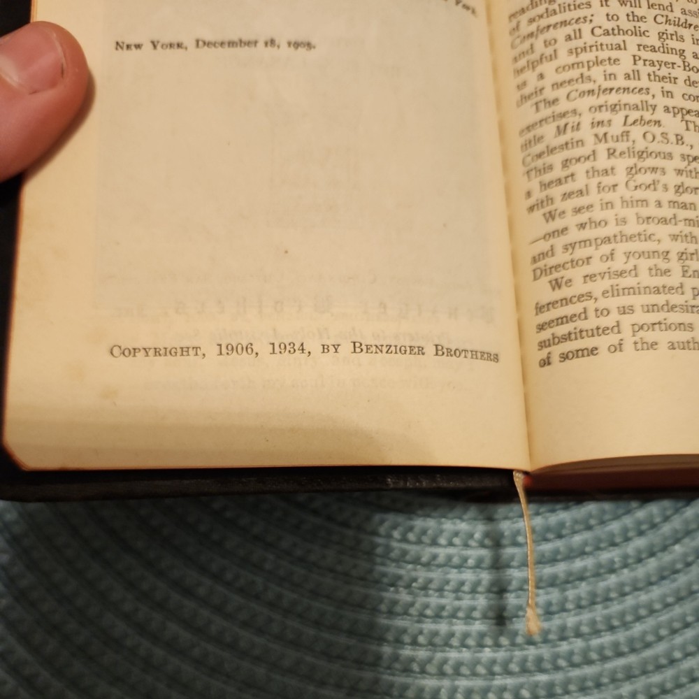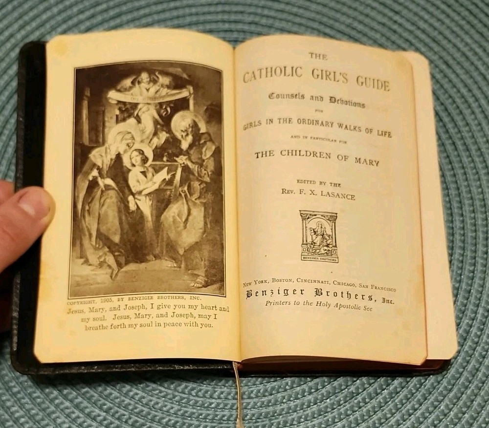 The product is a 1934 edition of "The Catholic Girl's Guide" by Rev. Francis X. Lasance, published by Benzinger Brothers, Inc. in New York. This leather-bound original printing is a valuable collectible item for those interested in religion and spirituality, specifically focusing on Catholicism. Book is in EXCELLENT condition for being 90+ years old! Very few imperfections (stains,folds) of the pages, leather cover has no signs of wear.