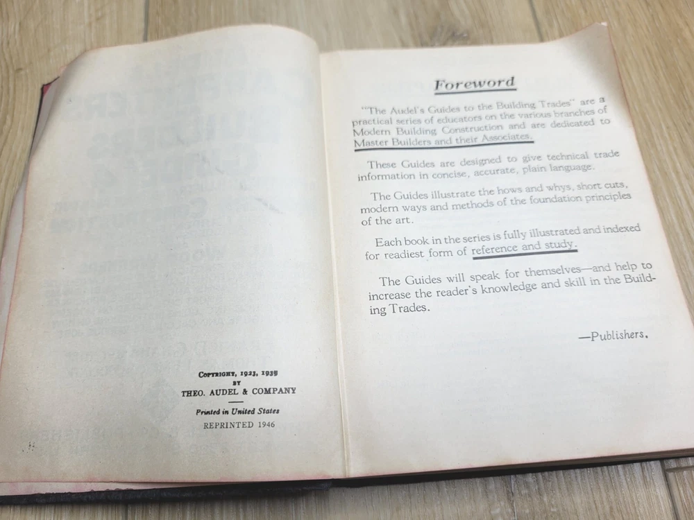 Good pre-owned vintage condition. Loose spine near the front. Watermarks toward the back. PLEASE LOOK AT ALL PHOTOS! 1946 Audels Carpenter & Builders Guide #4 Doors, Windows, Stairs, Millwork, Painting. Please see photos for further description and condition. I do my best to accurately and honestly describe my items, but being human, I may miss something. Please contact me to discuss if you have any concerns before leaving feedback. Thank you for looking!