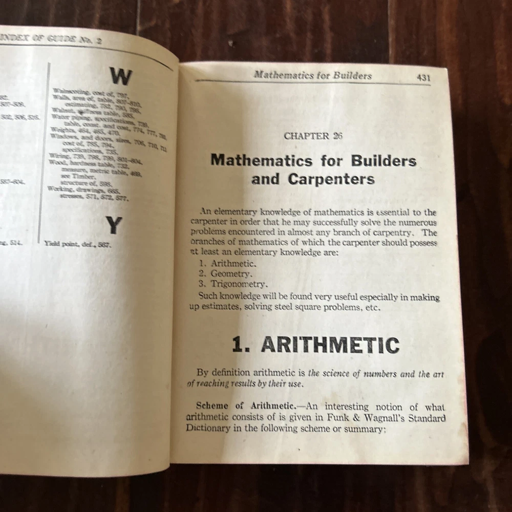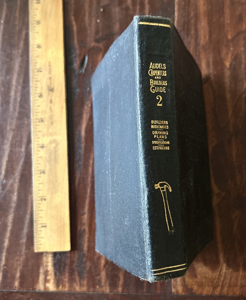 Great vintage 1947 edition of Audels Carpenters and Builders Guide Vol. 2 An Illustrated Trade Assistant. Excellent carpenter information. Good condition with light cover wear.
