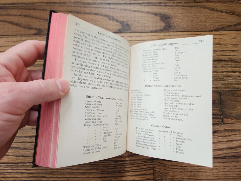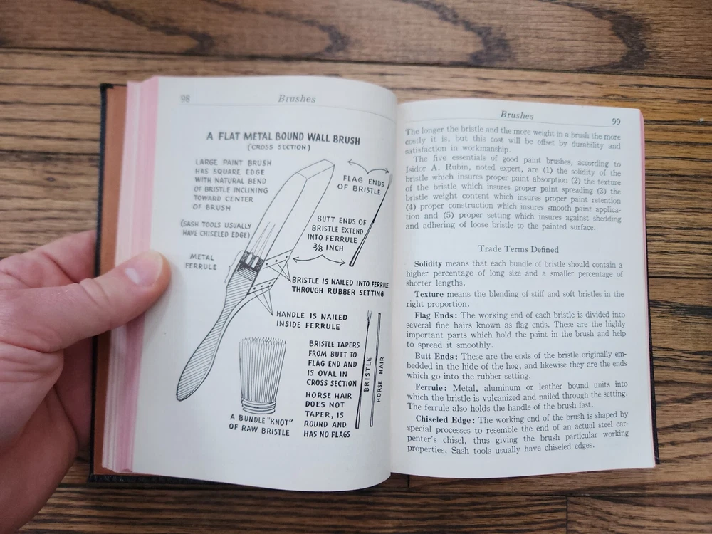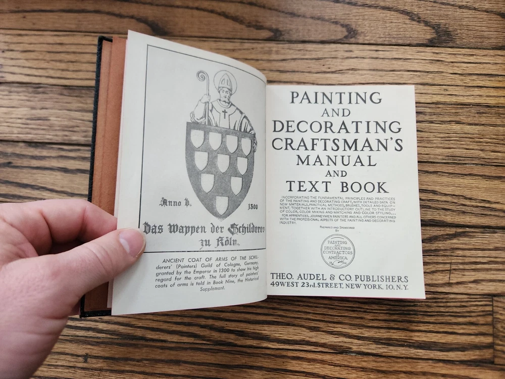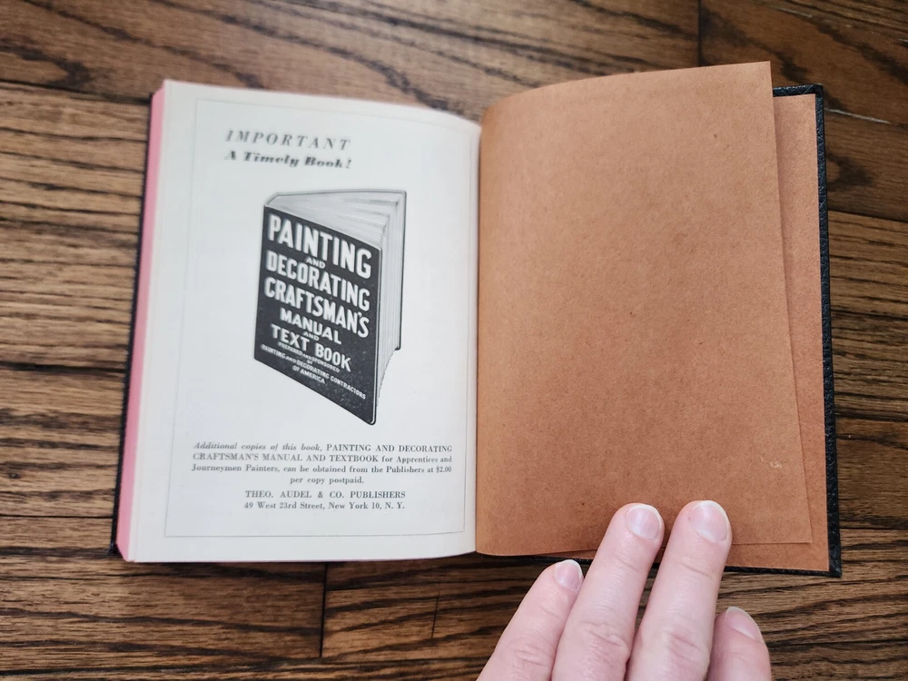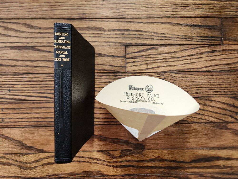1949 Audel Painting And Decorating Craftsman's Manual And Text Book Excellent. From the living estate of a 94 year old family friend whose family had a paint and sign store for multiple generations. This book was from that paint shop. Excellent condition for its age. Minor wear to cover, pages, and spine with no writing. Nice fold out color wheel. I'll also include a vintage folding paper paint filter with the company advertising printed on it from the paint shop. Please see pictures for details. Ships promptly and well packed. Thank you and enjoy!