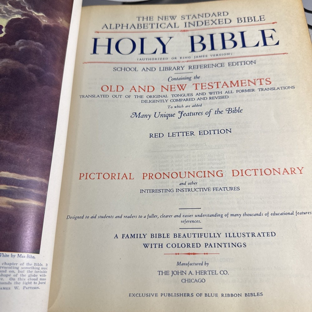 99Dive into the rich tapestry of faith with the 1951 New Standard Reference Holy Bible, a timeless treasure for both collectors and readers alike. This vintage Blue Ribbon Red Letter Edition, published by Blue Ribbon Bibles and bound by Hertel, offers a durable and beautifully crafted hardcover volume that stands as a testament to the spiritual genre of the 1950s. With its faux leather binding and illustrated features, this Bible is designed to be both functional and aesthetically pleasing. The English language text, measuring 11.75 inches in length and 9.5 inches in width, is intended for a broad audience, encompassing ages 9-12, young adults, and adults. It is a notable piece of historical literature that brings the nonfiction narrative of the Holy Bible to life.