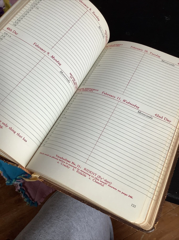 1959 Executive Record and Travel Guide Leather Cover, Gilt. Vintage. Non Smoking. Shipped with USPS Media Mail. No writing in book. The cover has worn edges and inside the front cover, the page has separated. PLEASE SEE PICS FOR FLAWS.