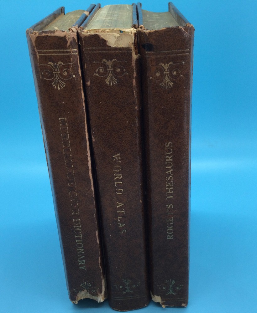 1963 Merriam-Webster Pocket Dictionary Thesaurus Atlas Top Grain Cowhide Books. All three books show wear including wear to the leather and torn bindings. Pages are intact and readable. Over all the books are in poor / fair condition. Our Shipping Guidelines We use USPS (United States Postal Service). We generally ship within 1 business day. Examples: You pay for an item on Tuesday: we will ship it out before the end of the day on Wednesday. If you pay for an item on Friday through Sunday, we have until the end of the day Monday to ship the item (according to eBay guidelines).