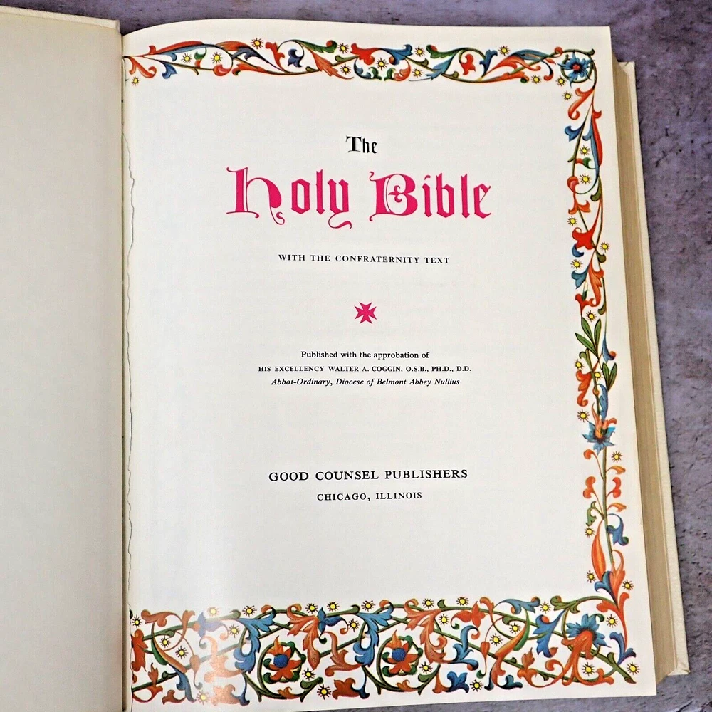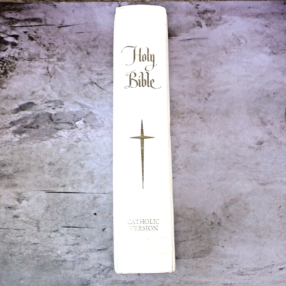 1966 Holy Bible Catholic Edition White Confraternity Text Gold Gilded 11x8" Very good condition, no rips or tears, no writing, pages starting to yellow just a little bit, overall a beautiful white leather Bible • Condition: I n very good condition....A PICTURE IS WORTH A THOUSAND WORDS...please enlarge the pictures and look attentively, these are the best description. Be advised that color varies slightly from one computer monitor to another. The colors may look slightly different. CLICK HERE TO SEE MORE ITEMS! Shipping Note: Buyer is responsible for address entered, we do not make address changes. Returns and Refunds If for any reason you are unhappy with your purchase, you can return the item within 30 days of receipt. Refund will be issued when item is received in same condition in which it was when shipped to you.