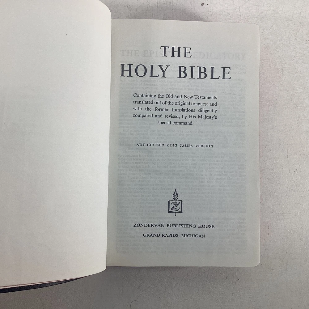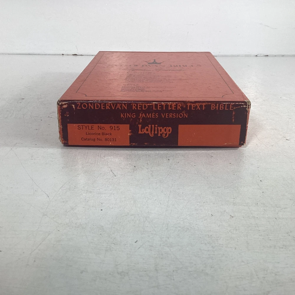 Zondervan Imperial Line King James Version Bible Red Letter Version with Concordance, Dictionary and Maps Style 915 published by Zondervan ca. 1970 in Licorice Black Skivertex binding in original box in Like New condition.