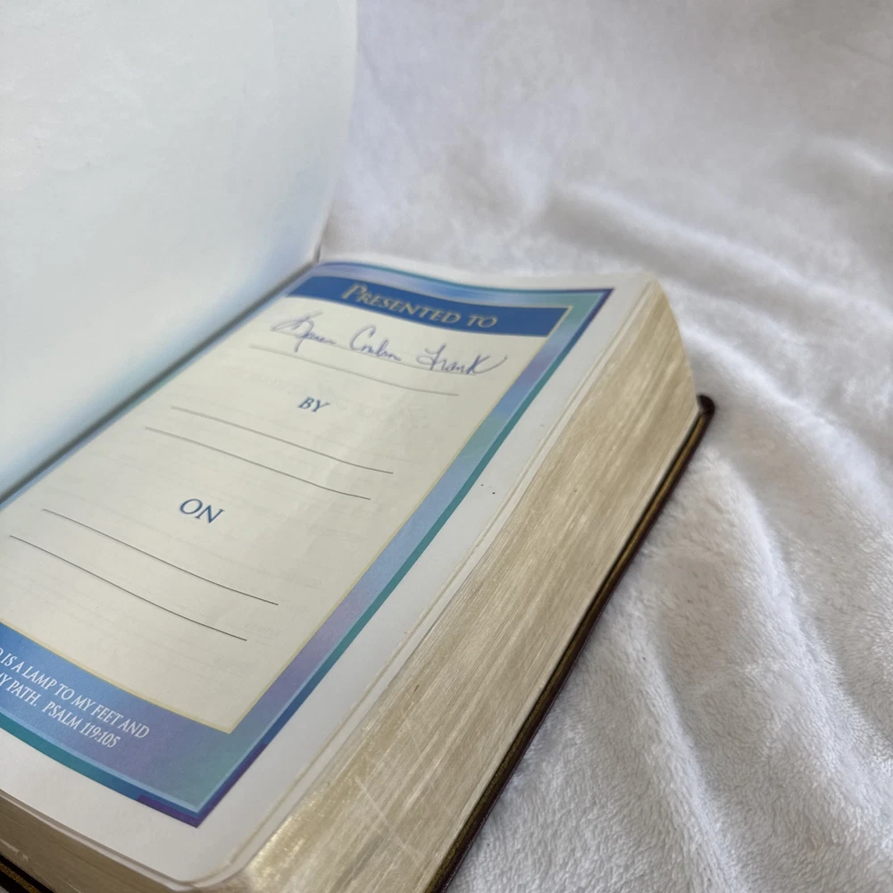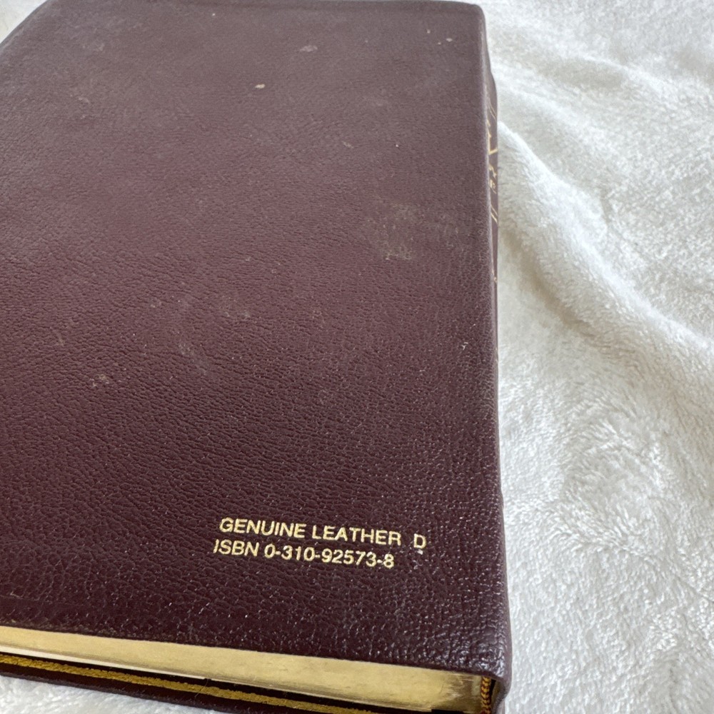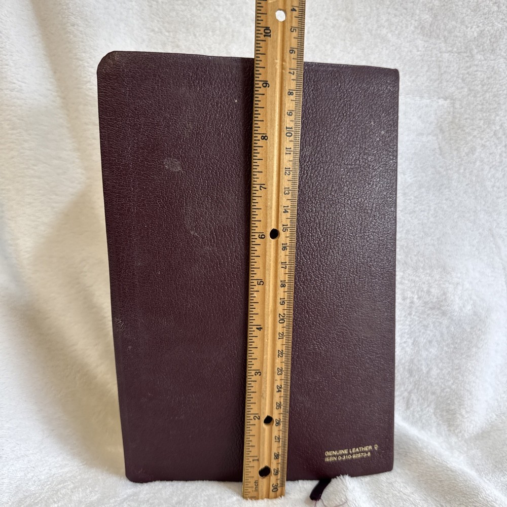Note: there is writing and marks in this Bible but lots of life left for you. Priced accordingly. The 1995 NIV Study Bible 10th Anniversary Edition in Burgundy Leather is a special edition of the Bible published by Zondervan. This Bible is intended for young adults and adults, featuring red letter text and a genuine leather format. It is personalized and inscribed, making it a unique and valuable addition to any collection. With its vintage appeal and bonded leather features, this Bible is a timeless piece for those interested in biblical studies and faith.