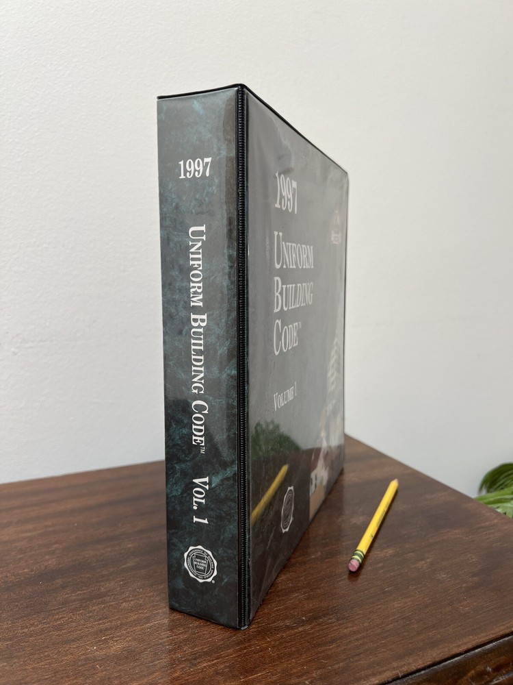 1997 Uniform Building Code Volume 1 Published by the International Conference of Building Officials (ICBO) This is Volume 1 of the 1997 Uniform Building Code (UBC) , an essential resource for professionals involved in construction, engineering, and code compliance. This comprehensive guide contains detailed provisions and standards for building safety, fire protection, and structural design, making it an invaluable reference for anyone working on projects under the 1997 UBC. Contents Include: Administrative Requirements Occupancy Classifications Egress Standards Fire-Resistive Construction Accessibility Standards General Building Design and Construction Requirements Key Features: Title: 1997 Uniform Building Code, Volume 1 Publisher: International Conference of Building Officials (ICBO) Year: 1997 Pages: Approximately 400+ pages Dimensions: 11 x 8.5 inches Binding: Binder Weight: Approximately 5 lbs Condition: Cover: In excellent condition. Like new. Spine: Strong and intact, with no loose pages. Pages: Clean and legible, with no markings or highlighting. Why Buy This Book? A critical reference for projects designed under the 1997 UBC. Provides historical insight into building code evolution. Official publication by the ICBO , ensuring accuracy and credibility. Shipping: Your book will be carefully packaged and shipped promptly to ensure safe delivery.