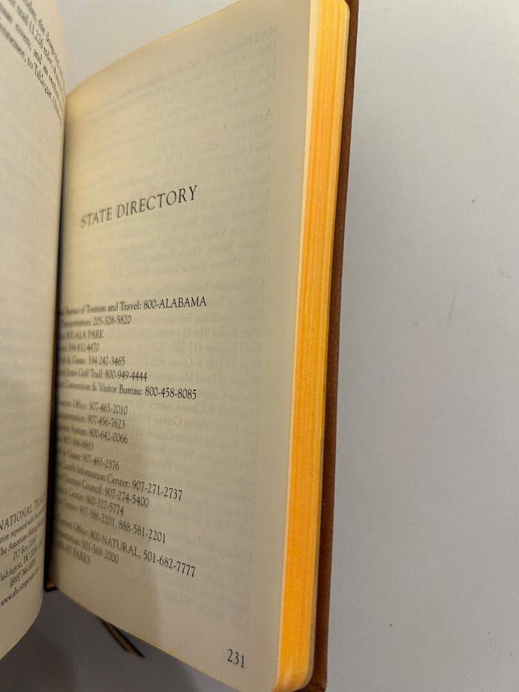 Explore the scenic landscapes and natural wonders of America's beautiful parks with the 1999 edition of "America, the Parks" by Cartography, Berkely California. This leatherbound guidebook is a comprehensive map and narrative journey through the nation's parks and recreational areas, providing insightful information and captivating visuals to enhance your travel experience. Published by Graphic Image, Inc. and crafted in Korea, this collectible book stands at 4.25 inches in height, 6 inches in length, and has a spine width of 0.75 inches, with 320 pages of detailed park information. A must-have for enthusiasts of nature and recreation, this book is a testament to the era's travel genre, unmarred by personalizations or inscriptions, keeping the focus solely on the stunning parks and their stories. Includes the Bahamas and Puerto Rico.