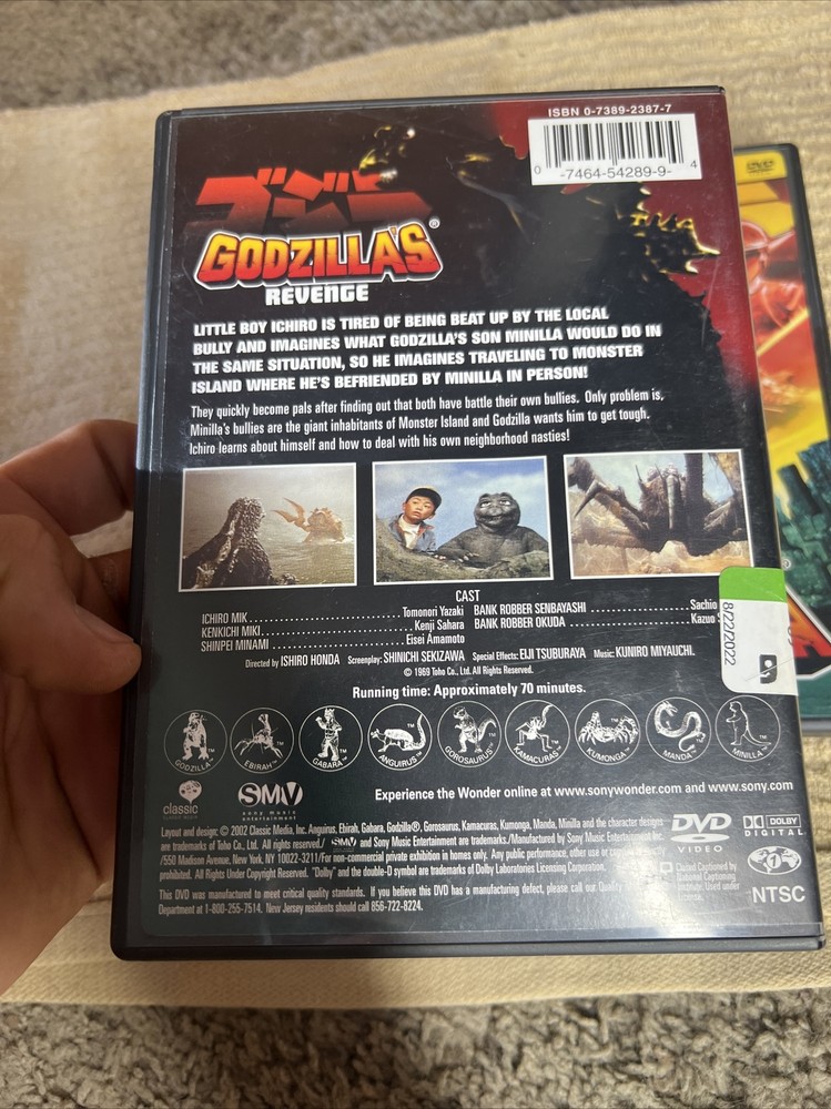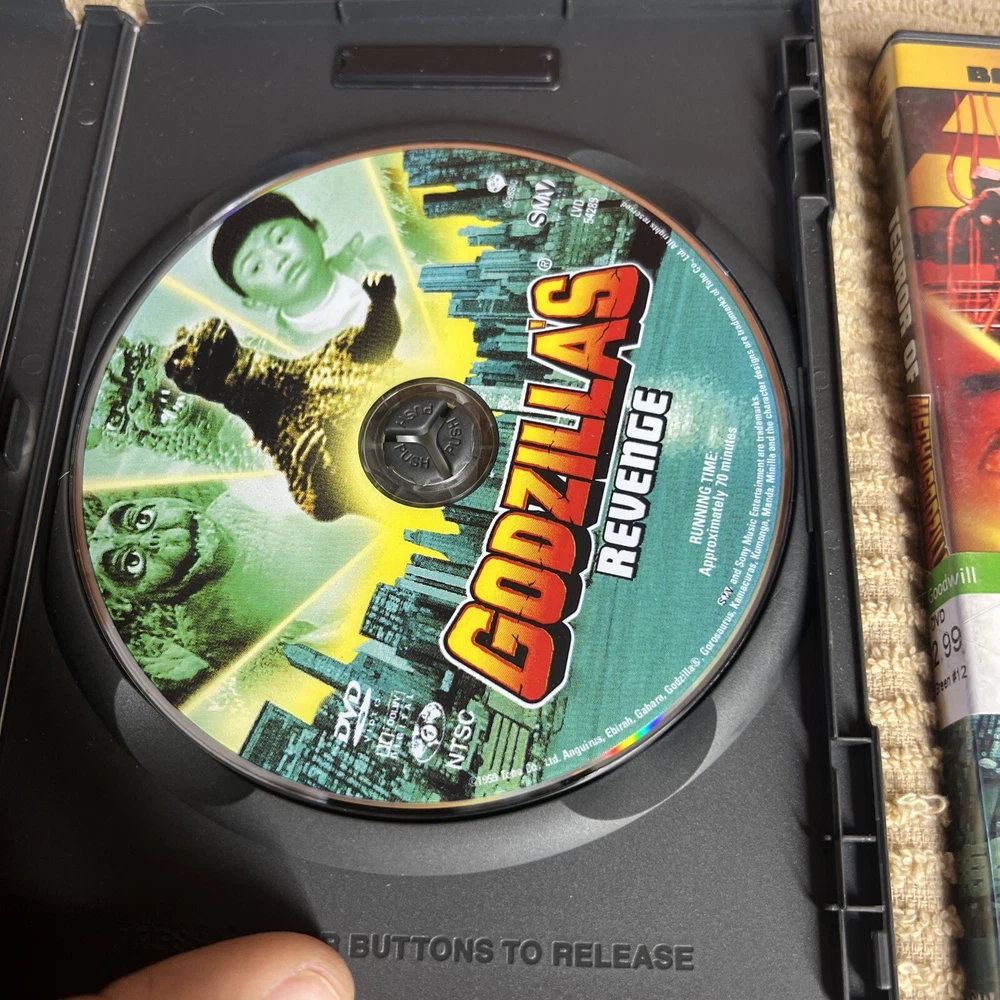 2 Godzilla DVDs Terror of Mechagodzilla & Godzillas Revenge MINT CONDITION DISCS. All monsters attack! Godzilla‘s revenge little boy Ichiro is tired of being beat up by the local bully, and imagine what Godzilla‘s son Manila would do in the same situation, so we imagine, traveling to the monsters island where he befriends Manila in person, terror of Mechagodzilla Invaders from the third planet of the black hole plan to take over the Earth with their powerful 400 Foot tall robot, MechaGodzilla Thanks so much for looking! Ships out ASAP! 🙏🔥🇺🇸