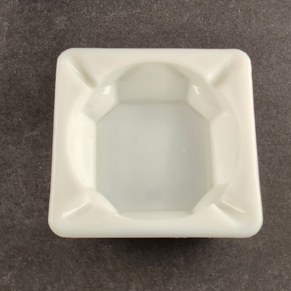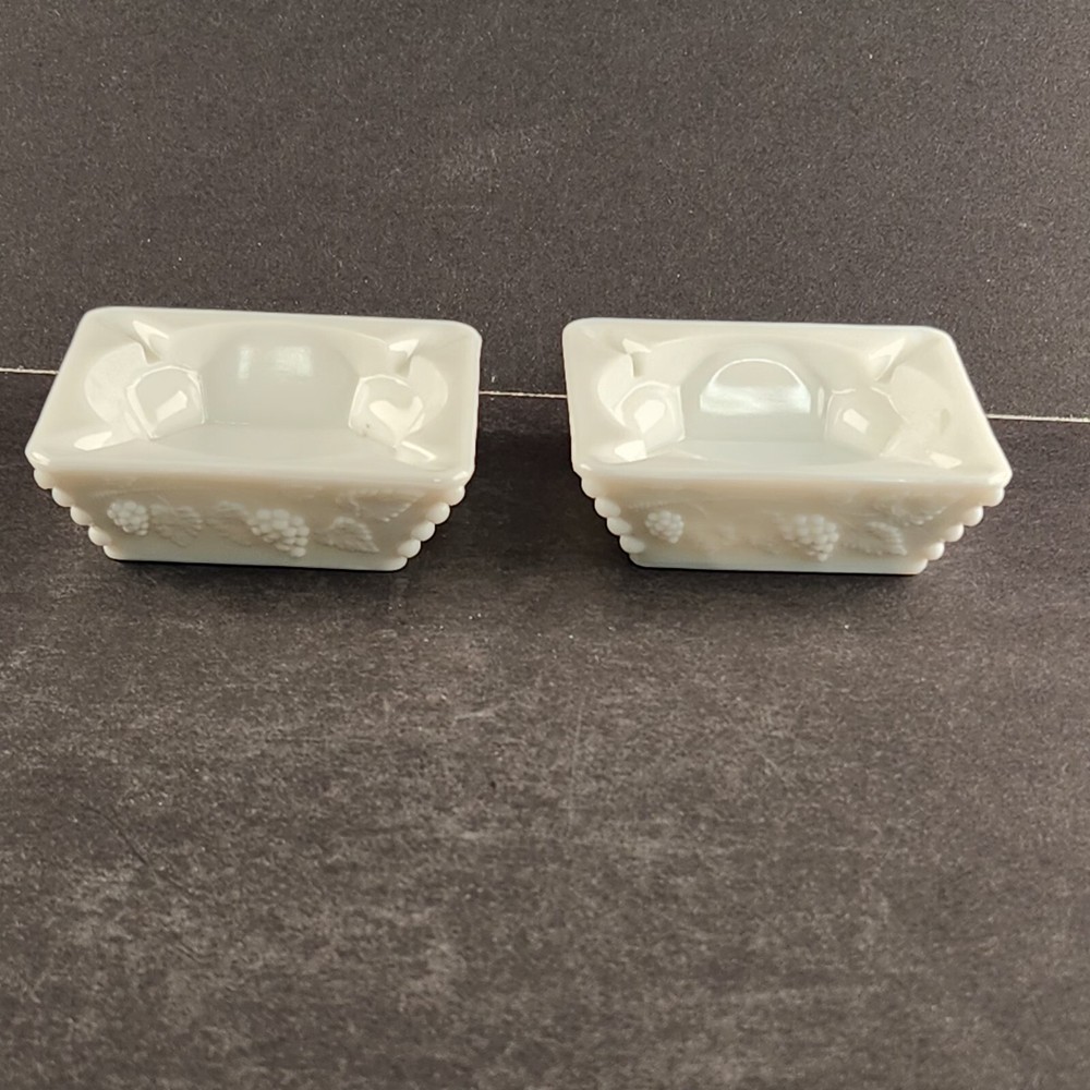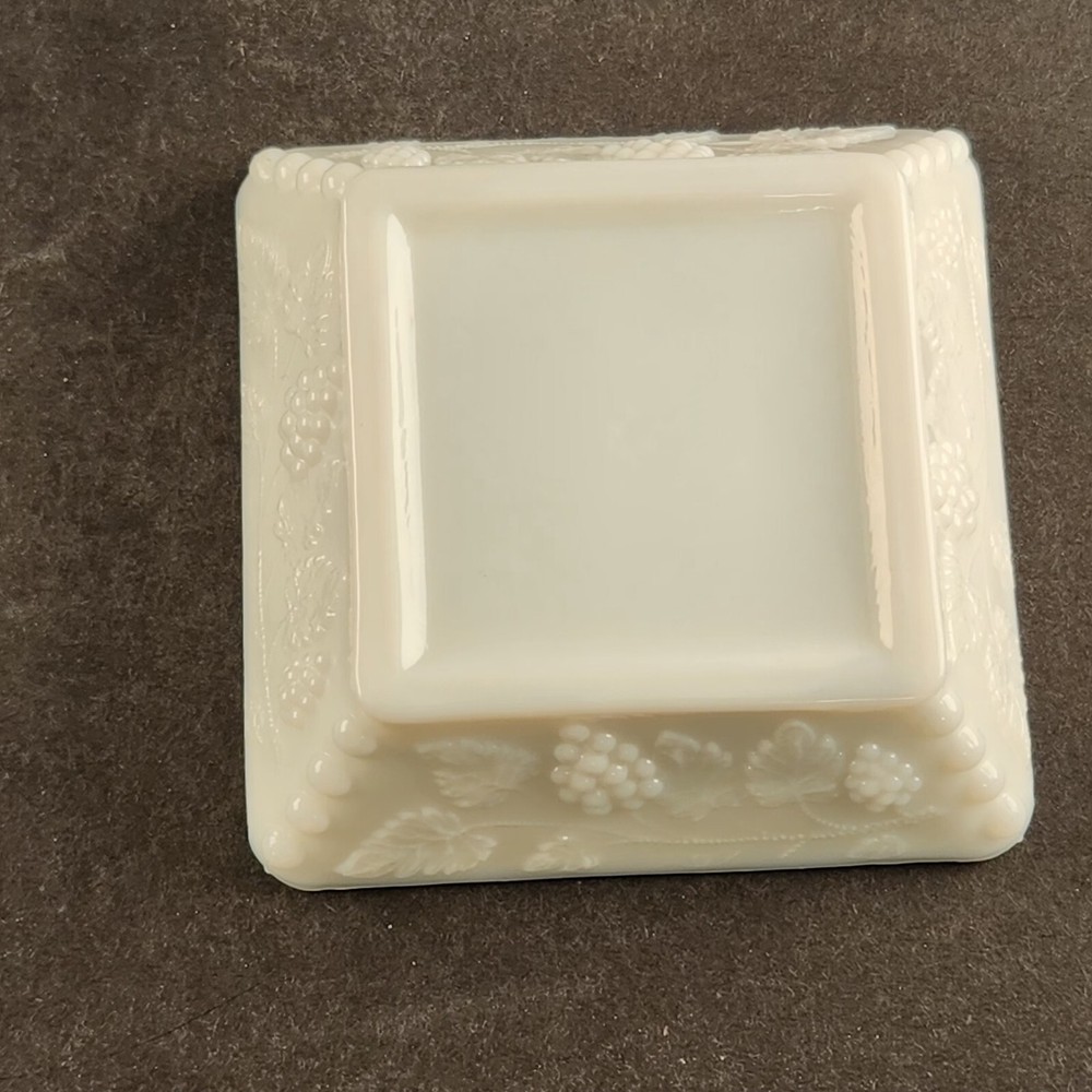 2 Westmoreland Milk Glass Square Vintage Ashtray Grapes & Vines Good Condition No chips or cracks Measures about 4" Square x 1.3" tall (10.2 x 3.3 cm) Shipping weight is 2 pounds