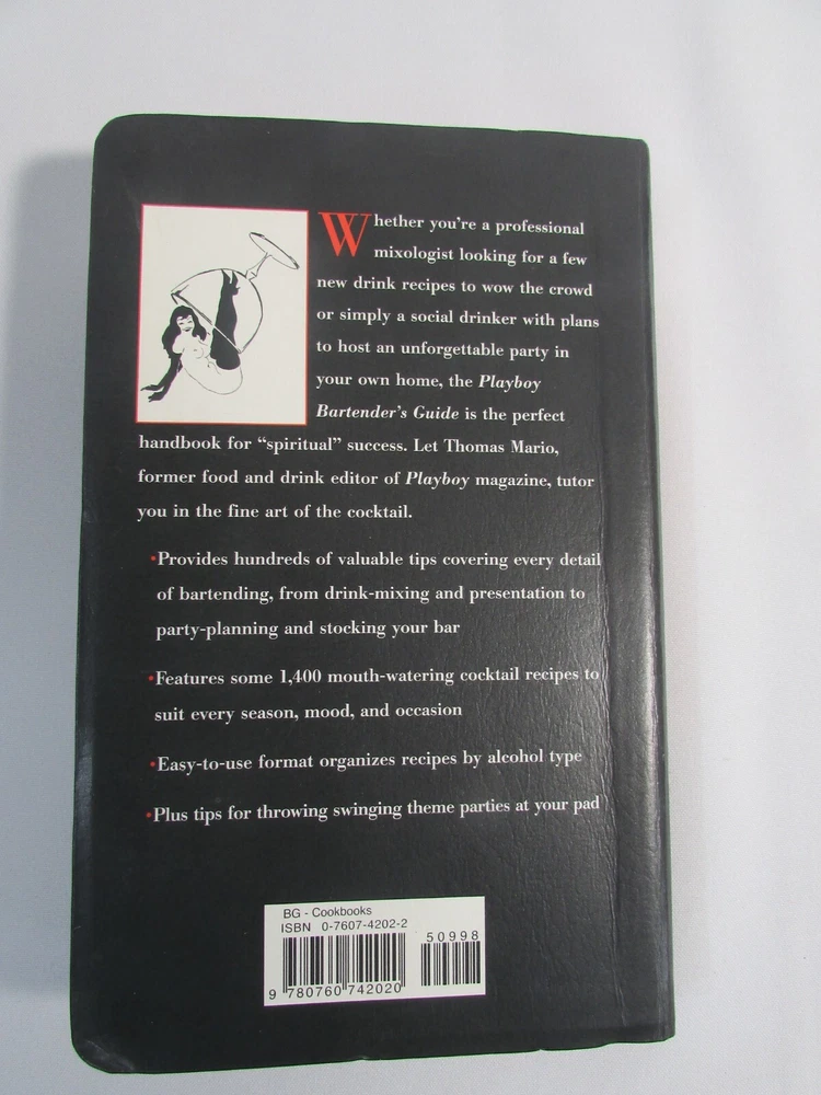 The 2003 Playboy Bartenders Guide by Thomas Mario is a paperback book in English focusing on mixology and cocktails. It includes a set of shot glasses and coasters, making it a comprehensive guide for adults interested in creating their own signature drinks. With the author's expertise and engaging writing, this book is perfect for those looking to expand their knowledge and skillset in the world of mixology. Perfect for that Bartender in your life...