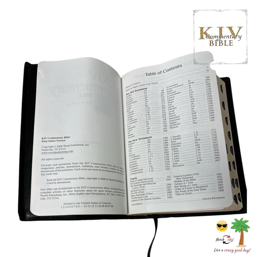 2006 KJV Commentary Leather Bound Bible Large Print Text Red Letter Edition NICE fletchflips quality! All photos are of the actual Bible you will receive. No stock photos. "very lightly used but not abused" Very nice clean Bible in excellent condition from a smoke free home. This Bible has minimal normal wear and I leafed through it and saw no writing or highlights but there may be some, not sure. Please take the time to look at all pictures for a full detailed description of what you'll receive. Thanks for looking and shopping at fletchflips. We here at fletchflips take our eBay business very seriously and go above and beyond to provide an excellent buying experience for all our buyers. Look at our feedback from over 4,000 thousand buyers who left us such crazy awesome comments and compliments. Unfortunately, we cannot please everyone as a very small few buyers chose to leave negative feedback even after we made every attempt to please them. M ake certain at checkout that you have the correct address on the order that you want the item shipped. eBay requires sellers to ship to the address on order at time of purchase. I cannot ship to "other" addresses received via messages after purchase. If I receive a message requesting to ship to a different address the order will be automatically cancelled, and you can repurchase when you get your address updated. Thanks Live a crazy good day! fletch